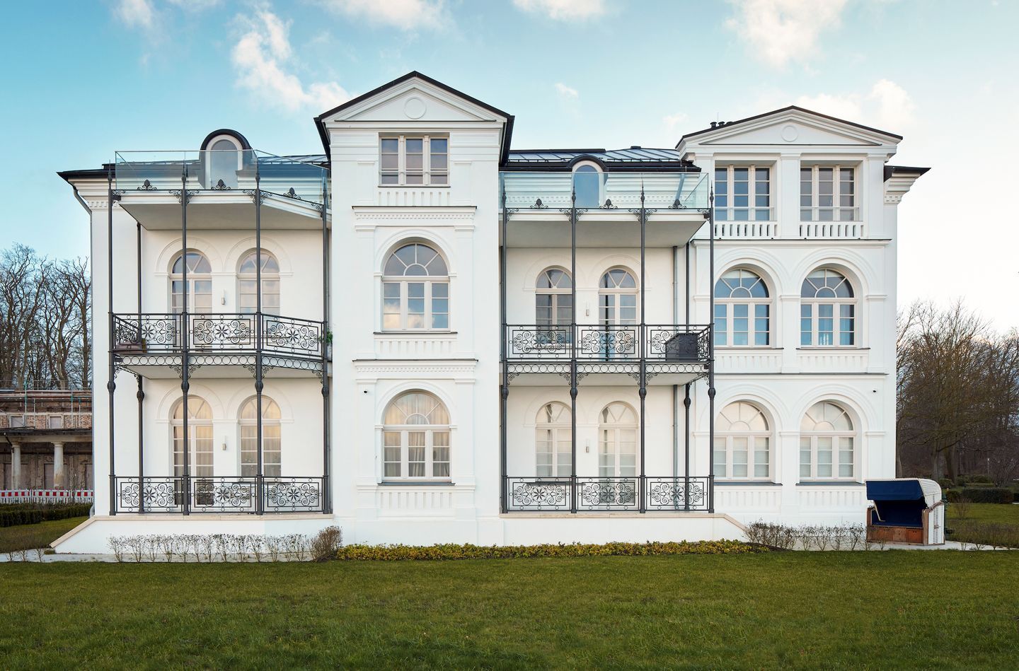 Jede Villa ist ein Kleinod und wird detailgetreu nach Originalplänen, aber mit allem Komfort des 21. Jahrhunderts restauriert. Aufzüge, Fußbodenheizung, WLAN, fernbedienbare Gaskamine, hochwertige Hölzer und Naturstein schaffen den Rahmen für ein modernes und elegantes Ambiente. Alle Wohnungen der Privaten Residenzen haben einen direkten Blick auf die Ostsee und sind mit Balkonen und/oder Terrassen ausgestattet.