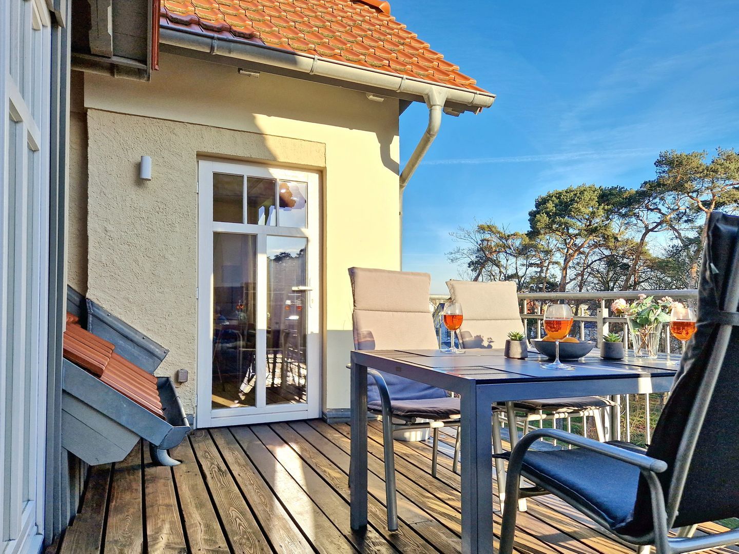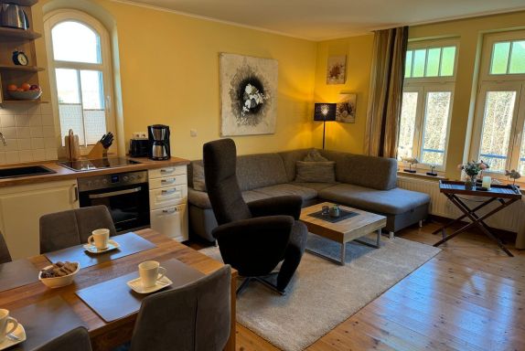 In gemütlicher Atmosphäre können Sie hier im 2. Obergeschoss auf etwa 40 Quadratmetern entspannen. Es erwarten Sie ein einladender Wohnbereich mit Küchenzeile und Essecke sowie ein separates Schlafzimmer und ein Badezimmer. Auf dem großzügigen Balkon in Richtung Norden können Sie den Blick zum Stadtwald genießen. Zum feinen Ostseestrand sind es ca. 800 Meter.