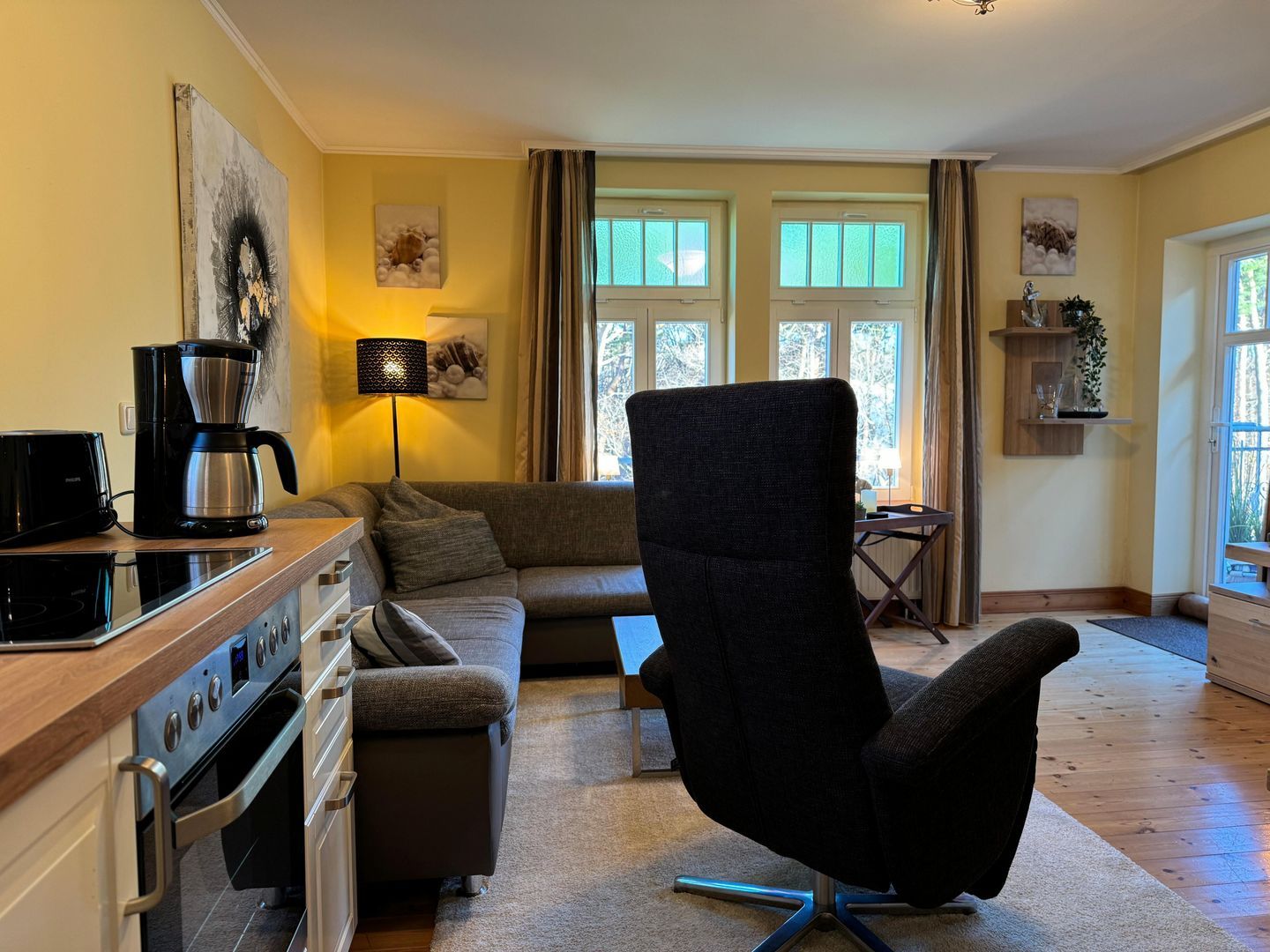 Für Abwechslung während Ihres Urlaubs sorgen im Wohnbereich eine Auswahl an Büchern, ein Flachbild-TV, ein Blu-Ray-Player und eine Stereoanlage. Lassen Sie den Tag auf dem Schlafsofa (120 x 190 cm) oder dem Schwing-Sessel mit Hocker ausklingen.