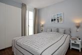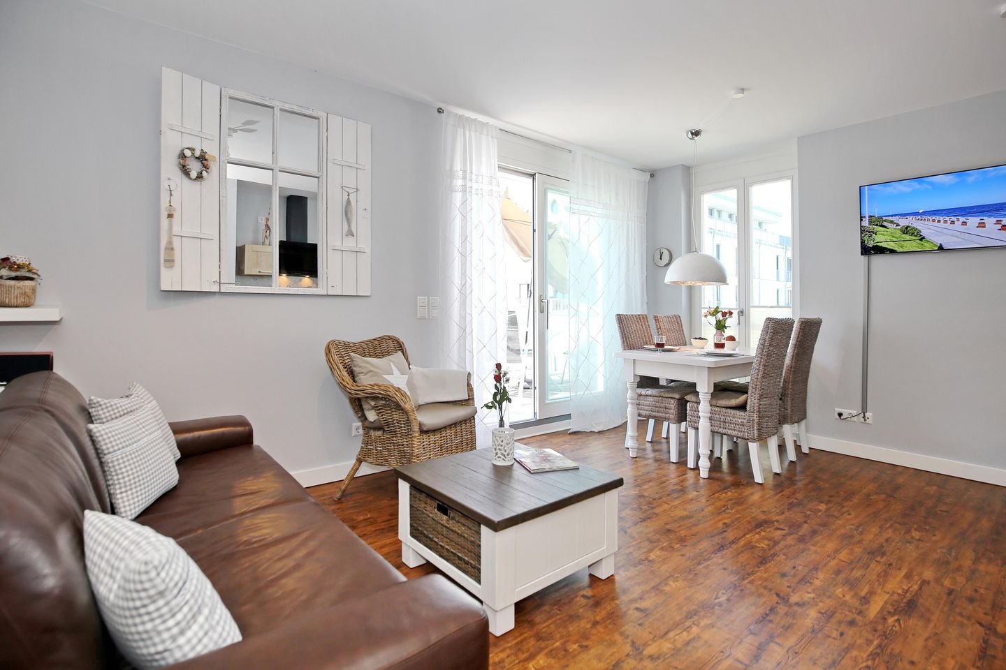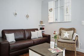 Die 56 m² große Ferienwohnung bietet Ihnen ausreichend Platz für schöne Urlaubstage mit bis zu 4 Personen. Sie erwartet ein großzügiger Wohn- und Essbereich, eine moderne und geräumige Küche, ein maritim eingerichtetes Schlafzimmer, eine Sauna sowie ein Duschbad. Genießen Sie die sonnigen Stunden auf dem nach Westen ausgerichteten Balkon mit Meerblick. Die gemütliche Wohnung liegt nur 50 Meter vom Strand entfernt und befindet sich im 1. Obergeschoss der ruhig gelegenen Villa. Für die Nutzung der Sauna wird ein Aufpreis von 5,00 € berechnet.