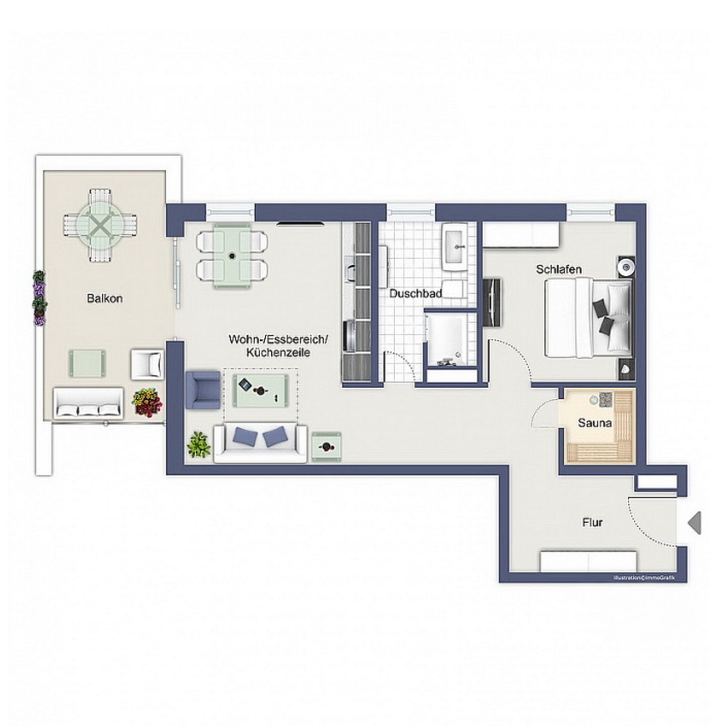 Das modern gestaltete Duschbad ist mit einem großzügigen Waschtisch ausgestattet, der Ihnen viel Platz für Ihre Waschutensilien bietet. Ein Haartrockner rundet die Ausstattung ab. Der Nassbereich ist gefliest, Wohn- und Schlafzimmer verfügen über Design-Belag. In der gesamten Wohnung sorgt eine Fußbodenheizung für wohlige Wärme. Es handelt sich um eine Nichtraucherwohnung, Haustiere sind nicht gestattet.