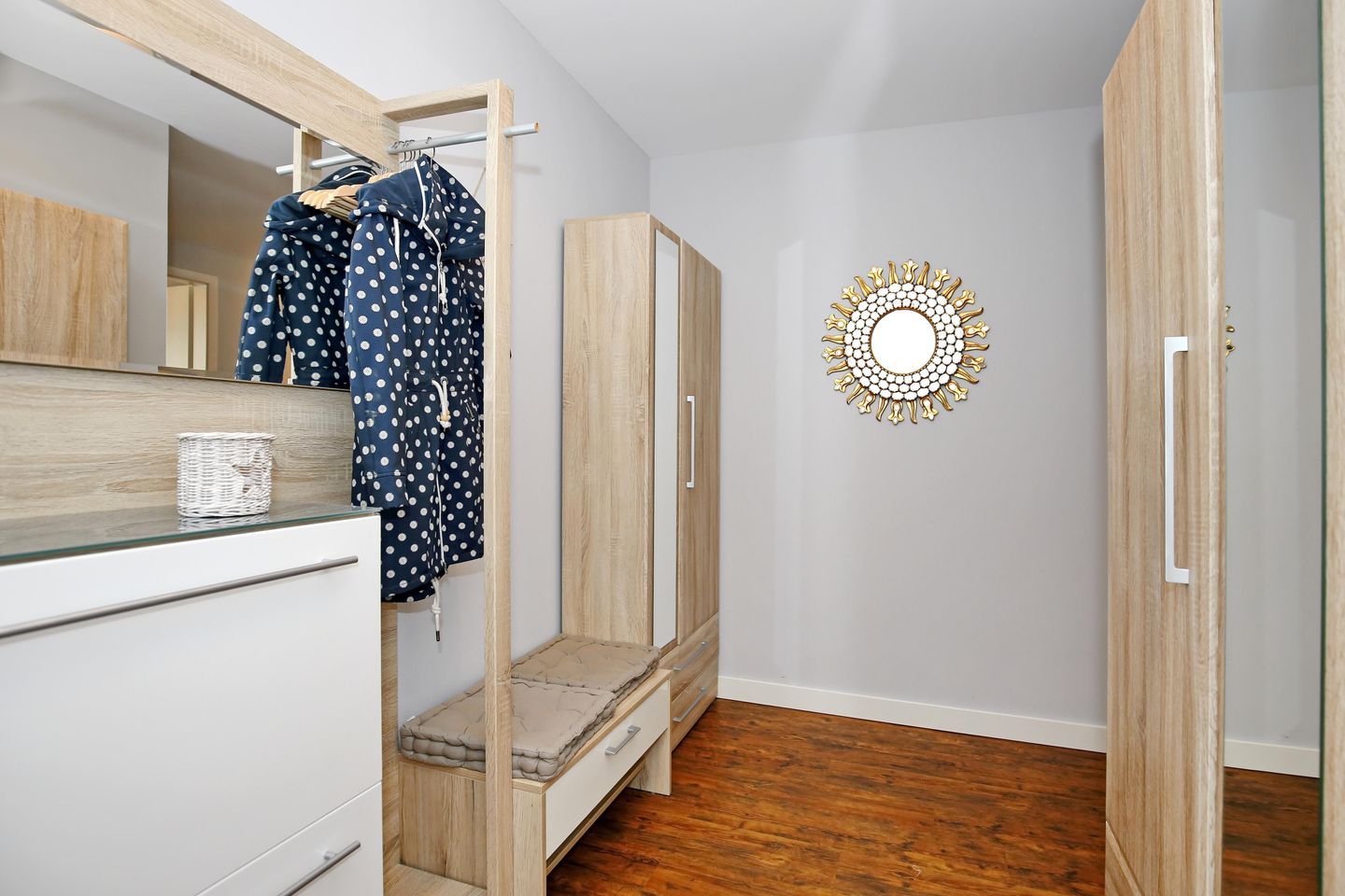 Ein Fahrradabstellplatz befindet sich direkt im Haus in den Kellerräumen. Ihrer Ferienwohnung ist ein Tiefgaragenstellplatz (max. Höhe 1,95 m) zugeordnet, von dem Sie bequem mit dem Aufzug in Ihre Wohnung gelangen. Eine münzbetriebene Waschmaschine und ein Trockner stehen Ihnen im Erdgeschoss des Hauses zur Verfügung.