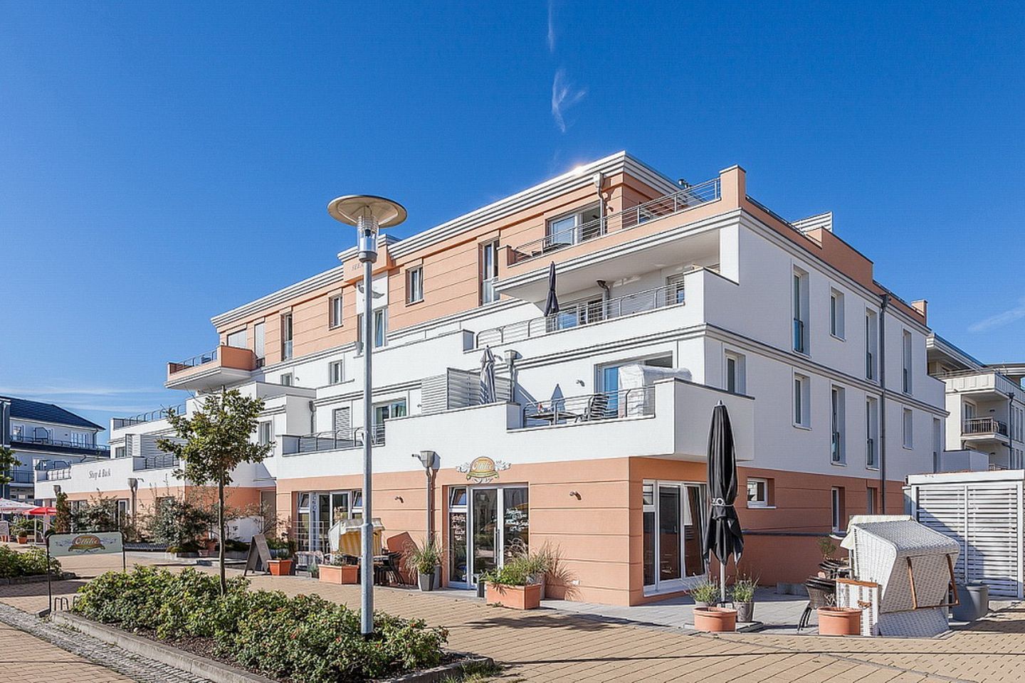 In der Ferienanlage Villa Seeadler befinden sich 23 exklusive eingerichtete Ferienwohnungen mit Terrasse, Balkon oder Dachterrasse. Viele Wohnungen haben Meerblick. PKW-Stellplätze befinden sich in der hauseigenen Tiefgarage oder vor dem Haus.