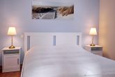 Im Erdgeschoss befindet sich ein Schlafzimmer mit einem komfortablen Doppelbett (2 x 80 x 200 cm) und einem Kleiderschrank für Ihre Kleidung. Das zweite Schlafzimmer erreichen Sie über eine Treppe im Obergeschoss. Hier erwarten Sie ein Doppelbett (2 x 80 x 200 cm) und ein Einzelbett (90 x 180 cm). Ein TV, eine Kommode sowie Rollos als Sichtschutz gehören ebenfalls zur Ausstattung. Für kleine Gäste stehen ein Kinderhochstuhl und ein Kinderbettchen bereit. Zusätzlich befinden sich im Obergeschoss ein Gäste-WC mit Waschbecken und Spiegel sowie ein Bereich mit einer Kommode und einem Schlafsofa (120 x 190 cm).