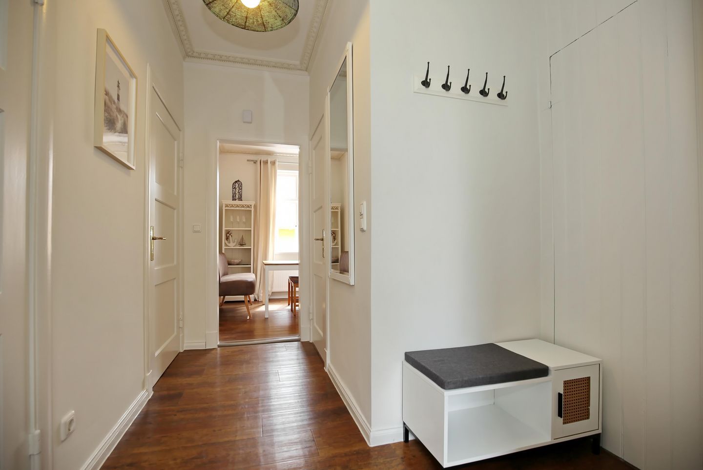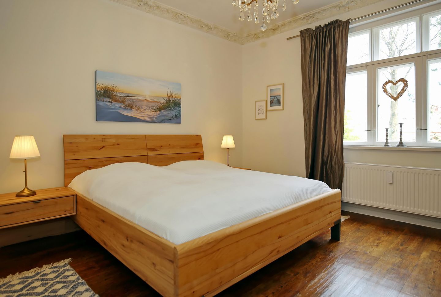 Die Ferienwohnung wurde Anfang 2023 mit viel Liebe zum Detail renoviert und neu möbliert. Dank der großen Fenster besticht sie durch besonderen Charme. Über wenige Stufen gelangen Sie in die im Hochparterre gelegene, 50 m² große Wohnung. Sie erwartet ein separates Schlafzimmer, ein Duschbad, ein heller Wohnbereich und eine separate Küche mit gemütlicher Essecke. Zum feinen Sandstrand von Kühlungsborn sind es nur ca. 300 Meter.
