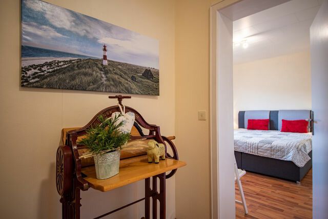 Der Garten ist ein wahres Paradies für Naturliebhaber und ist komplett umzäunt.Genießen Sie den herrlichen Blick über das Noor bis zur malerischen Außenförde. Lassen Sie die Seele baumeln und finden Sie Ihre innere Ruhe in diesem idyllischen Umfeld. Auf einer großzügigen Wohnfläche von 100 m² verteilt, bietet die Ferienwohnung zwei sich voneinander abhebende Schlafzimmer. Das eine Schlafzimmer ist mit einem komfortablen Doppelbett (180 x 200cm) ausgestattet, während das andere Zimmer über zwei gemütliche Einzelbetten (90x200cm) verfügt. Der moderne Wohlfühlbereich wird durch ein Tageslicht-Bad mit Badewanne und Dusche sowie ein Gäste-WC komplettiert.