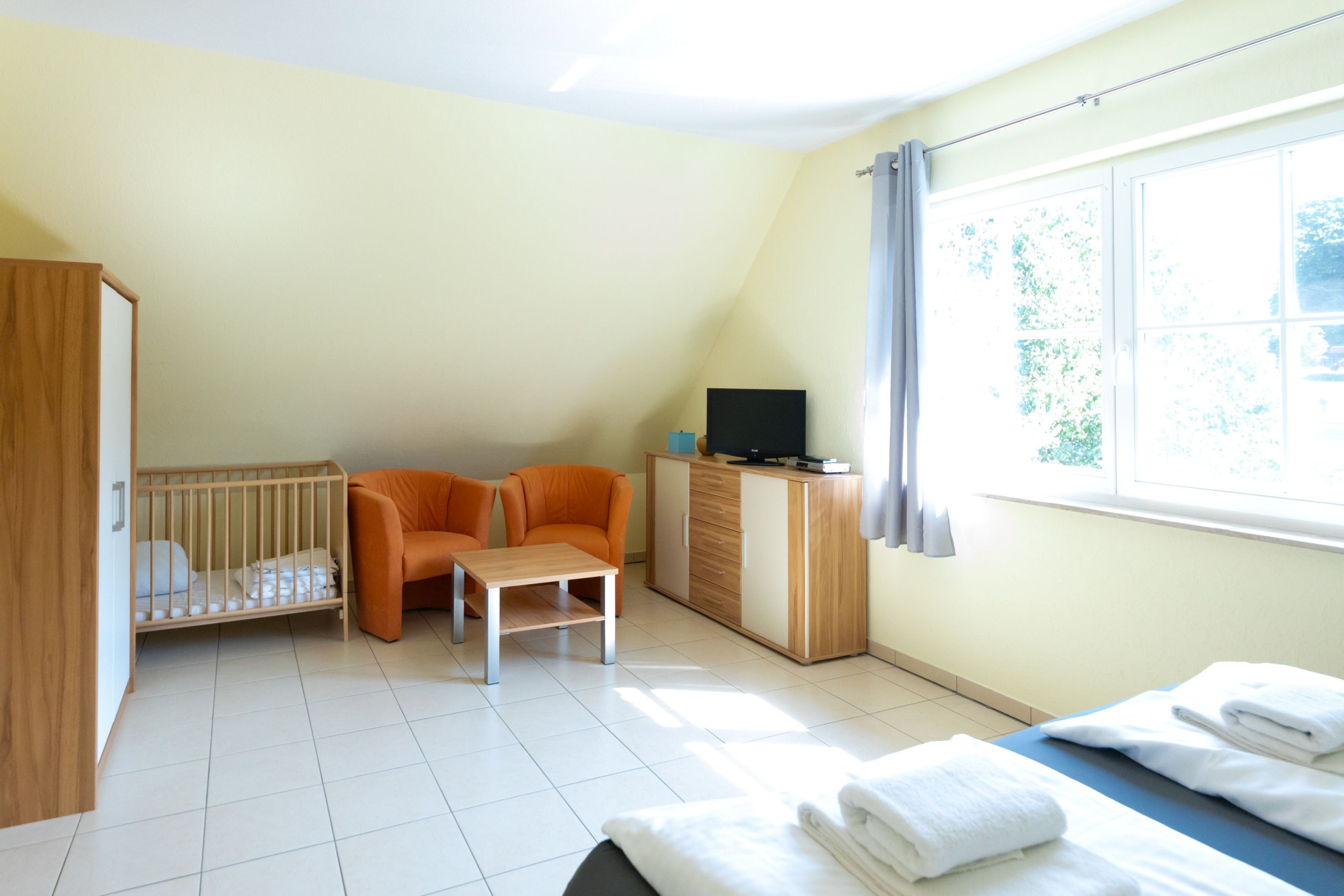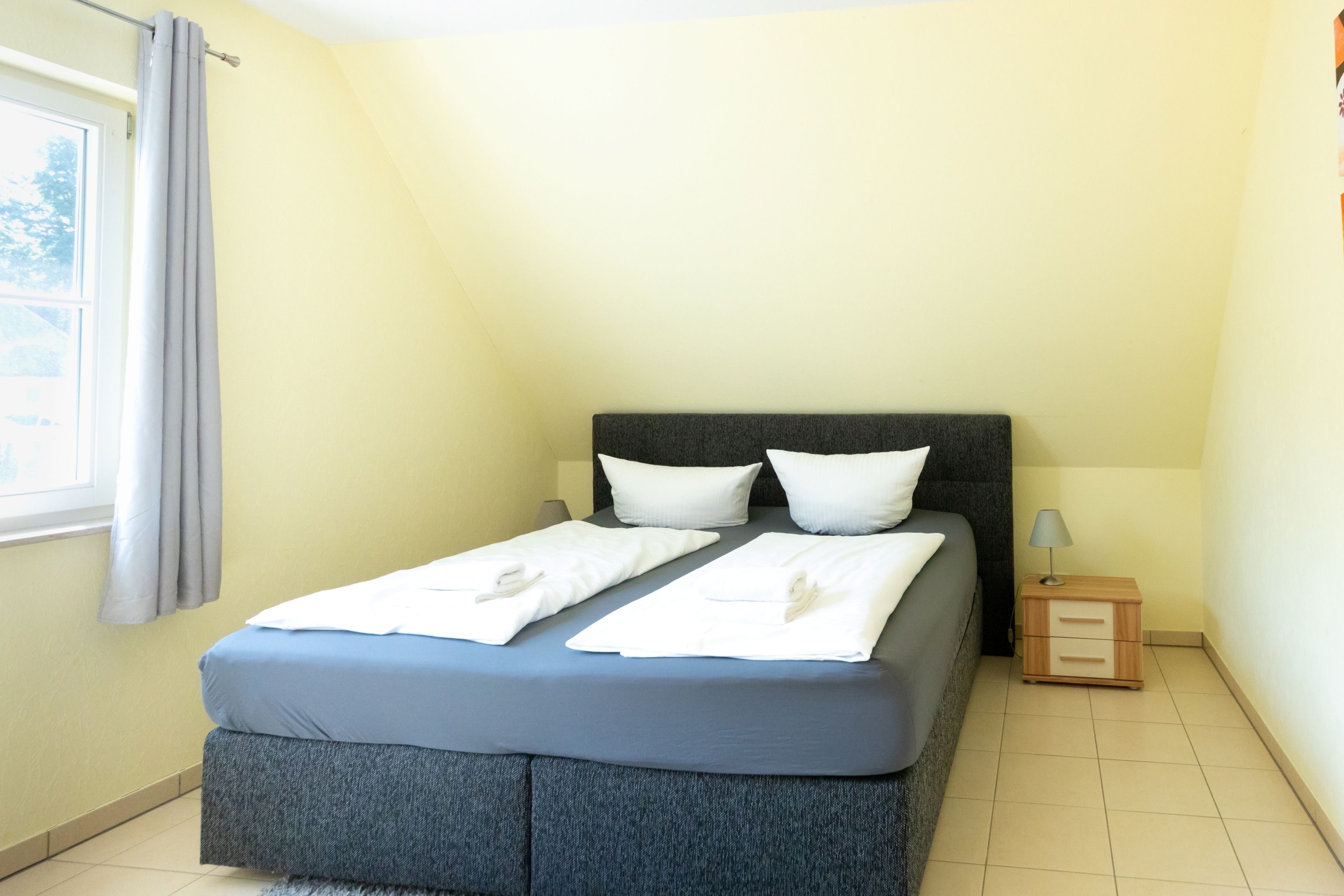 Im Schlafzimmer erwartet Sie ein komfortables Boxspringbett zum erholen und im zweiten Schlafzimmer zwei Einzelbetten für die Familie.