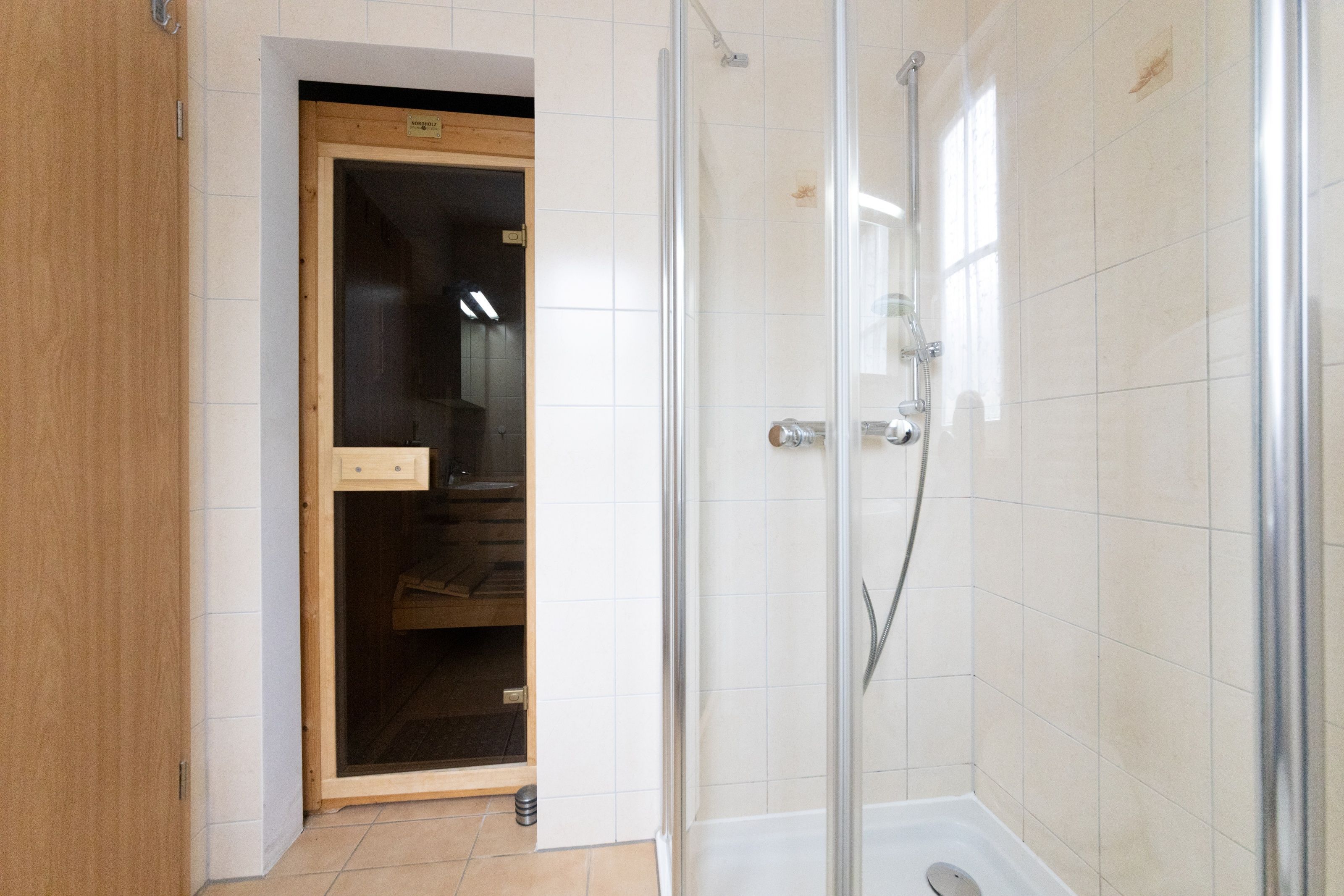 Des Weiteren zwei Bäder, einmal mit Badewanne und einmal mit Dusche und Sauna.