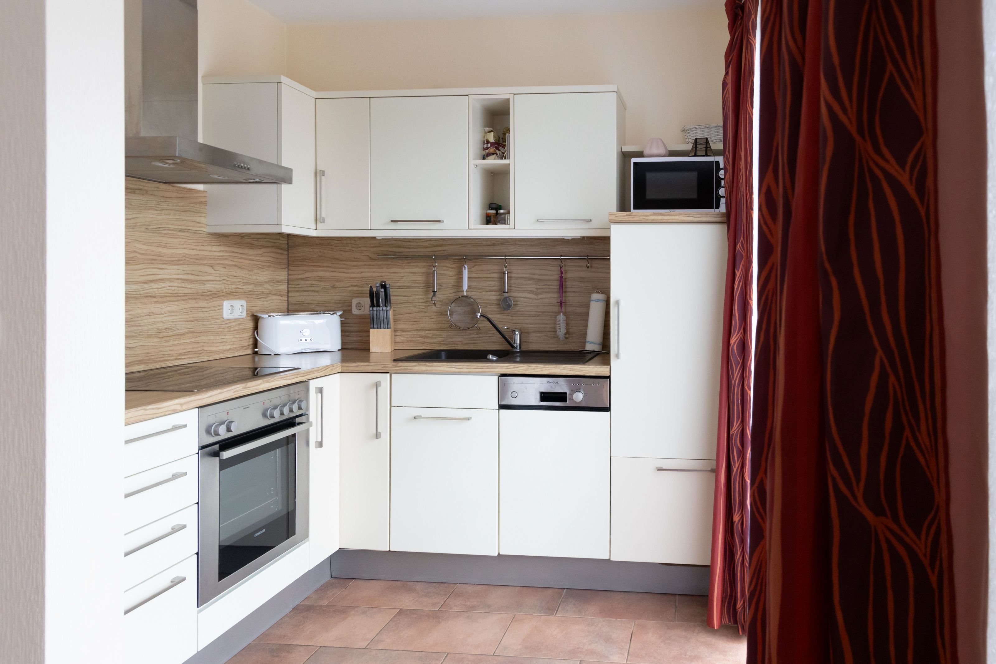 Die moderne, voll ausgestattete Küche lässt keine Wünsche offen und macht gemeinsames Kochen zu einem Erlebnis.