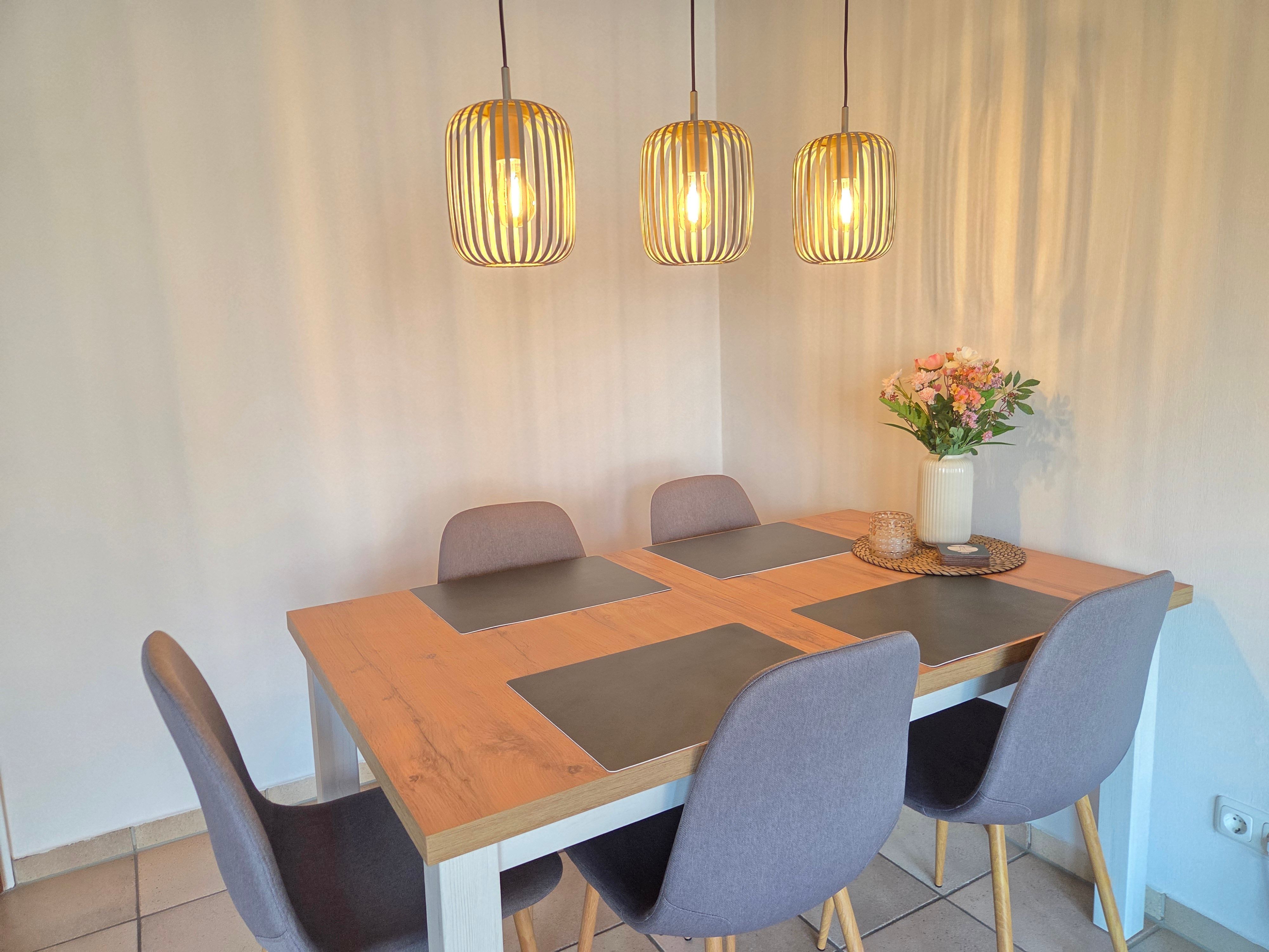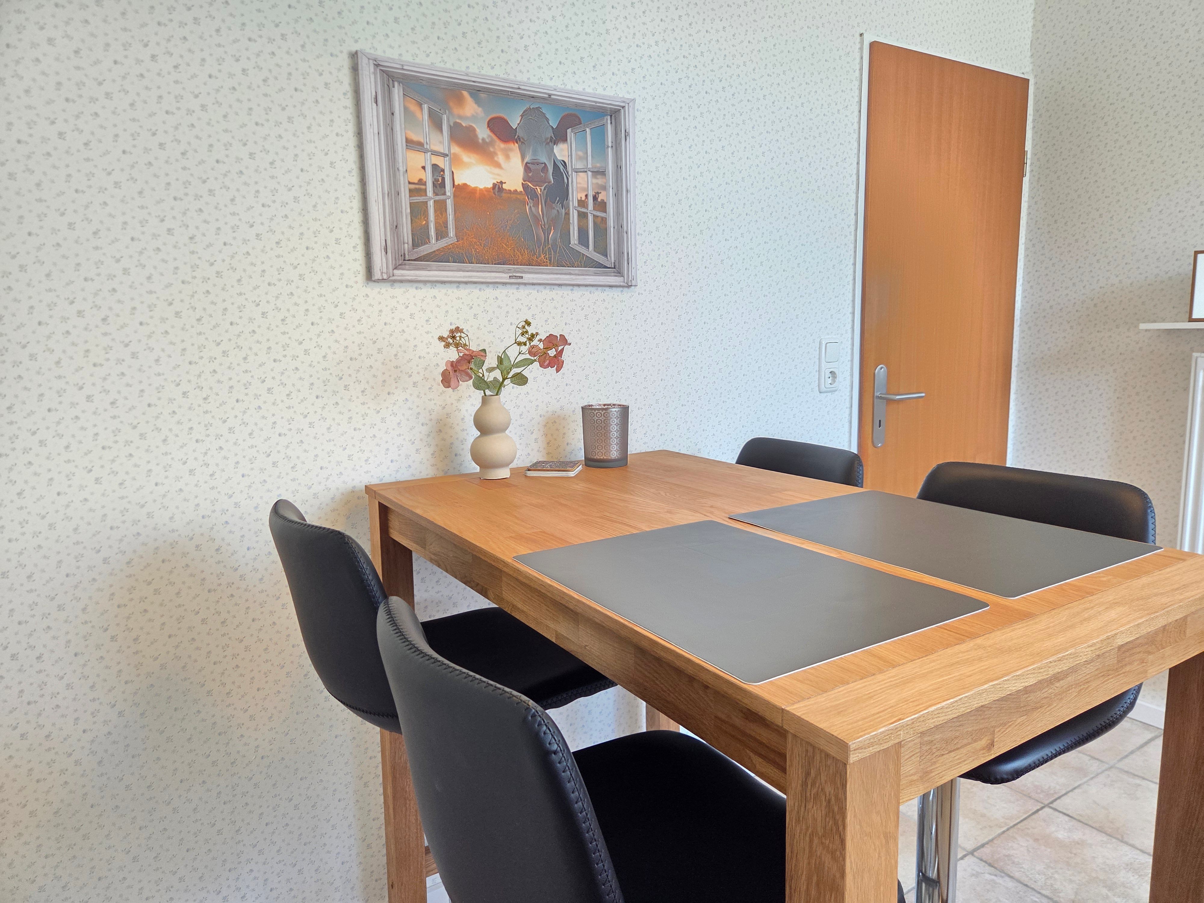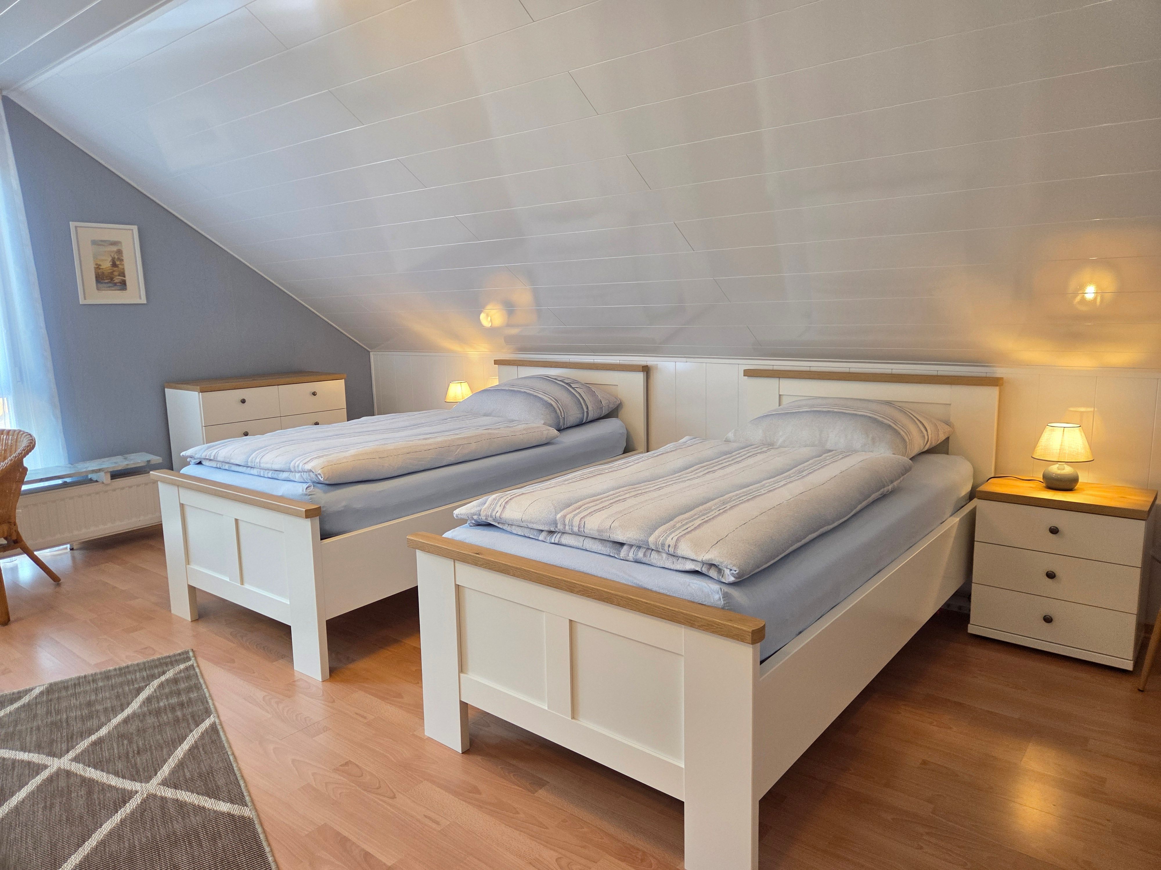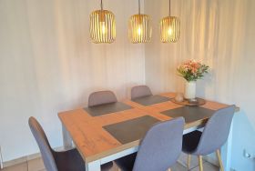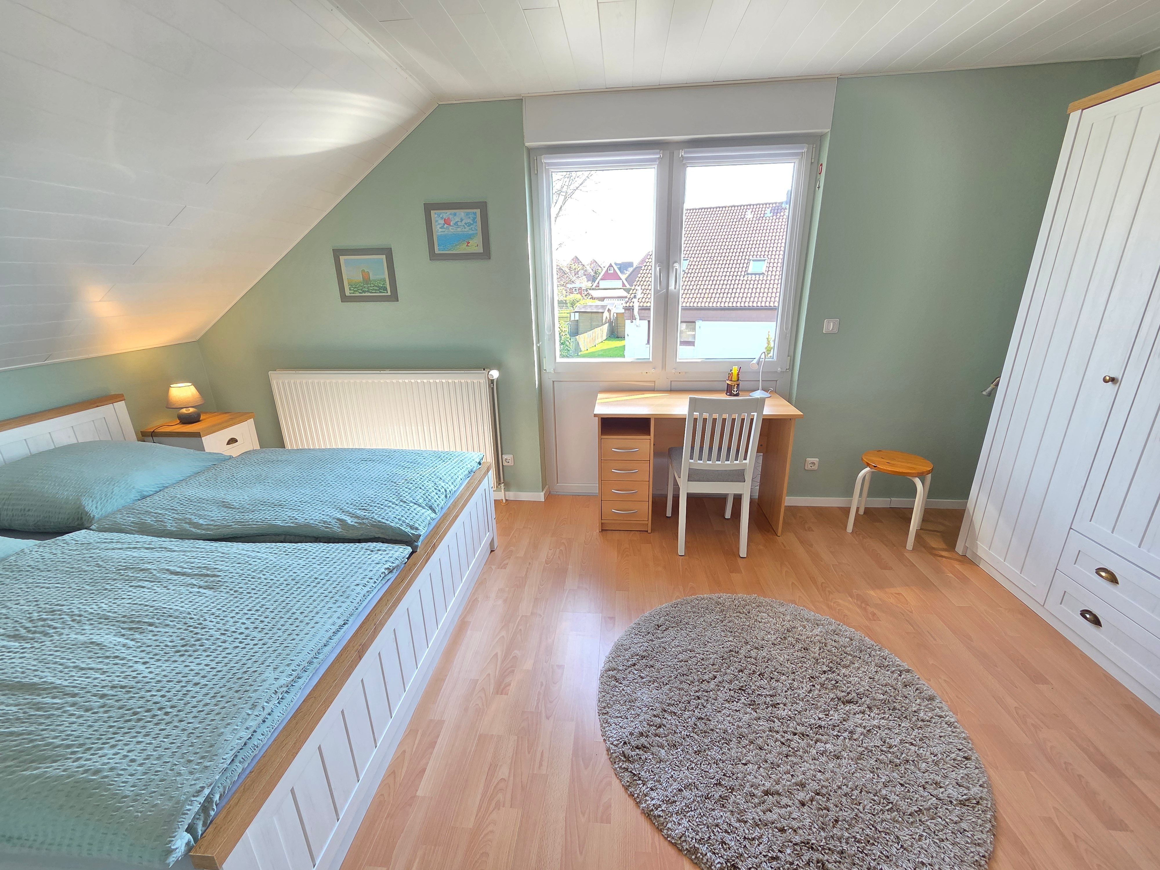 Neben einem geräumigen Wohn- und Essbereich, sowie einer vollausgestattenen Küche stehen Ihnen zwei Schlafzimmer (1 Schlafzimmer mit Doppelbett, 1 Schlafzimmer mit 2 Einzelbetten, einem Etagenbett und TV) zur Verfügung. Zudem ist ein Duschbad sowie ein Gäste-WC vorhanden.