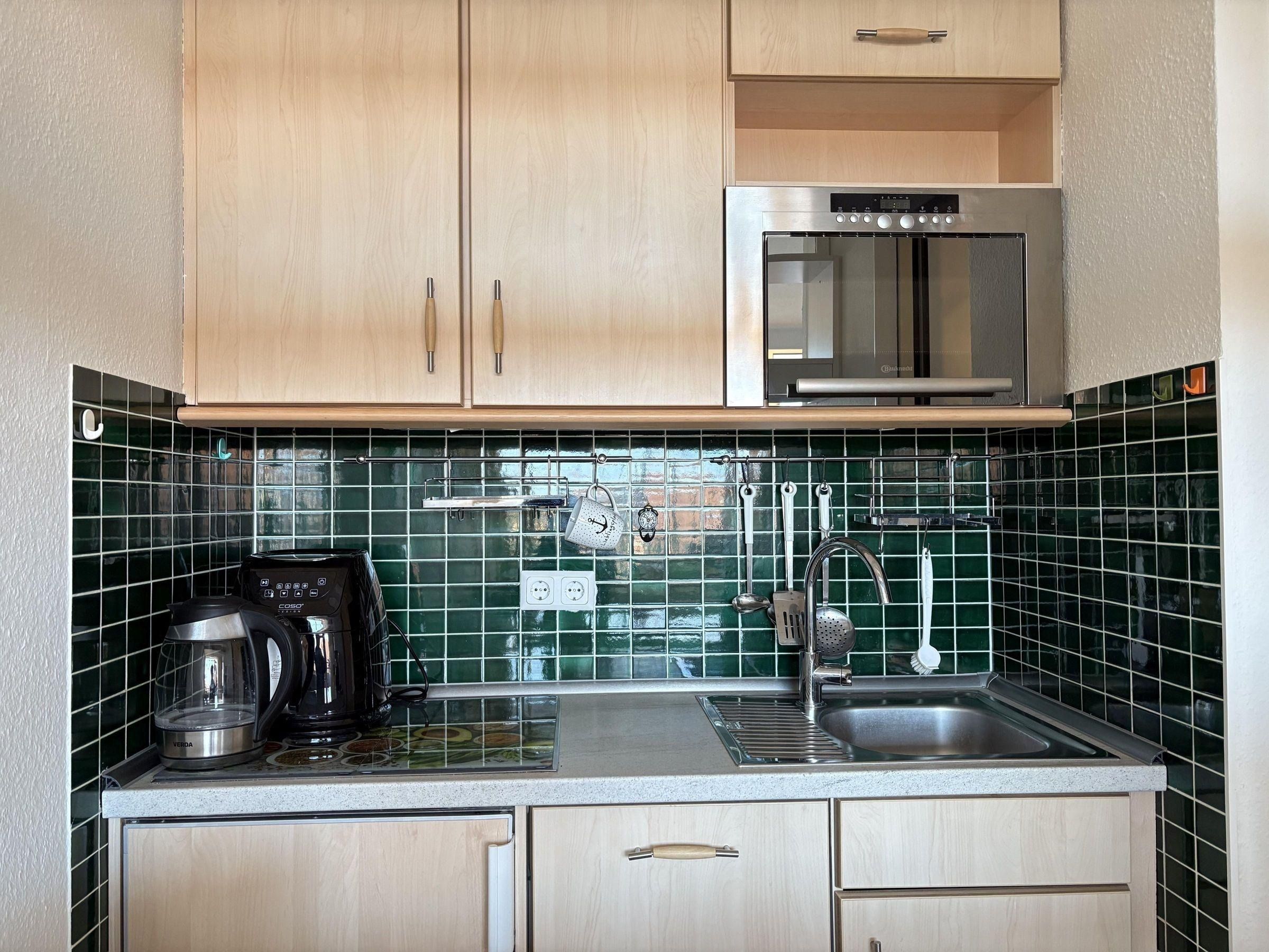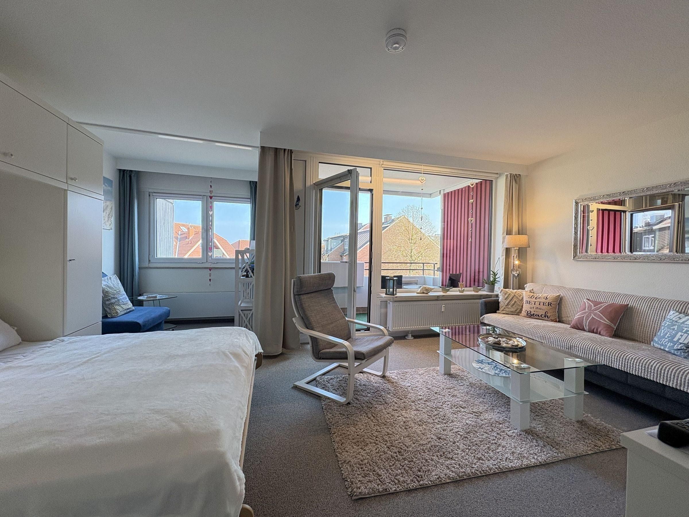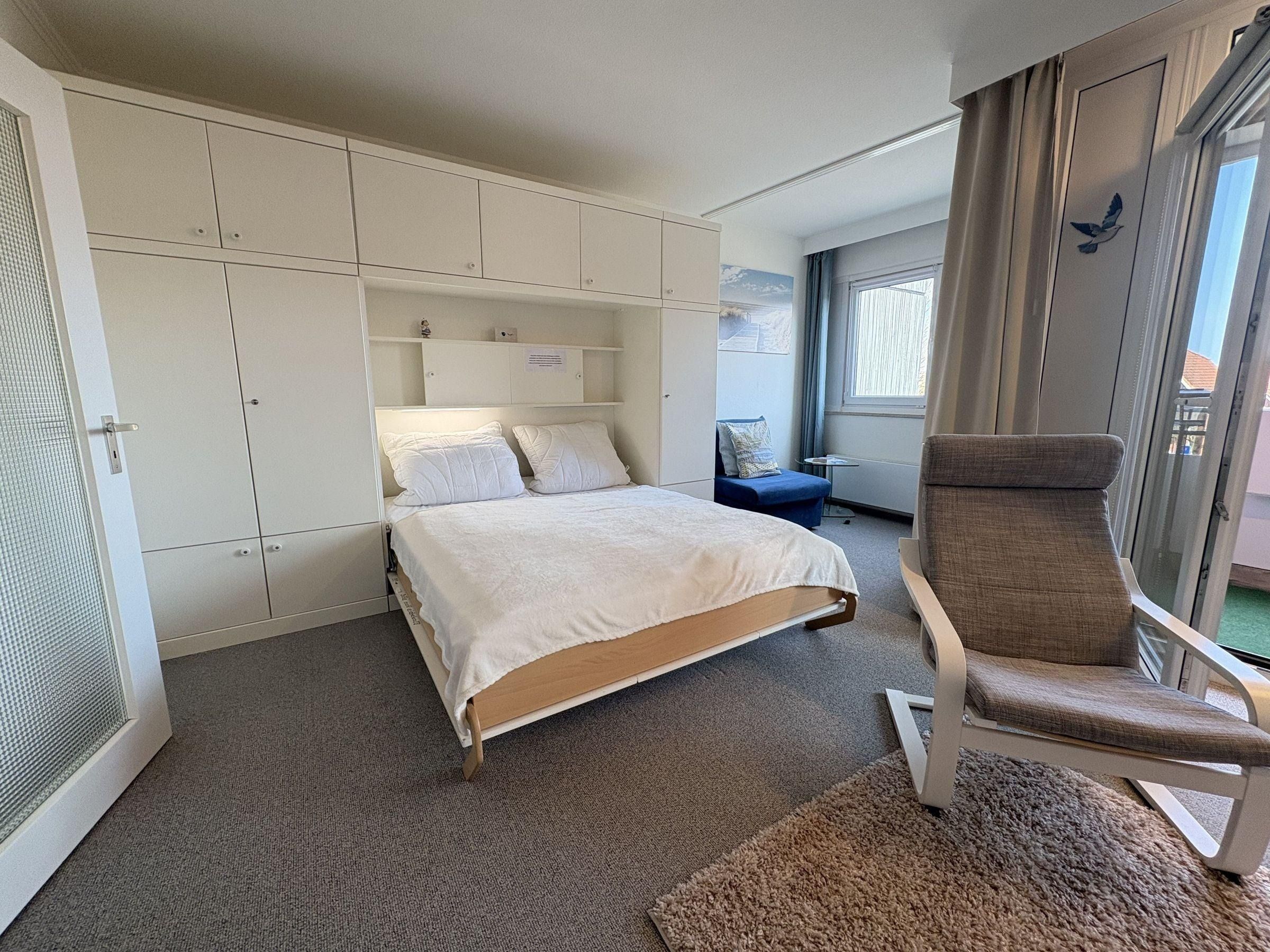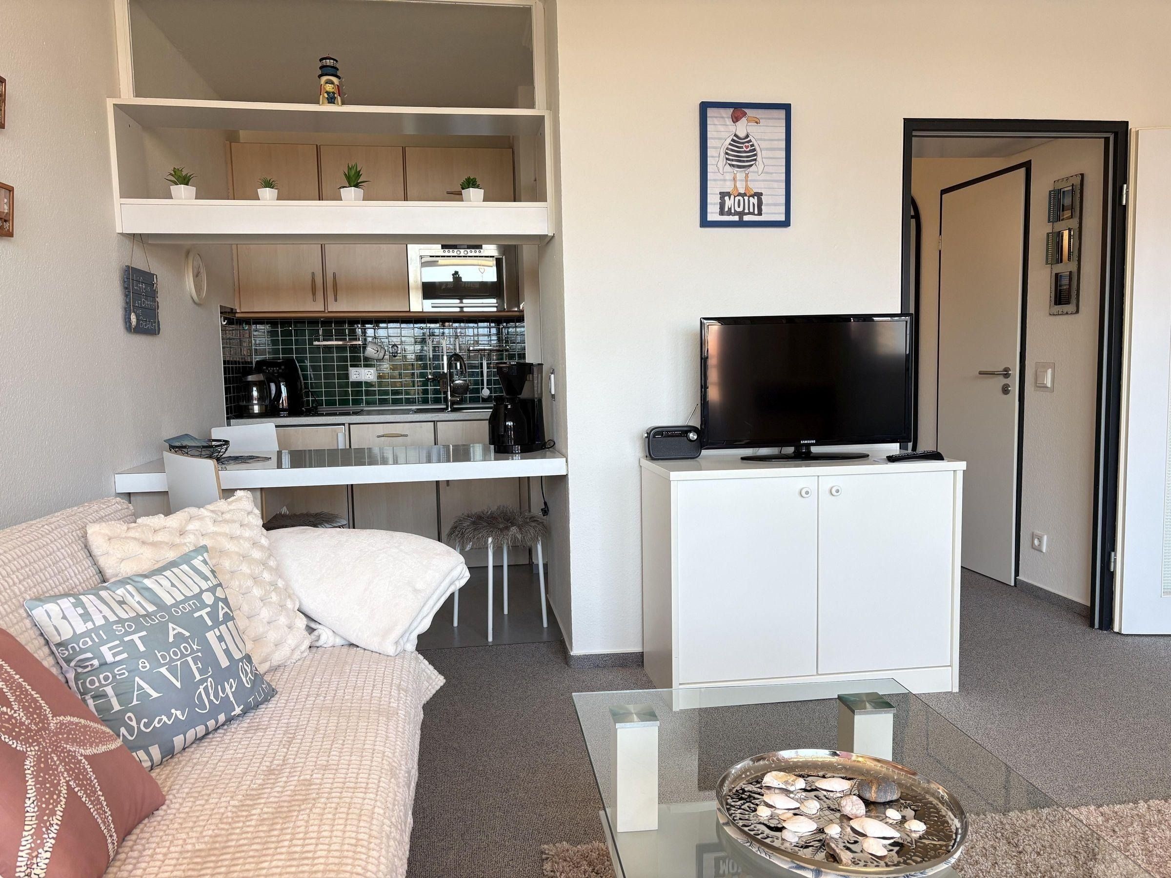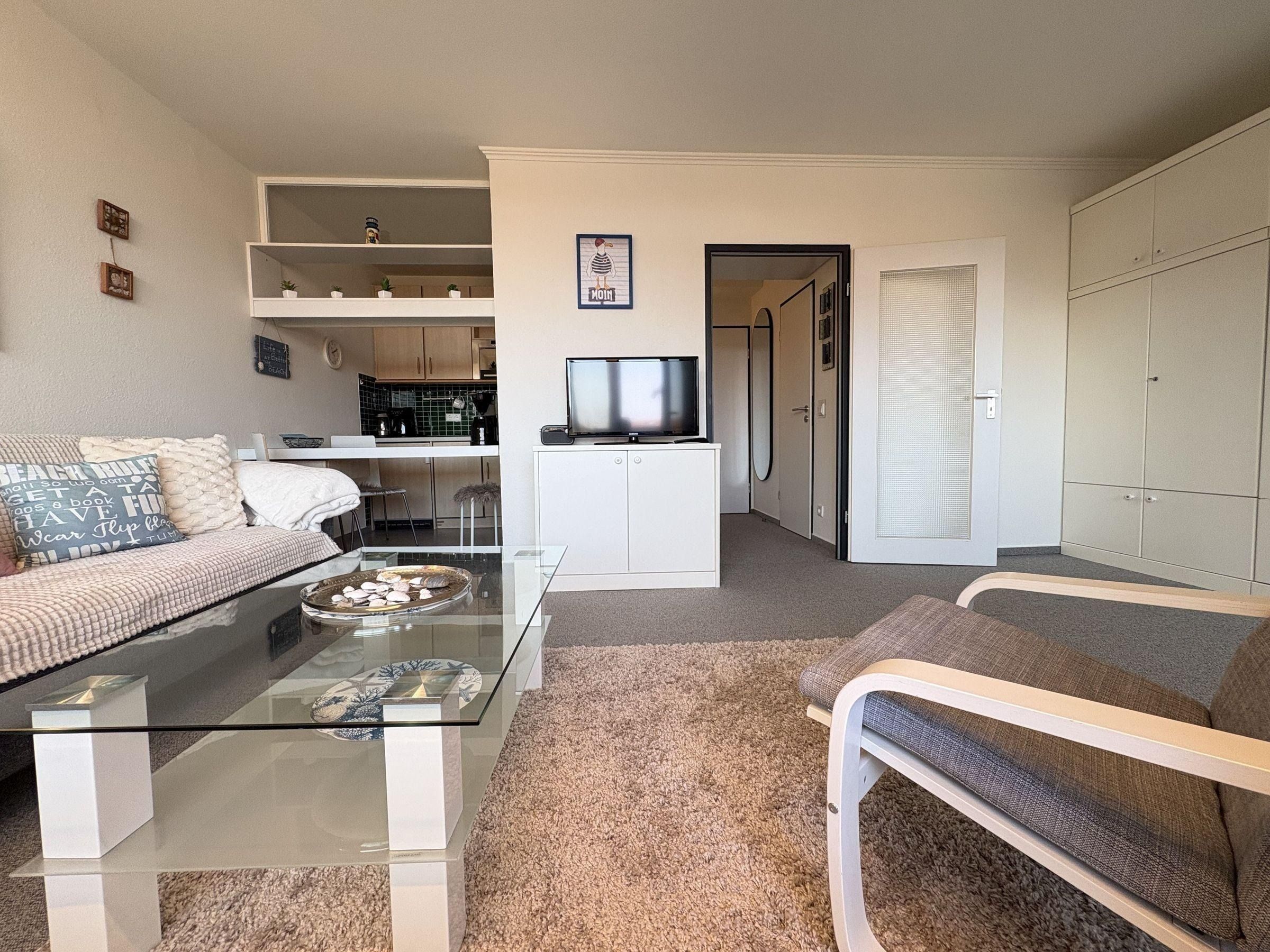 Das 1-Zimmer-Appartement in Dahme bietet Platz für 2 Personen, einen überdachten Balkon, hauseigenes Schwimmbad und direkten Zugang zum 6,5 km langen Sandstrand – ideal für erholsame Urlaubstage!