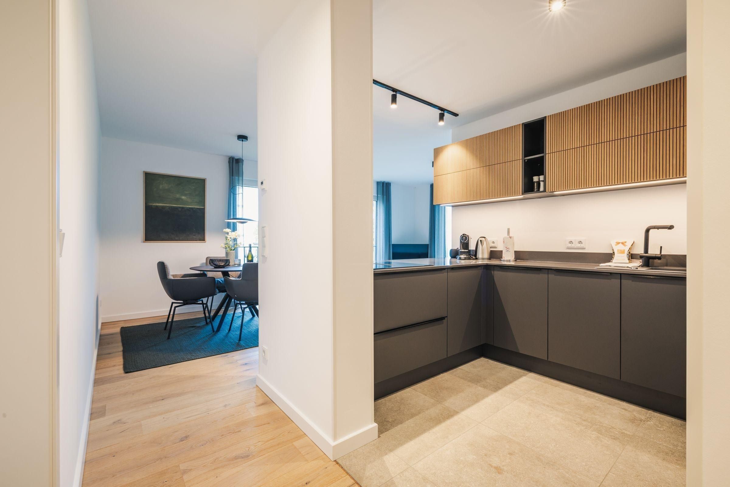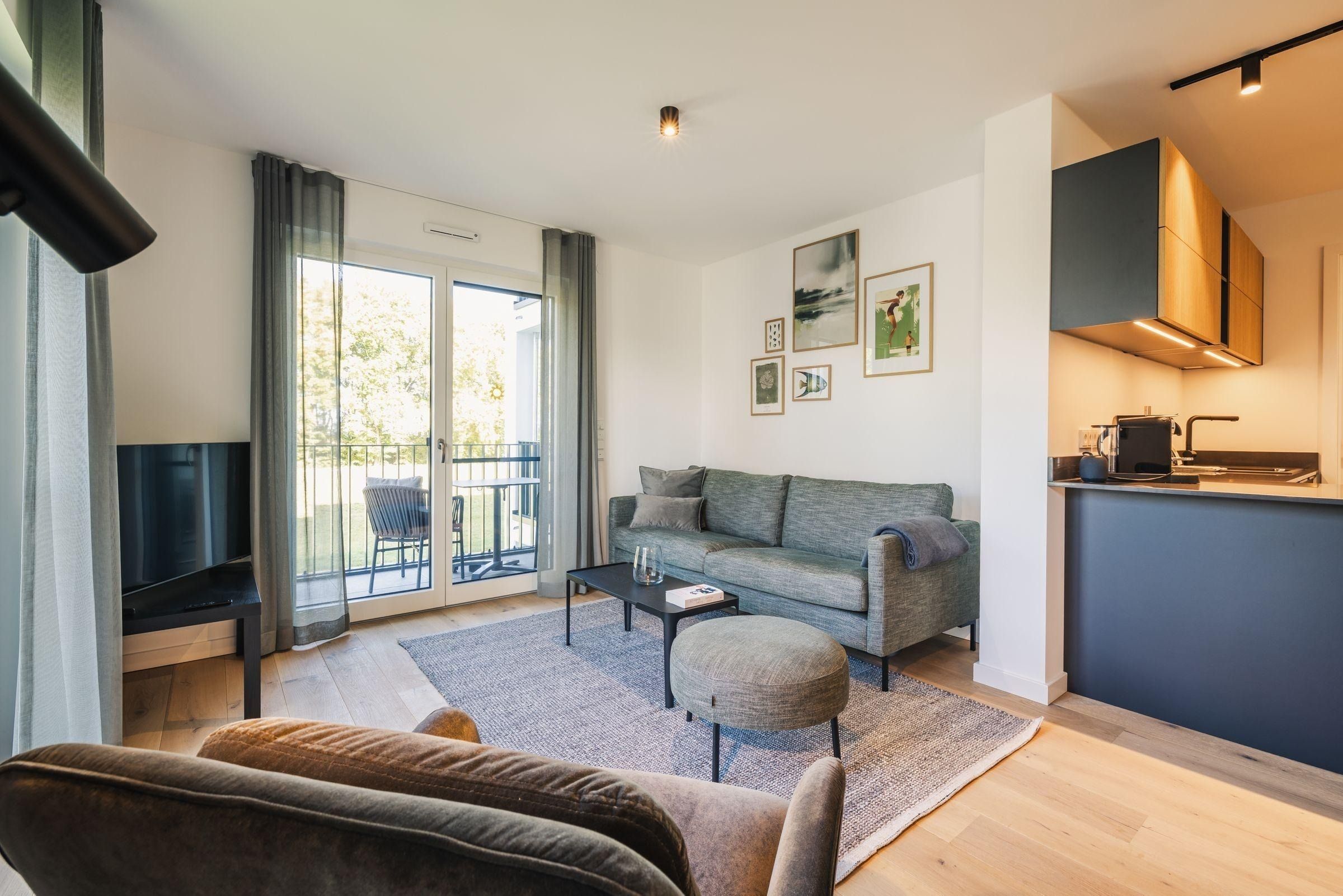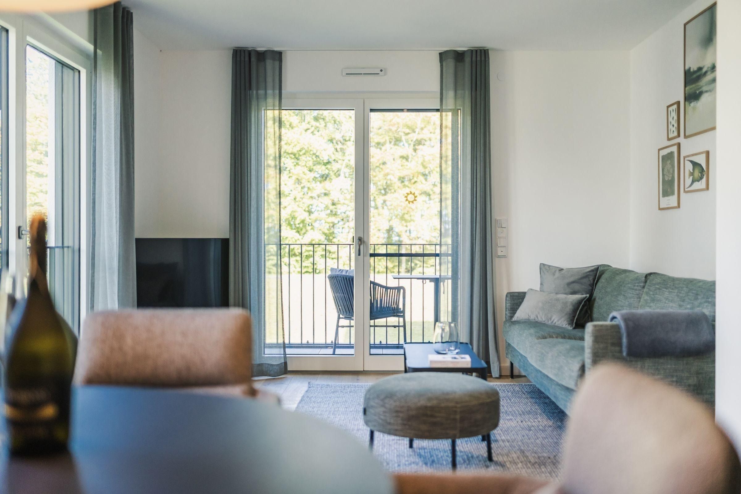 Das Strandvilla Zingst- AP 06 stellt eine hochwertig ausgestattete 2-Zimmer-Unterkunft in direkter Strandlage dar. Mit 60 m² bietet sie idealen Komfort für bis zu zwei Personen. Im 1. Stock gelegen, verfügt die Nichtraucherwohnung über ein Schlafzimmer mit einem Doppelbett (180x200 cm), ein modernes Badezimmer mit bodengleicher Dusche sowie einen lichtdurchfluteten Wohn- und Essbereich. Die offene Küche ist komplett ausgestattet, darunter ein Induktionsherd, Backofen und Spülmaschine. Eine gemütliche Sofaecke, zwei TVs und WLAN ergänzen die Ausstattung. Ein Highlight ist die zur Eigennutzung verfügbare Sauna. Praktische Annehmlichkeiten wie eine Waschmaschine, ein Trockner sowie Gartenmöbel auf dem überdachten Balkon sind ebenfalls vorhanden. Für die Anreise stehen ein Parkplatz in der Tiefgarage und eine E-Ladesäule zur Verfügung.