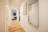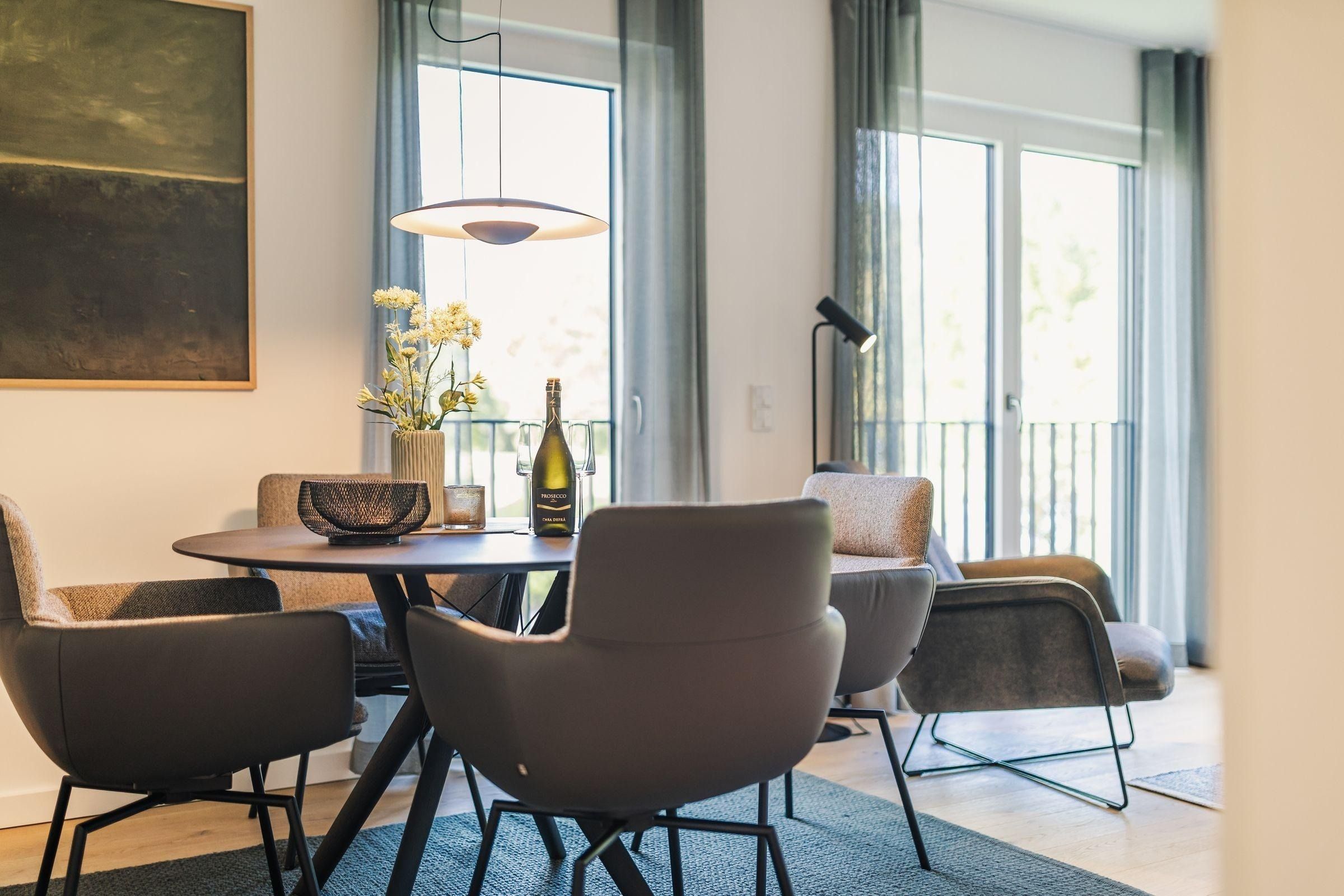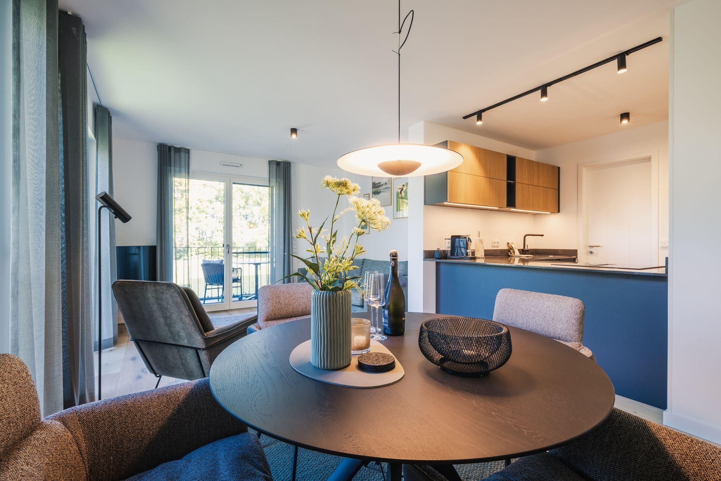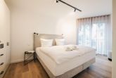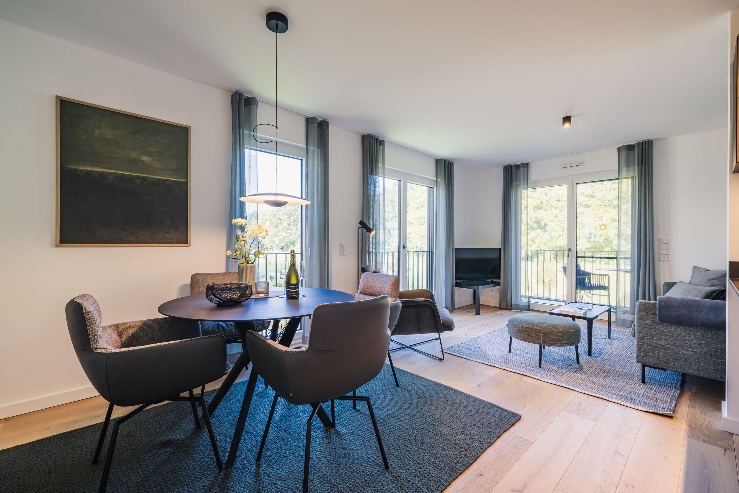 Das Strandvilla Zingst- AP 06 stellt eine hochwertig ausgestattete 2-Zimmer-Unterkunft in direkter Strandlage dar. Mit 60 m² bietet sie idealen Komfort für bis zu zwei Personen. Im 1. Stock gelegen, verfügt die Nichtraucherwohnung über ein Schlafzimmer mit einem Doppelbett (180x200 cm), ein modernes Badezimmer mit bodengleicher Dusche sowie einen lichtdurchfluteten Wohn- und Essbereich. Die offene Küche ist komplett ausgestattet, darunter ein Induktionsherd, Backofen und Spülmaschine. Eine gemütliche Sofaecke, zwei TVs und WLAN ergänzen die Ausstattung. Ein Highlight ist die zur Eigennutzung verfügbare Sauna. Praktische Annehmlichkeiten wie eine Waschmaschine, ein Trockner sowie Gartenmöbel auf dem überdachten Balkon sind ebenfalls vorhanden. Für die Anreise stehen ein Parkplatz in der Tiefgarage und eine E-Ladesäule zur Verfügung.