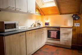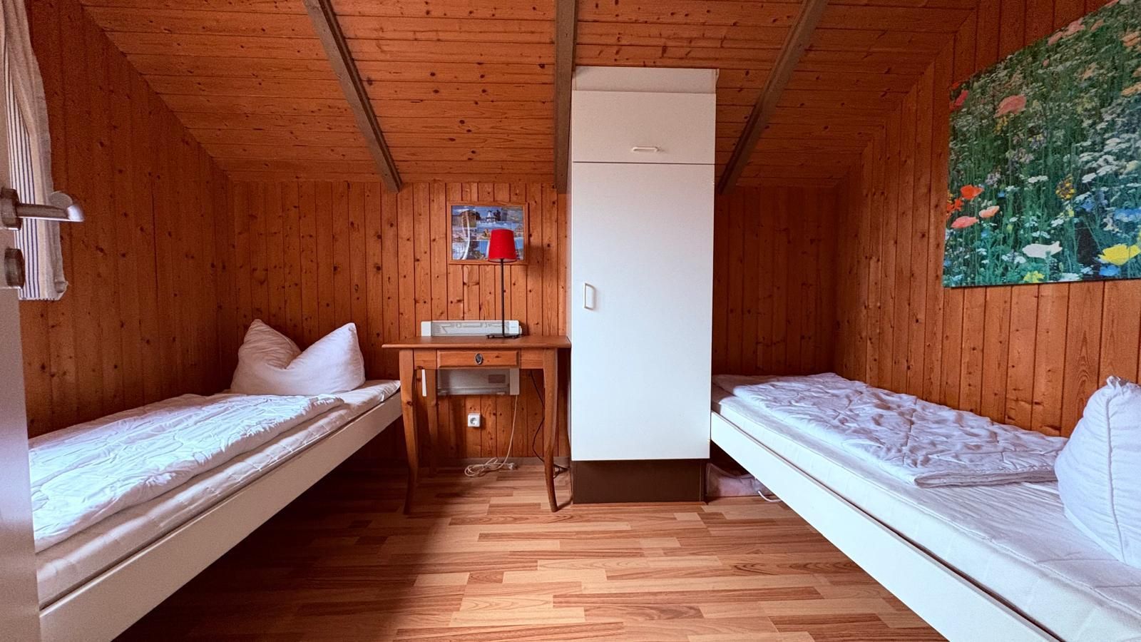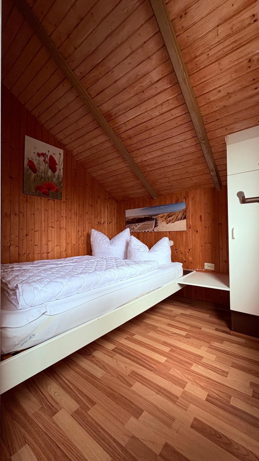 Das urgemütliche Reihenhaus ist komplett eingerichtet für bis zu 6 Personen. 3 Schlafräume mit 2 Doppelzimmern (140x200 cm) und 1 Zweibettzimmer (je 80x200 cm), (Kinderbett auf Anfrage möglich), Wohnzimmer, Dusche/WC, offene Küchenzeile, große Terrasse mit Gartenmöbeln.