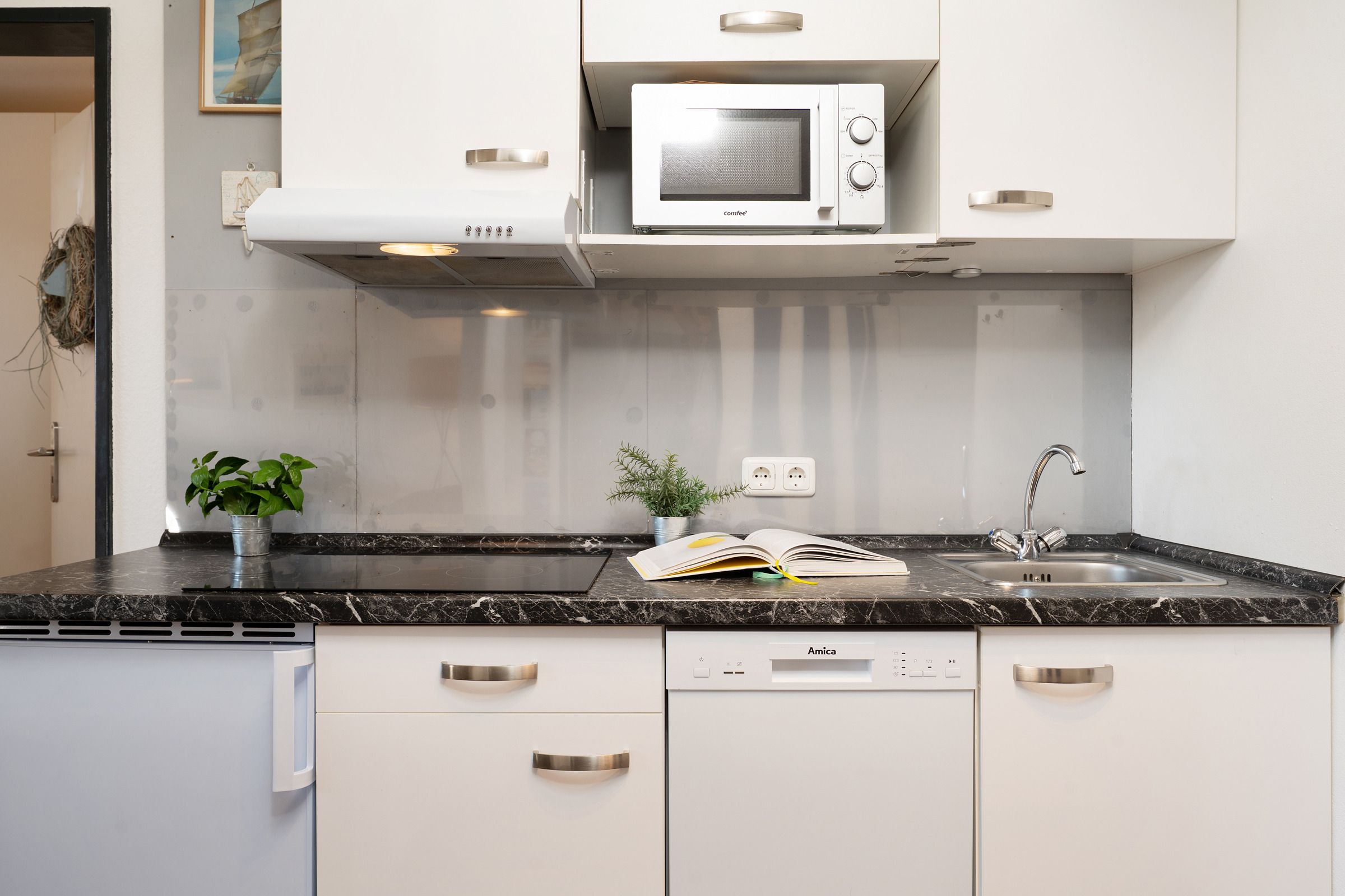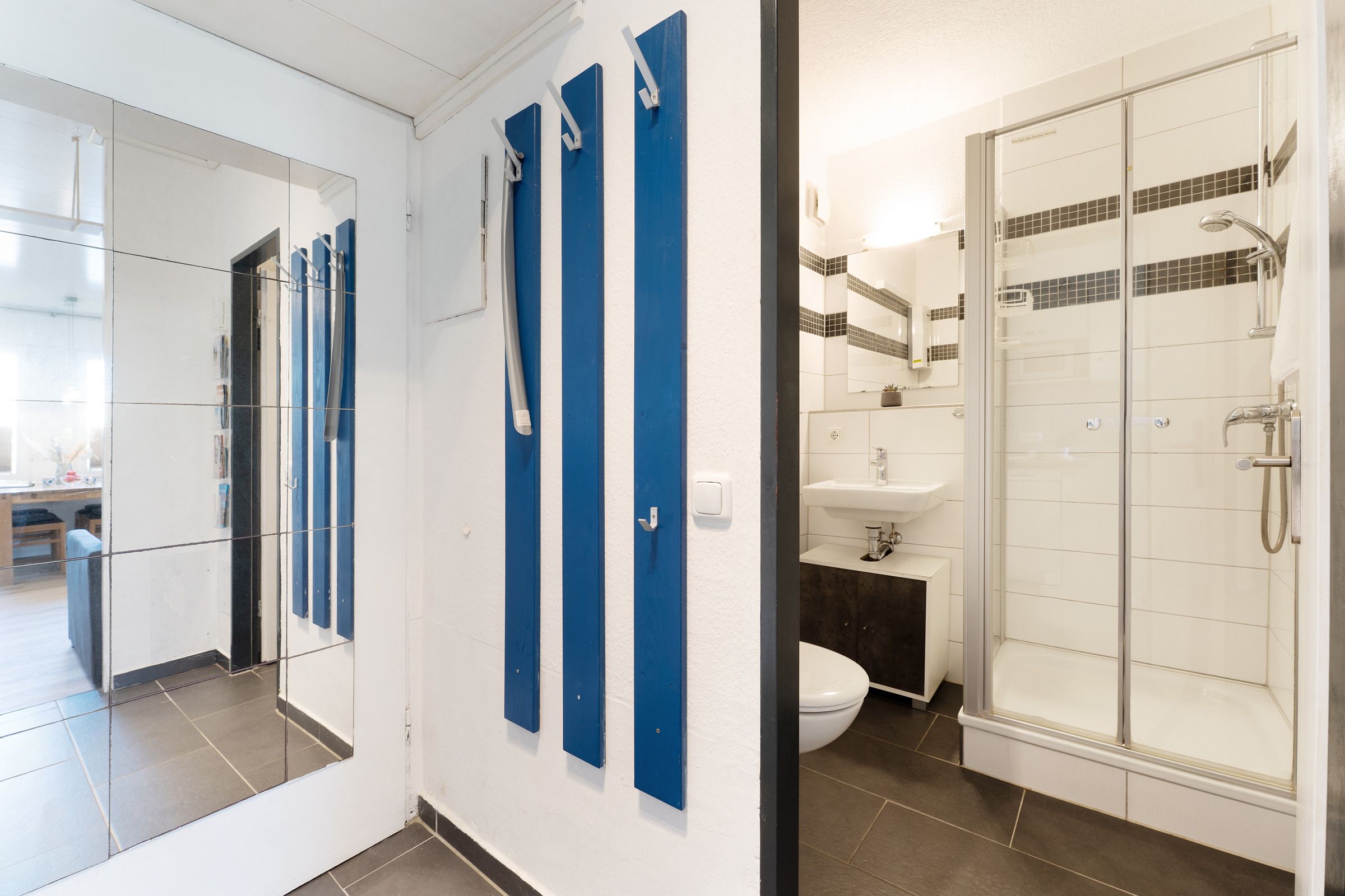 Willkommen in dieser charmanten Ferienwohnung, die Sie mit einem offenen Wohnbereich empfängt. Hier sorgen ein bequemes Sofa, das zugleich als Schlafsofa dient, sowie ein TV und WLAN für entspannte Stunden. Die kompakte Küche ist mit Herd, Kühlschrank, Kaffeemaschine, Toaster und Wasserkocher ausgestattet und bietet alles für die Zubereitung Ihrer Lieblingsgerichte. Der benachbarte Essplatz schafft einen gemütlichen Rahmen für gemeinsame Mahlzeiten. Das Schlafzimmer verfügt über zwei komfortable Einzelbetten und schafft einen angenehmen Rückzugsort. Das Badezimmer rundet den Rundgang mit einer Dusche ab.