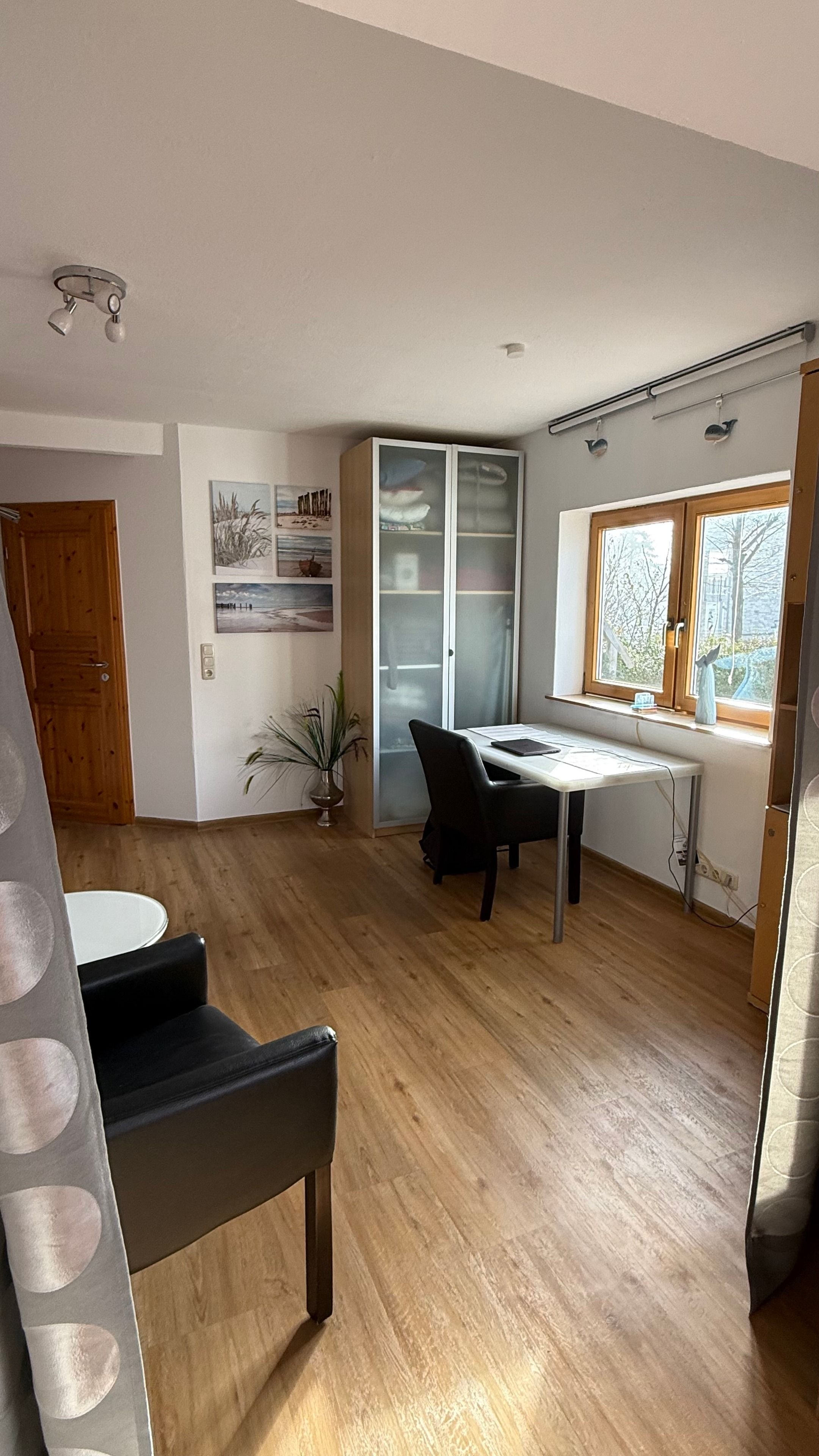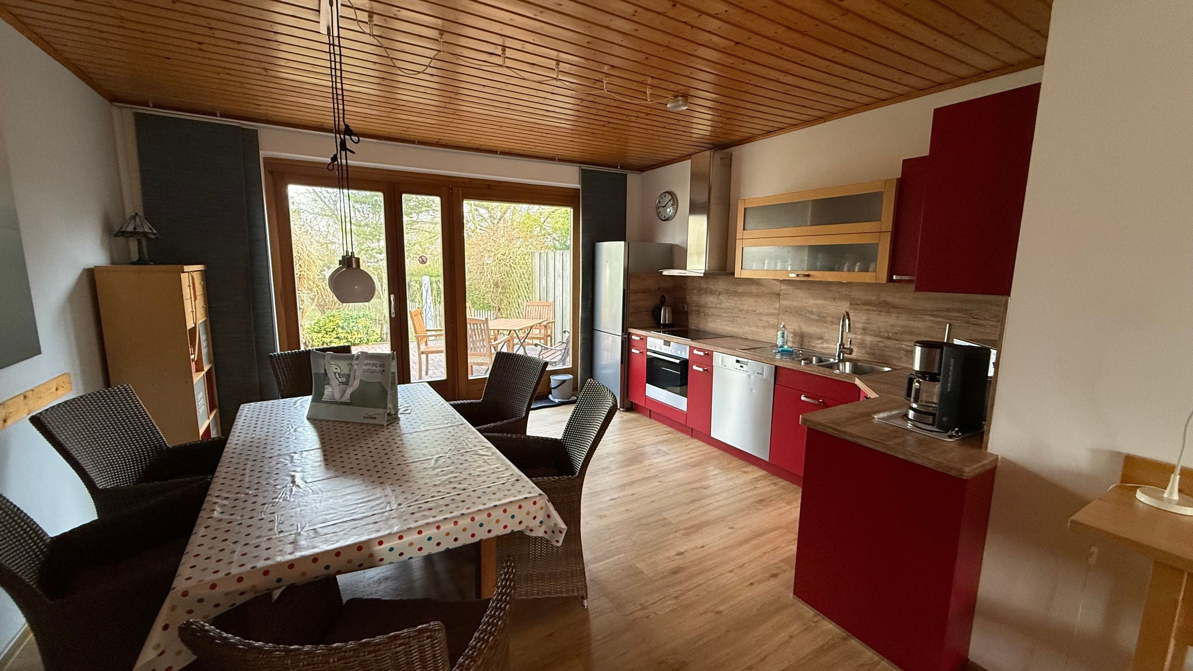 Das Objekt befindet sich in strandnaher Lage und verfügt über ein Erdgeschoss, ein Obergeschoss und eine gemütlich einladende Terrasse mit Blick in den grünen Garten.... Aufgeteilt ist Ihr Feriendomizil in: Offener Wohnbereich mit gemütlicher Couchgarnitur, gut ausgestatteter Küchenzeile und einem Schlafzimmer (2 Einzelbetten), Smart TV (Sat), Stereoanlage mit CD-Player, Telefon und Internet-Wlan, Duschbad und WC, mit Fön und Waschmaschine. Die 1. Etage ist wie folgt aufgeteilt:
