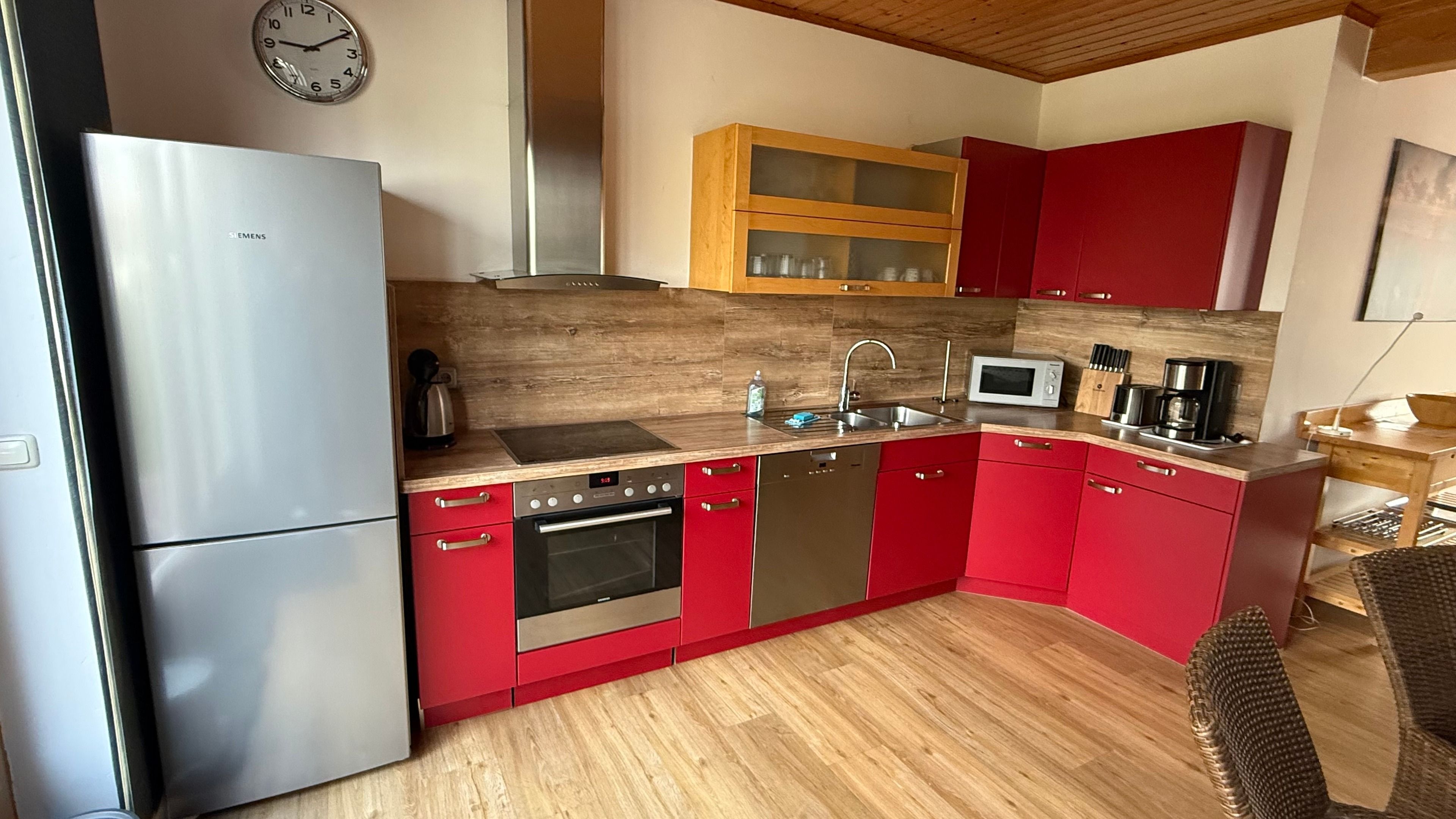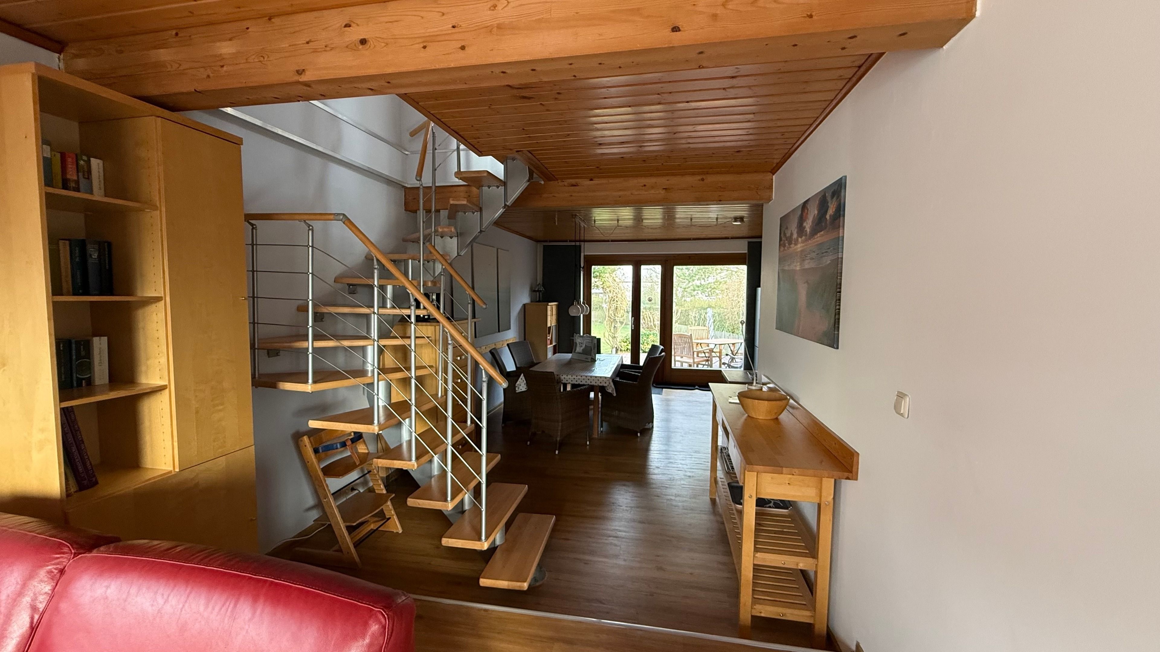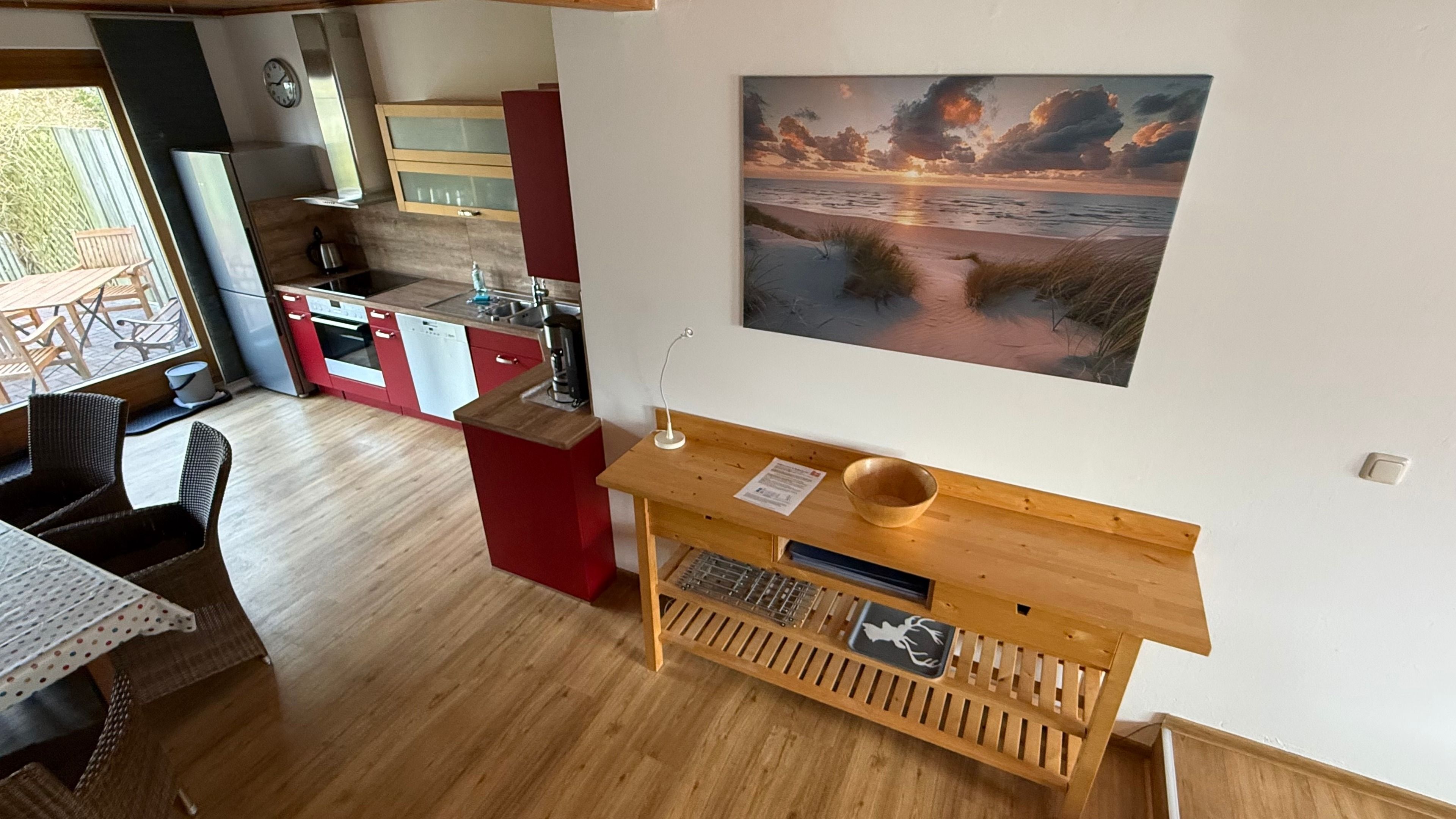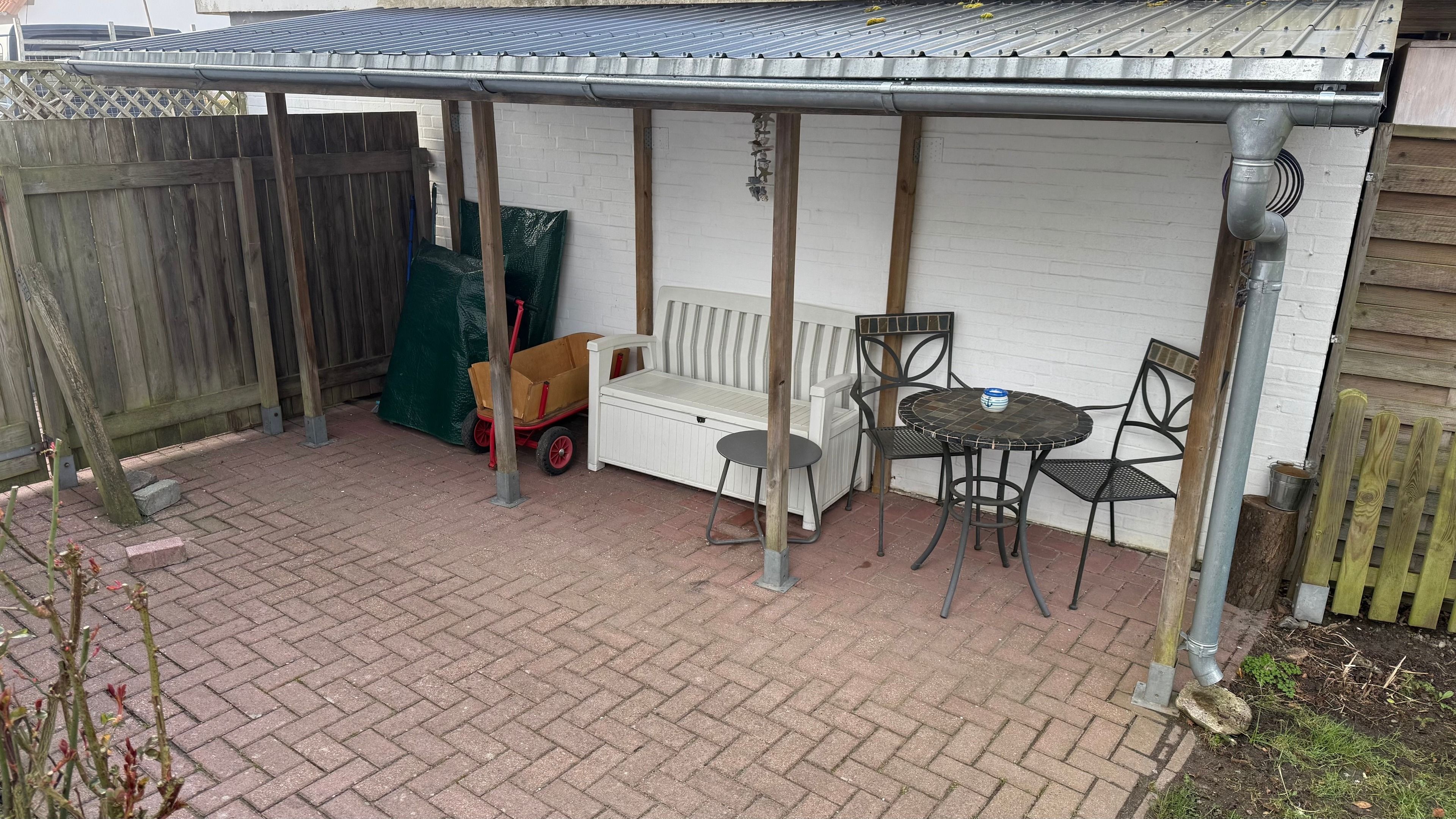 Im Garten befindet sich eine Unterstellmöglichkeit für Ihre Fahrräder. Ein Bollerwagen ist ebenfalls inklusive, damit fällt der Weg zum Strandkorb am Strand etwas leichter.