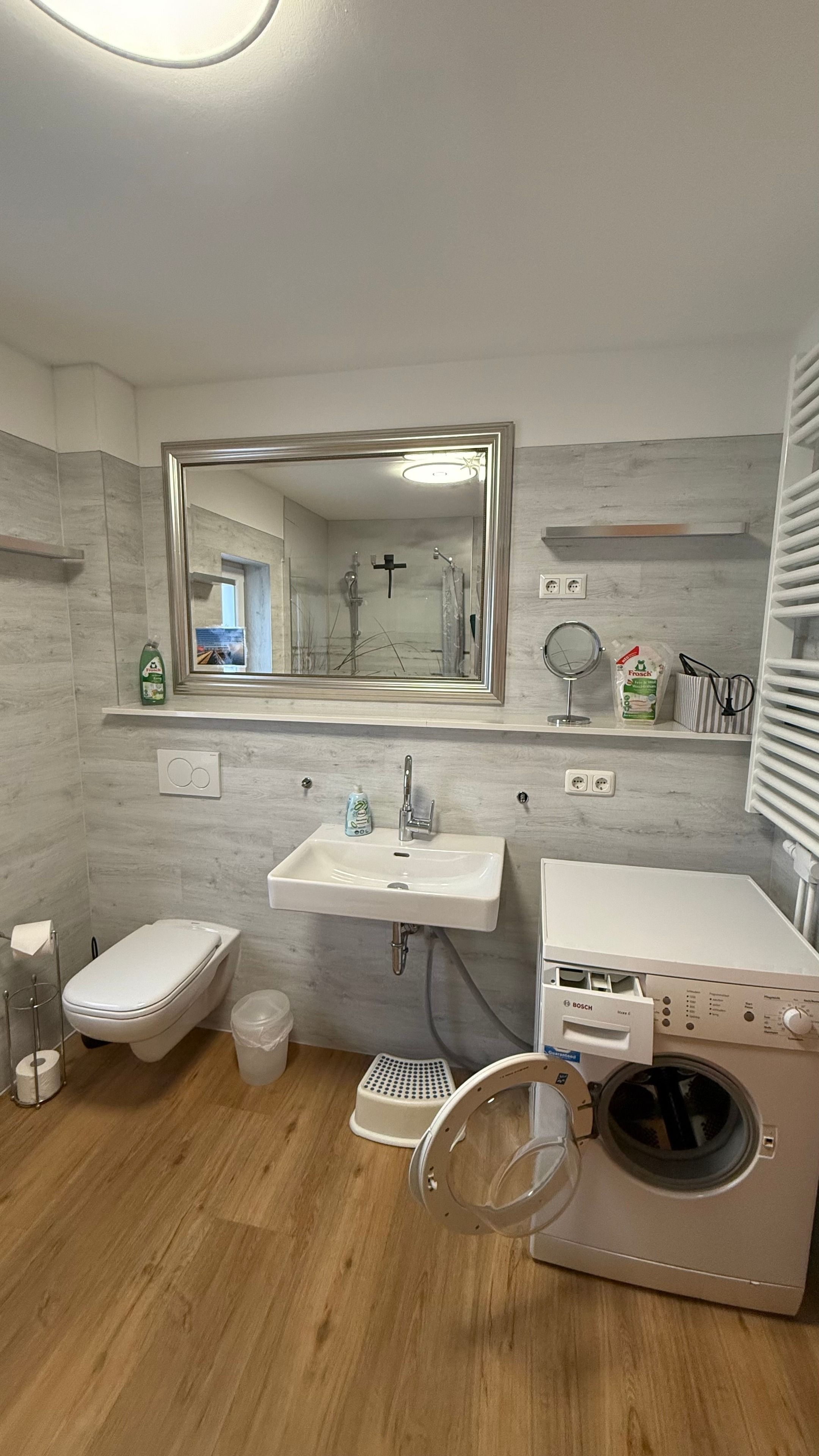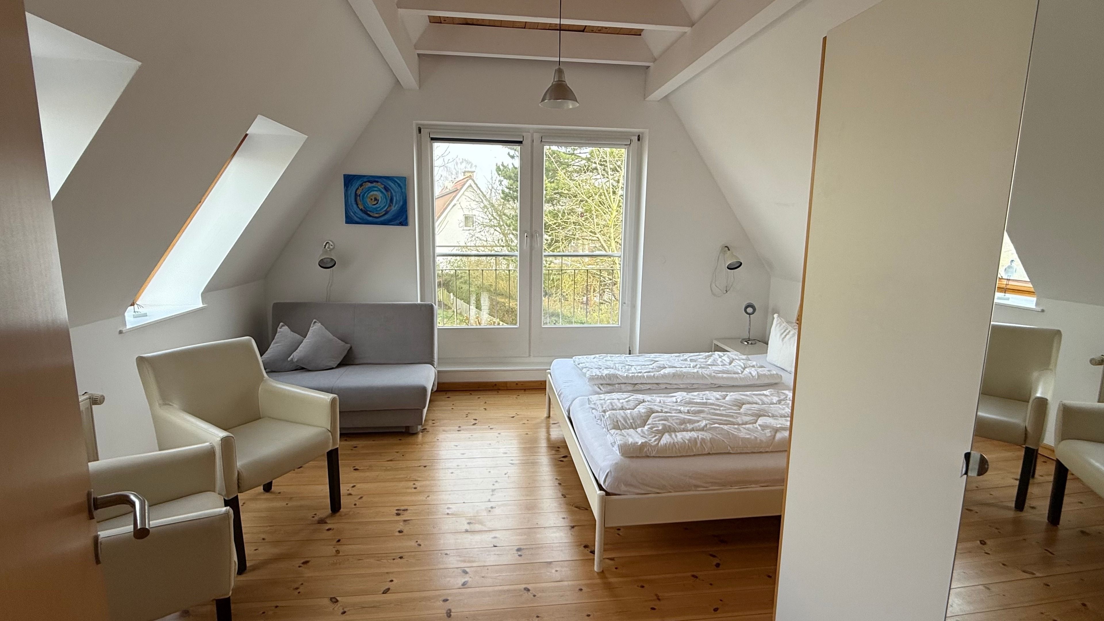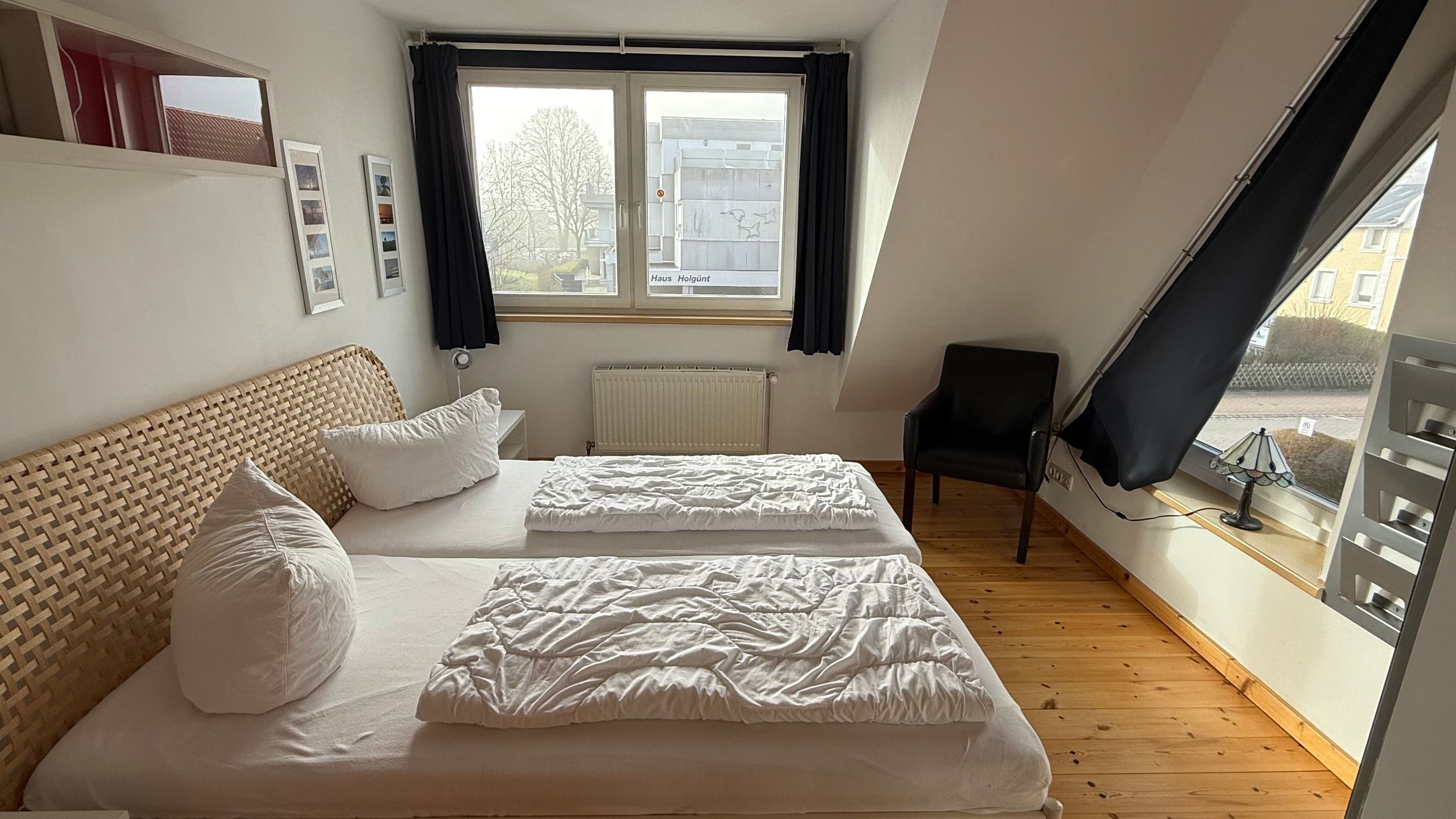 1 gemütliches Schlafzimmer mit Doppelbett, 1 weiteres Schlafzimmer mit Doppelbett und Schlafcouch (1,20 x 1,90), sowie ein separates Duschbad mit Dusche/WC und Fön.