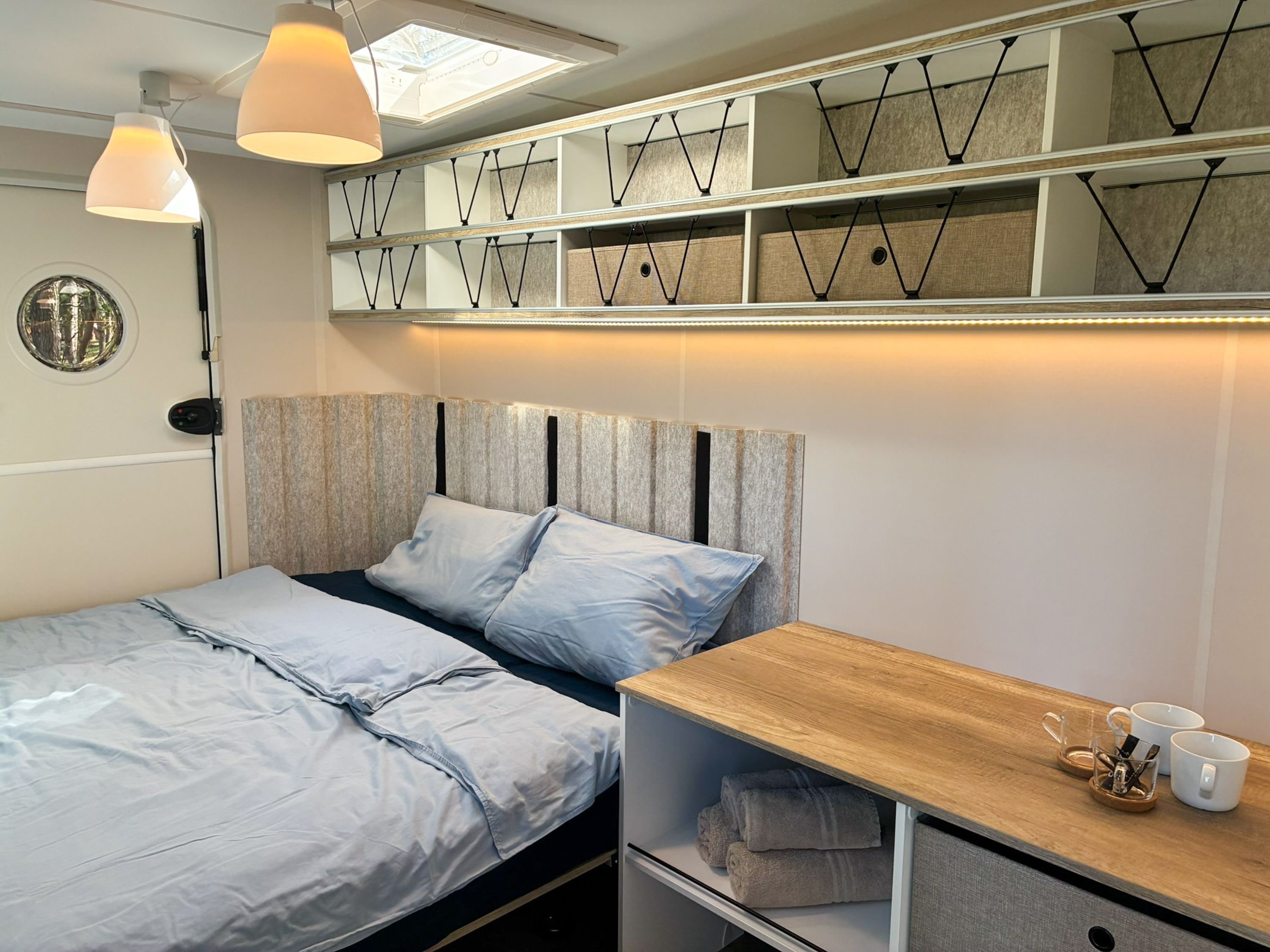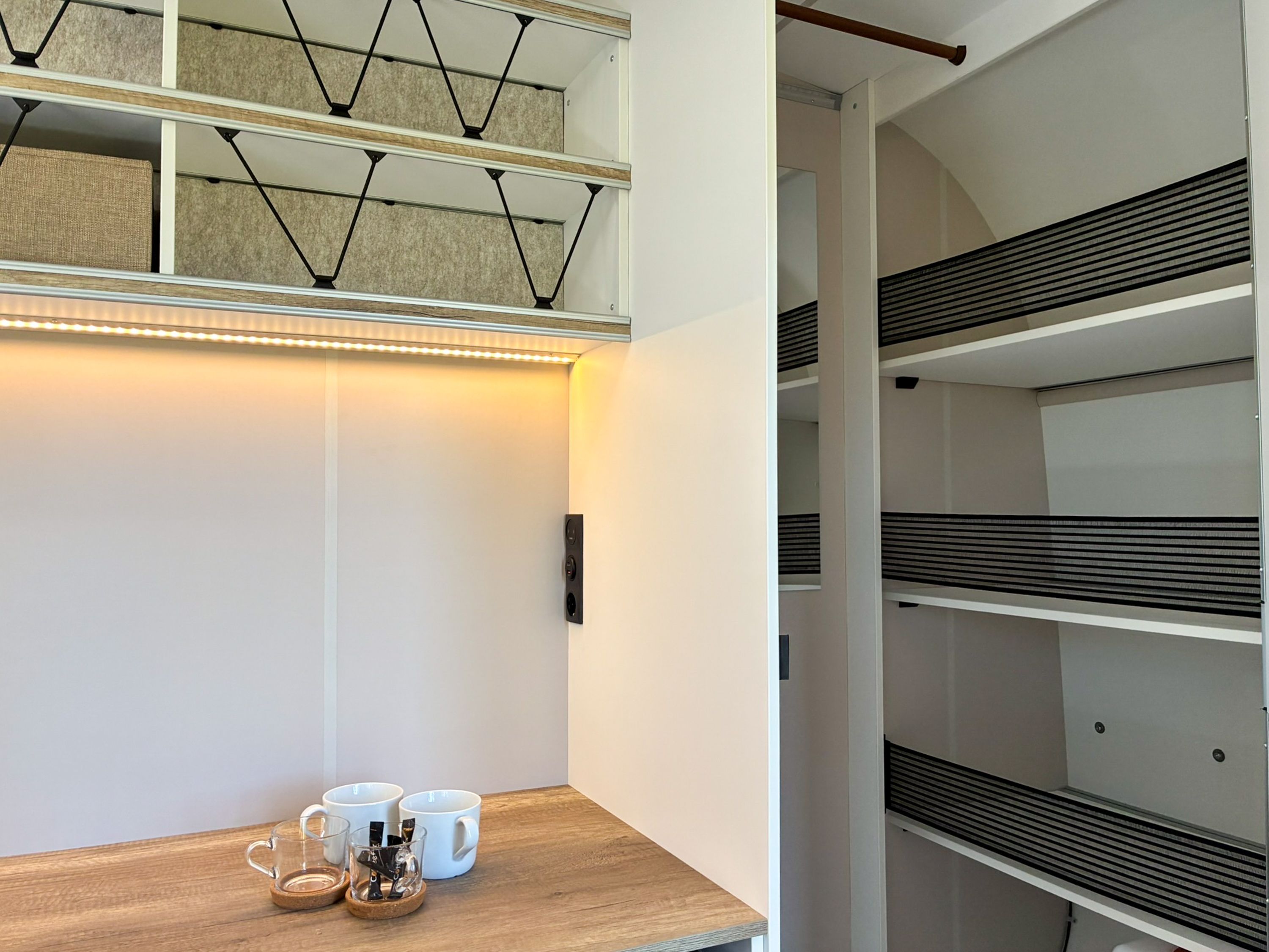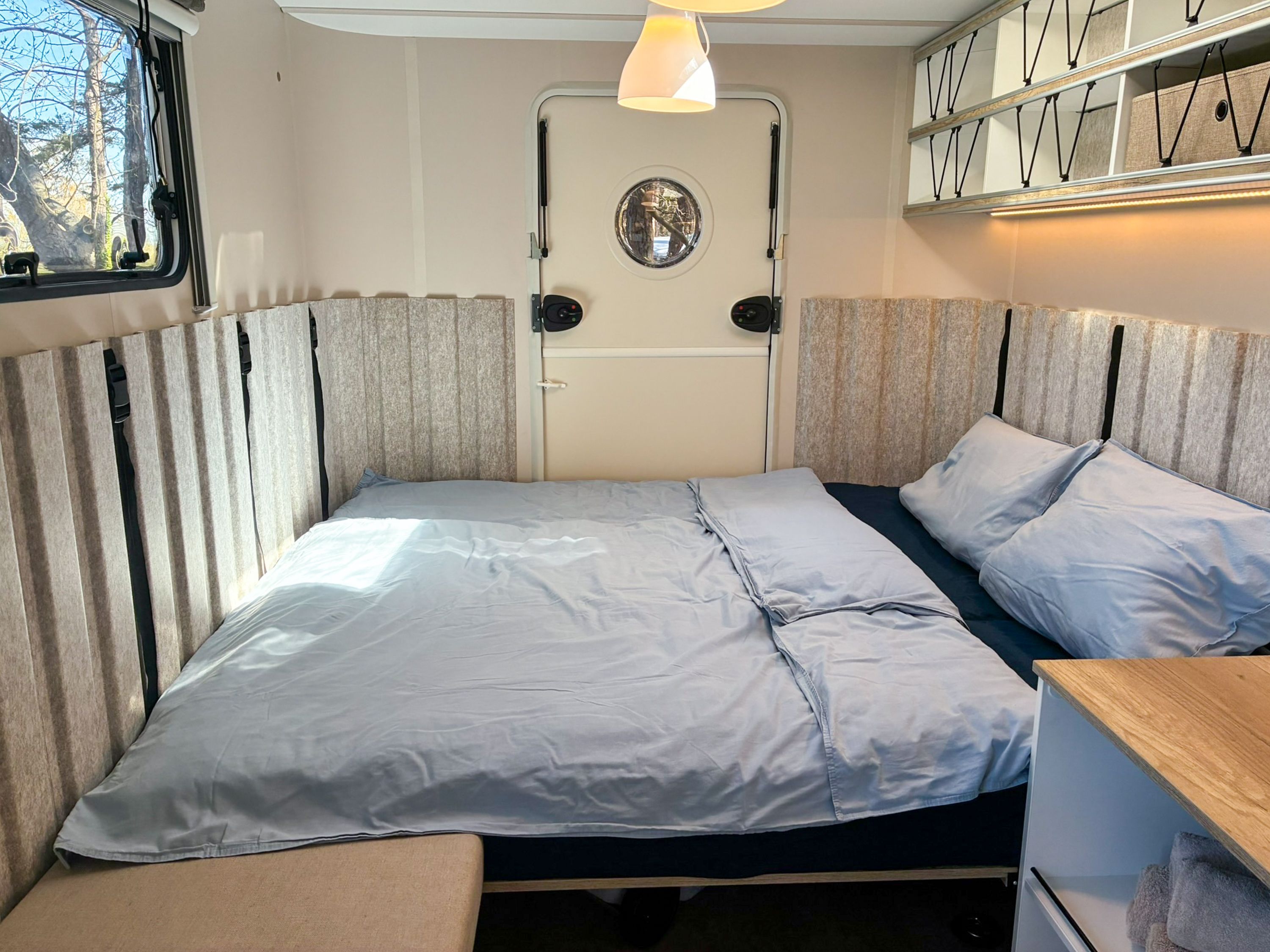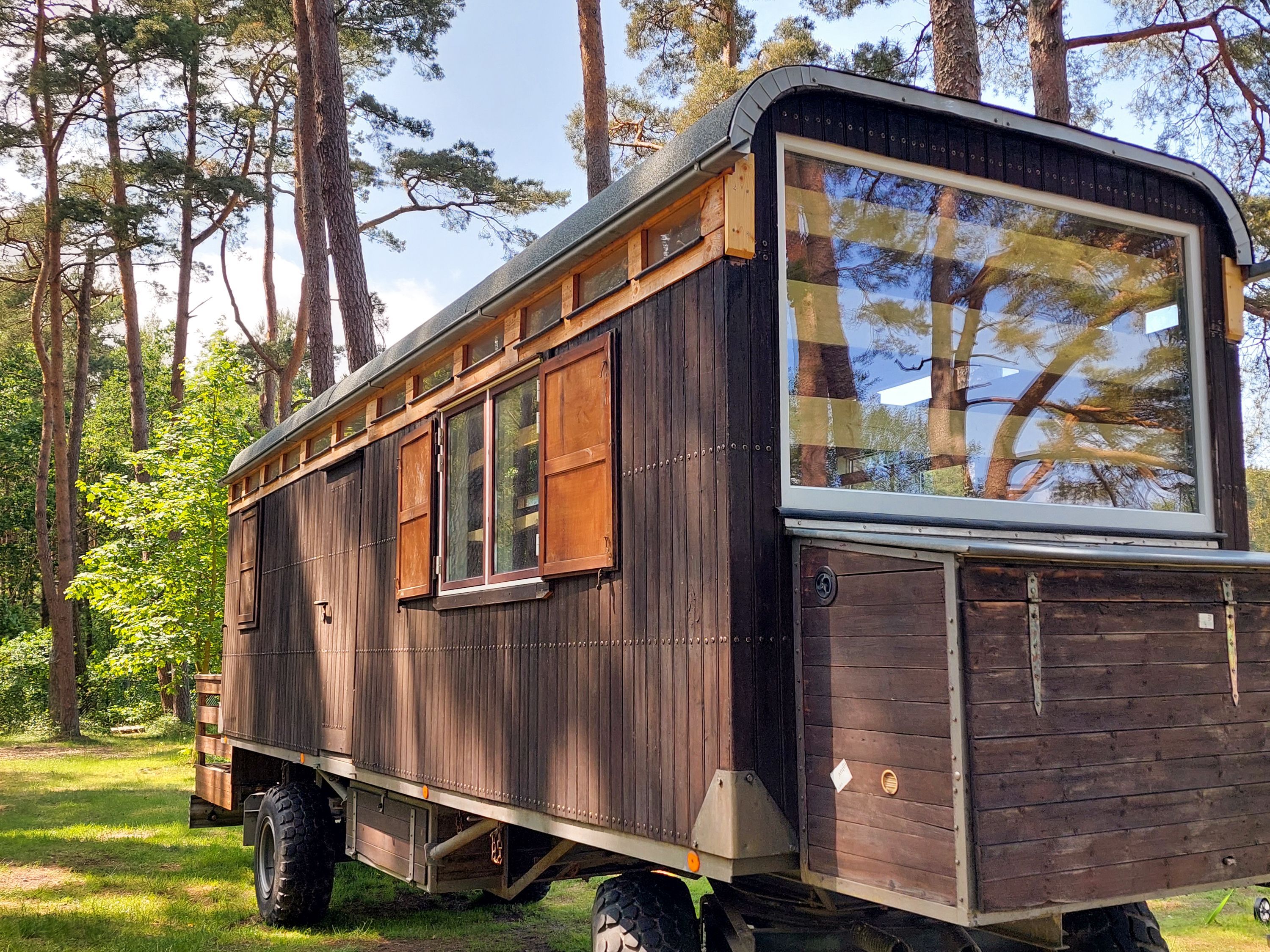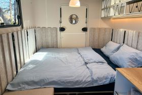 Beachy ist ein kompakter Wohnwagen mit 8,5 m² für bis zu 2 Erwachsene und 1 Kind bis 14 Jahre. Du schläfst im Familienbett und nutzt Picknickbank und Liegestühle direkt vor deinem Wohnwagen, ideal für lange Sommerabende. Simson ist ein liebevoll ausgebauter Schäferwagen und eignet sich für bis zu 2 Personen und 1 Kind bis 3 Jahre. Mit gemütlicher Schlafebene, Sitzmöglichkeiten und dem passenden Camping Charme ist er genau richtig für eine kleine Auszeit zu zweit.