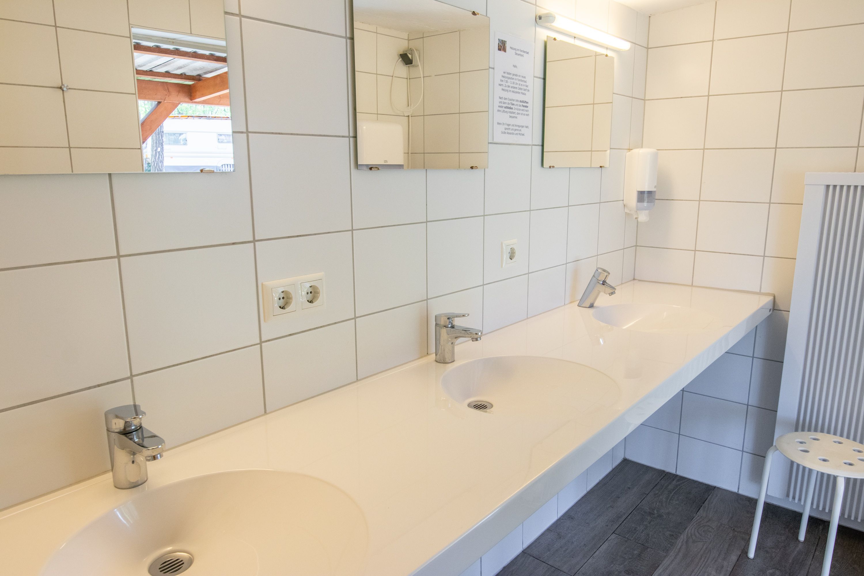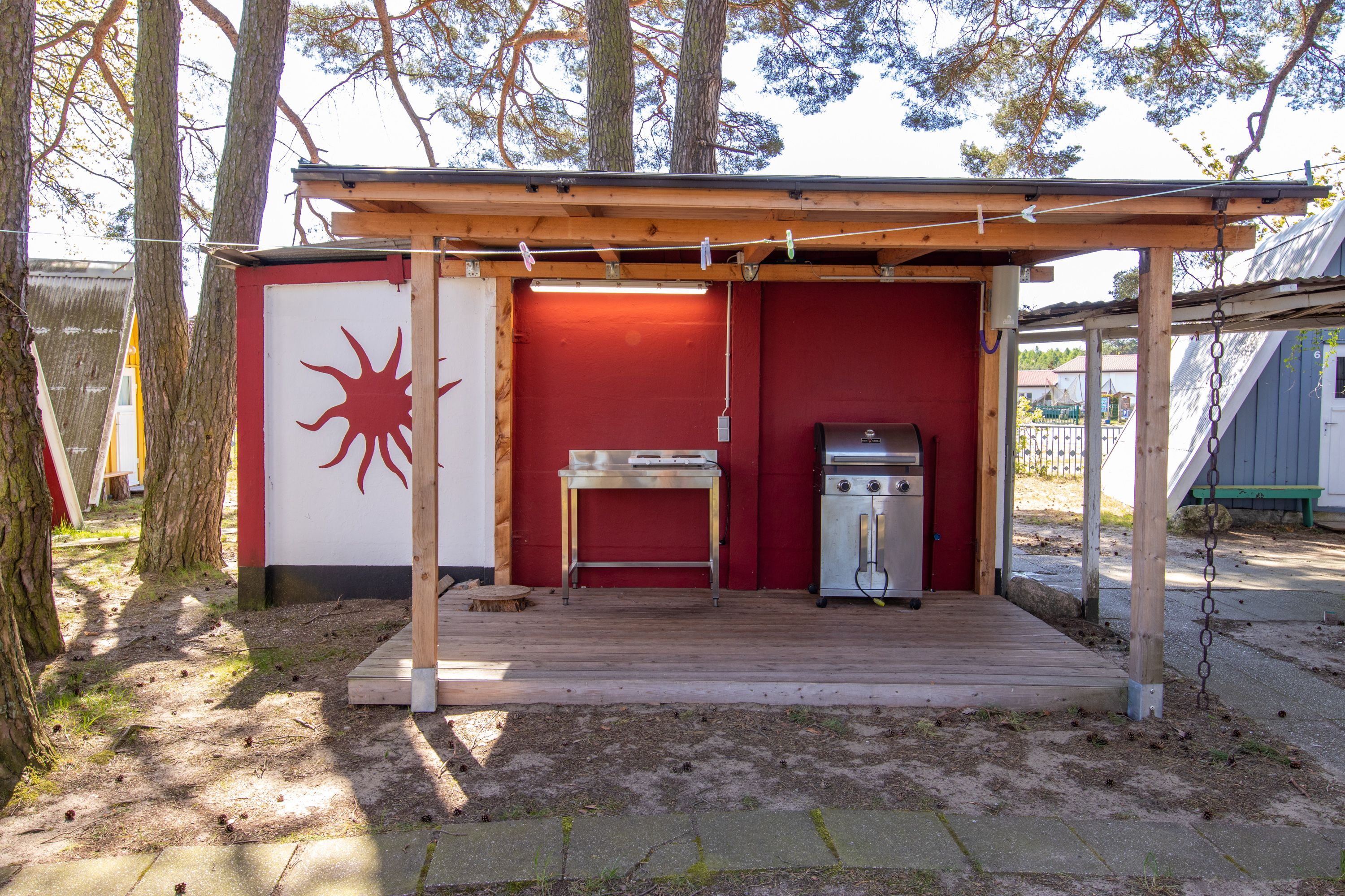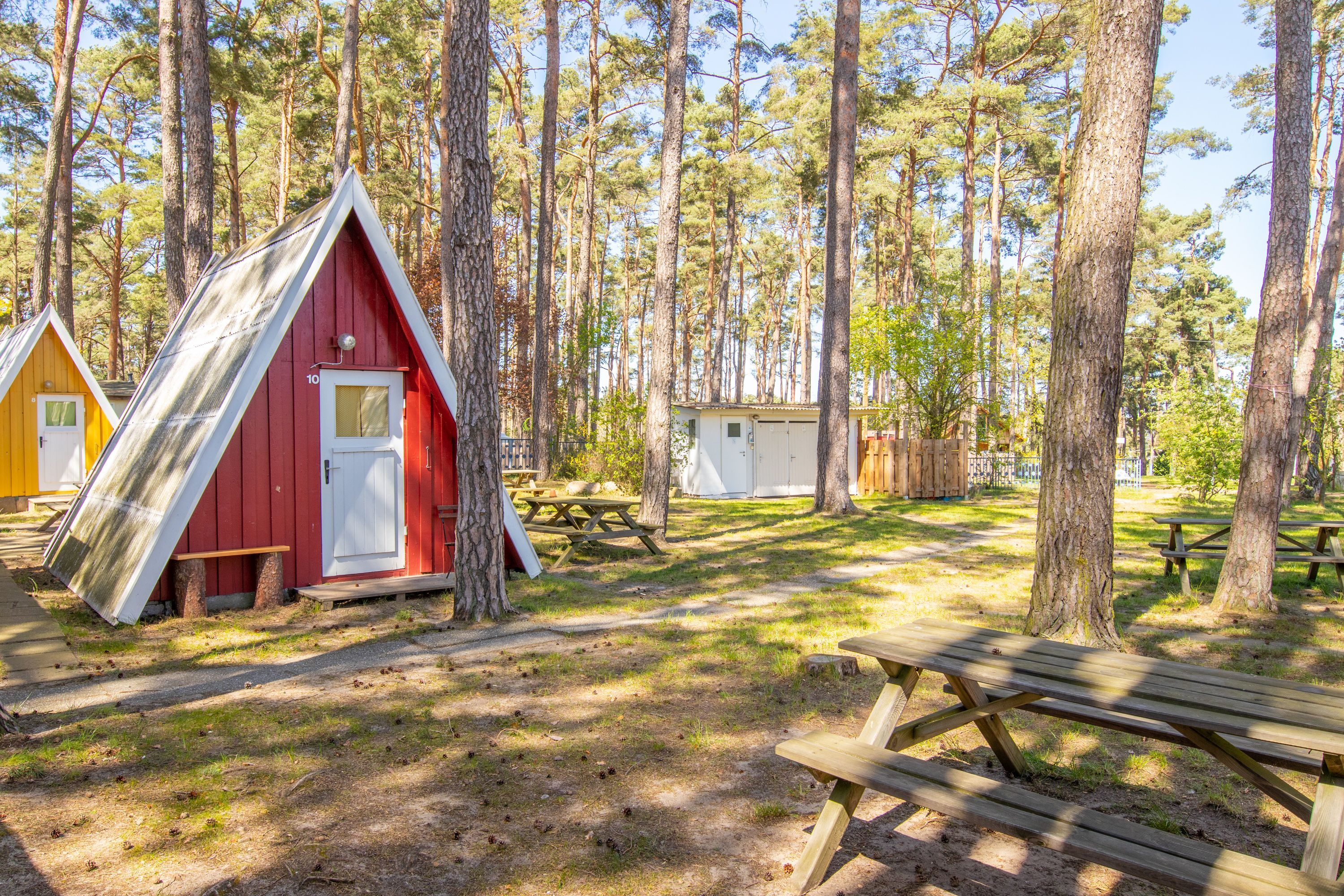 Die drei Sanitärbereiche mit WC, Waschraum und Dusche werden gemeinschaftlich genutzt und liegen gut verteilt auf dem Campingplatz. Außerdem stehen dir eine Gemeinschaftsküche, ein Outdoorgrill, Picknickbänke sowie ein Kulturraum zur Verfügung, der bei schlechtem Wetter tolle Rückzugs und Aufenthaltsmöglichkeiten bietet. Die Rezeption und ein Kiosk findest du im charmanten Bauwagen, Waschmaschine und Trockner stehen ebenfalls bereit. Rund um die Rezeption kannst du kostenfreies WLAN nutzen, in den Hütten und Lodges ist WLAN kostenpflichtig über ein MyCloud Ticket erhältlich.