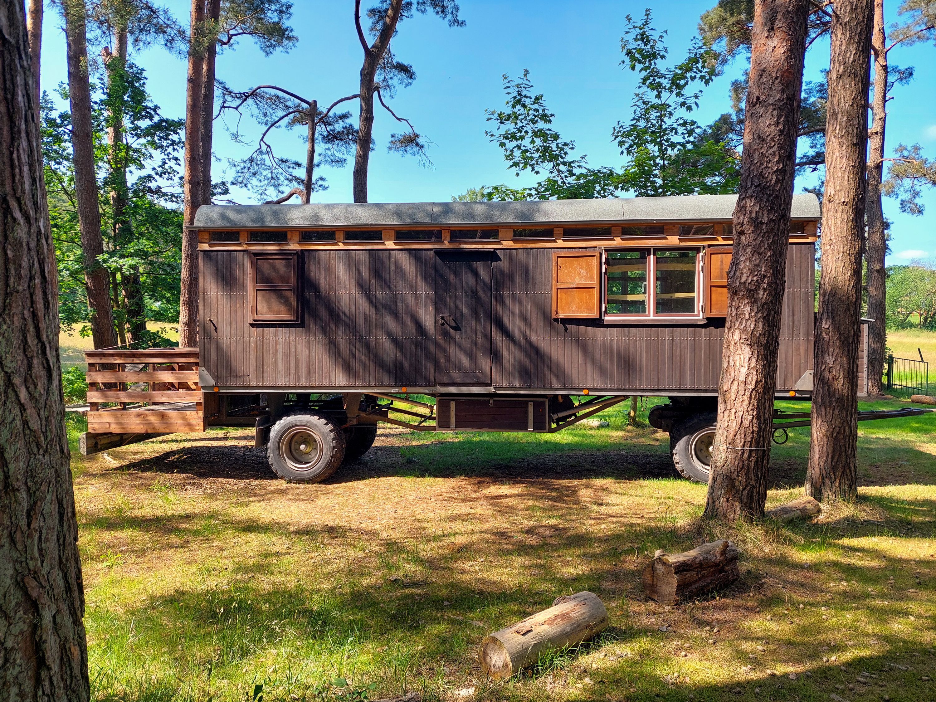 Beachy ist ein kompakter Wohnwagen mit 8,5 m² für bis zu 2 Erwachsene und 1 Kind bis 14 Jahre. Du schläfst im Familienbett und nutzt Picknickbank und Liegestühle direkt vor deinem Wohnwagen, ideal für lange Sommerabende. Simson ist ein liebevoll ausgebauter Schäferwagen und eignet sich für bis zu 2 Personen und 1 Kind bis 3 Jahre. Mit gemütlicher Schlafebene, Sitzmöglichkeiten und dem passenden Camping Charme ist er genau richtig für eine kleine Auszeit zu zweit.