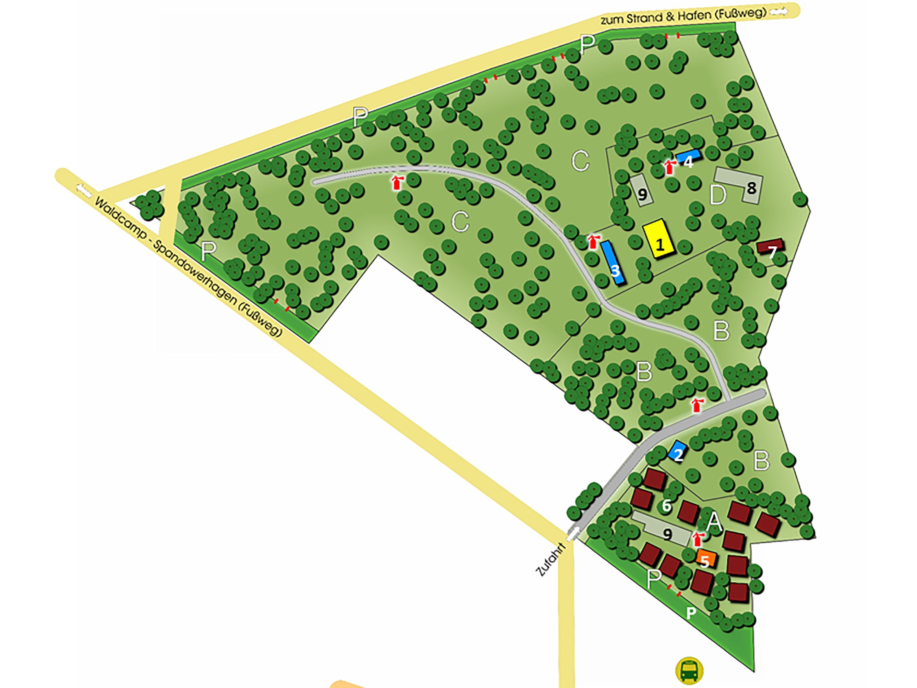 Die drei Sanitärbereiche mit WC, Waschraum und Dusche werden gemeinschaftlich genutzt und liegen gut verteilt auf dem Campingplatz. Außerdem stehen dir eine Gemeinschaftsküche, ein Outdoorgrill, Picknickbänke sowie ein Kulturraum zur Verfügung, der bei schlechtem Wetter tolle Rückzugs und Aufenthaltsmöglichkeiten bietet. Die Rezeption und ein Kiosk findest du im charmanten Bauwagen, Waschmaschine und Trockner stehen ebenfalls bereit. Rund um die Rezeption kannst du kostenfreies WLAN nutzen, in den Hütten und Lodges ist WLAN kostenpflichtig über ein MyCloud Ticket erhältlich.