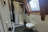 Das Badezimmer ist mit Dusche, WC, Waschbecken, Spiegel, Kosmetikspiegel, Haartrockner und Fenster ausgestattet.