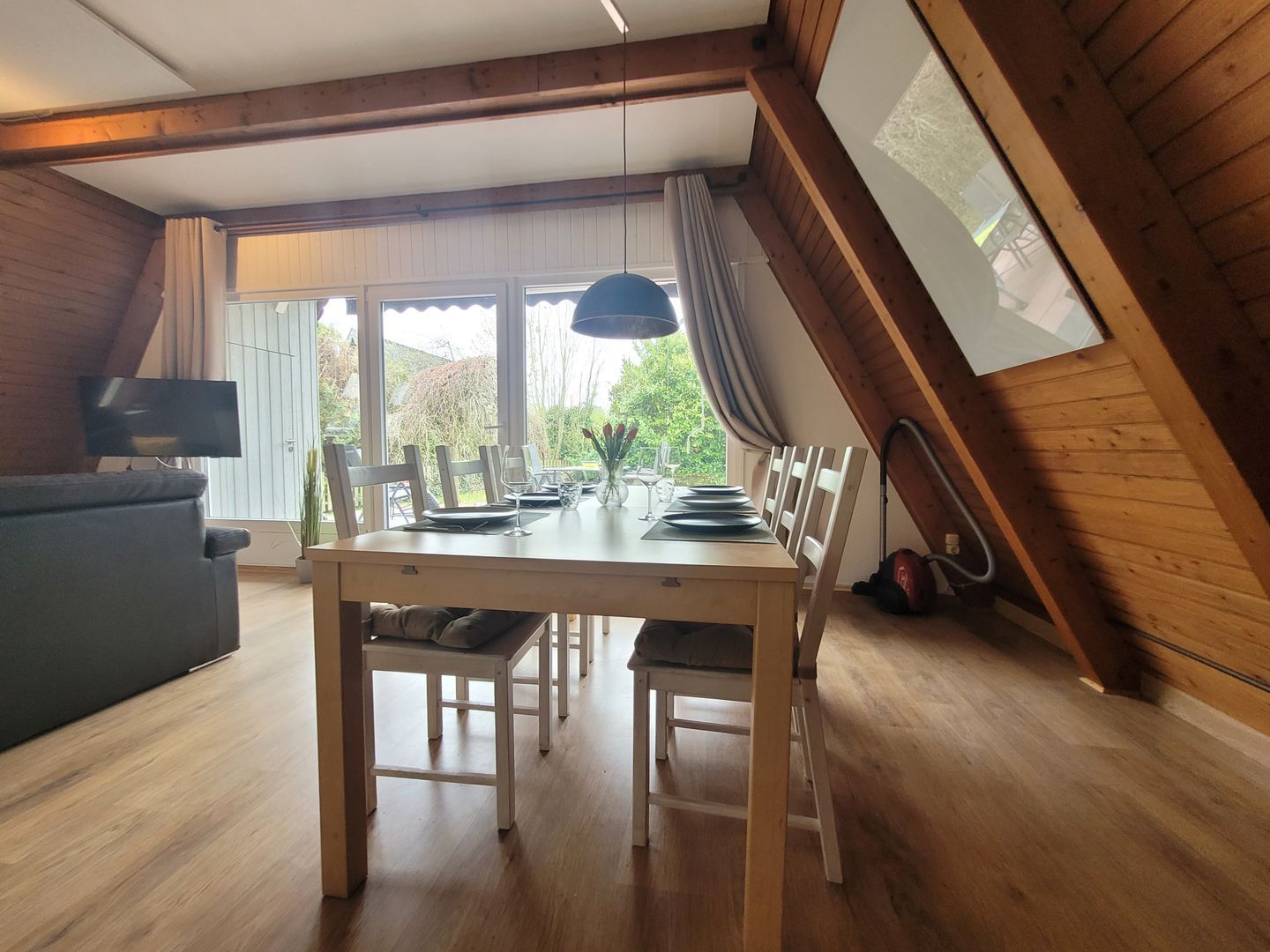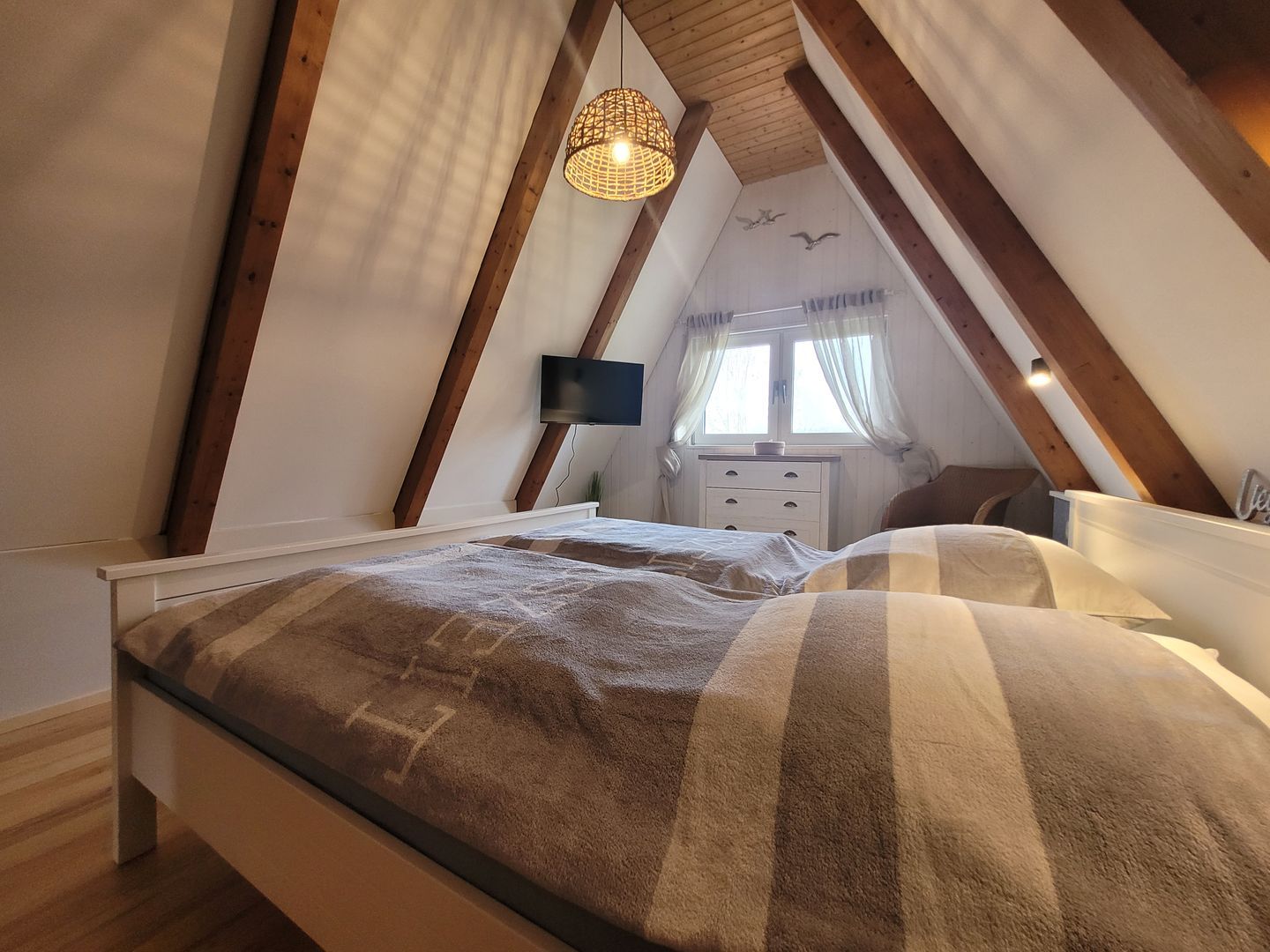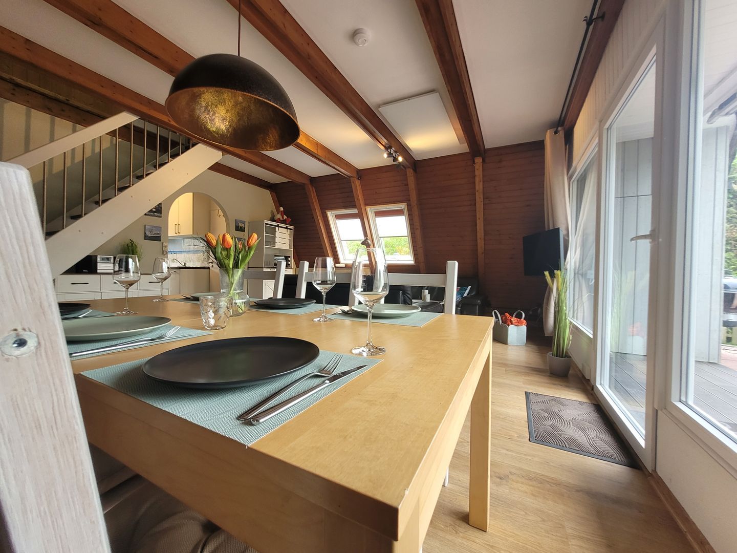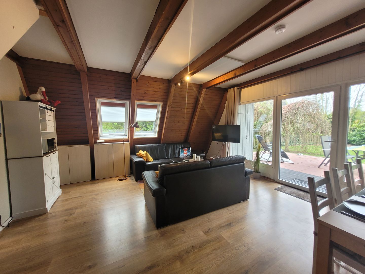 Mit drei Schlafzimmern, insgesamt vier Zimmern und einer offenen Raumgestaltung eignet sich das Nurdachhaus besonders für Familien oder gemeinsam reisende Paare.