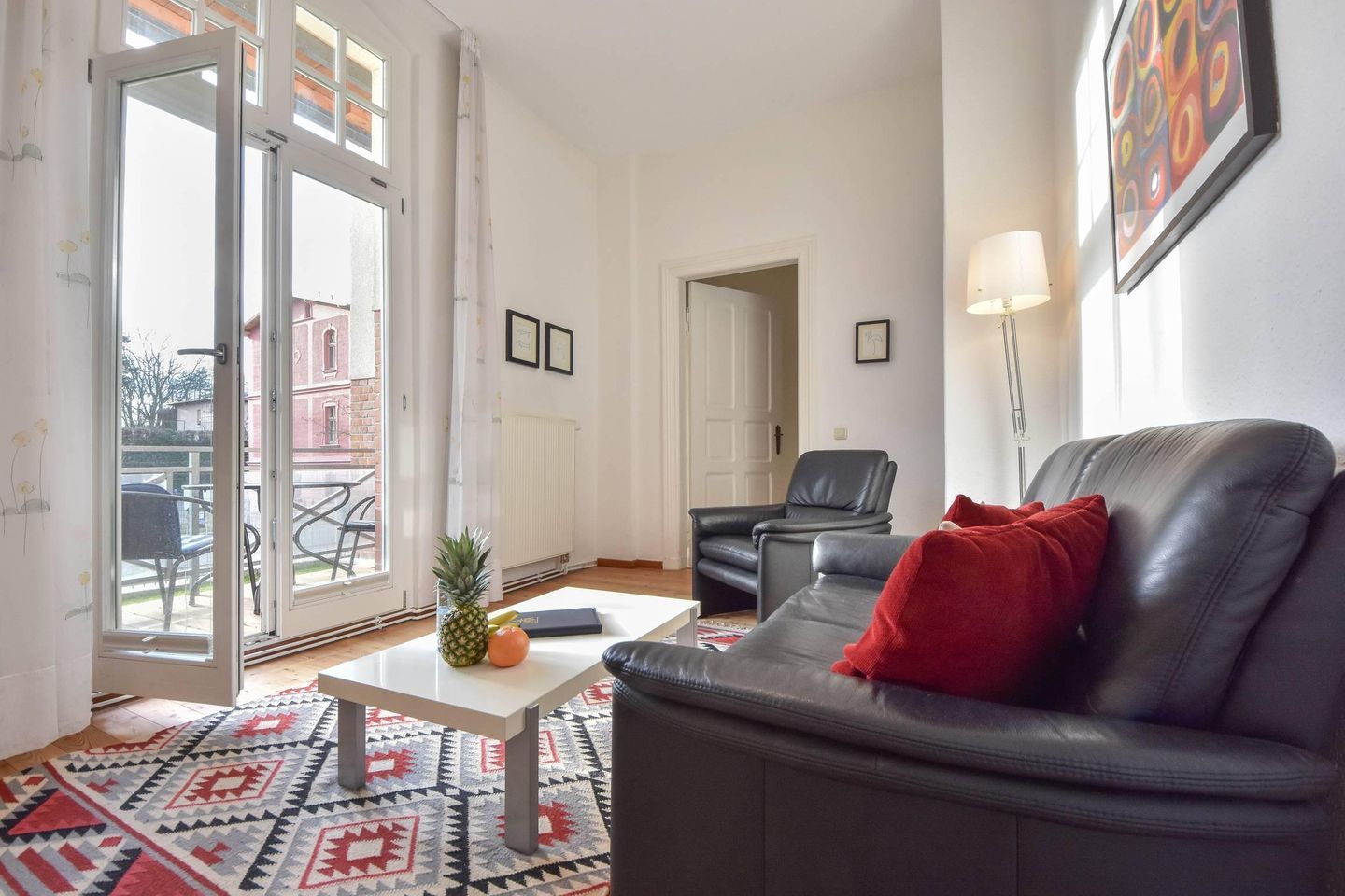 Diese modern eingerichtete Ferienwohnung befindet sich im Hochparterre des Hauses und verfügt über ein Wohnzimmer mit Zugang zum Balkon, eine separate Küche samt Esstisch, Geschirrspüler, Ceranfeld und Mikrowelle, sowie ein Schlafzimmer und ein Bad. In zweiter Reihe zur Promenade erreichen Sie den Strand nach wenigen Schritten. Der echte Dielenboden verleiht der Wohnung einen besonderen Charme. Das Schlafzimmer ist mit einem Doppelbett und einem Kleiderschrank für Ihre Garderobe ausgestattet. Die dunklen Vorhänge sorgen für einen angenehmen Schlaf. Das Badezimmer verfügt über eine neue, hochwertige Dusche sowie Waschtisch und Handtuchtrockner.