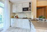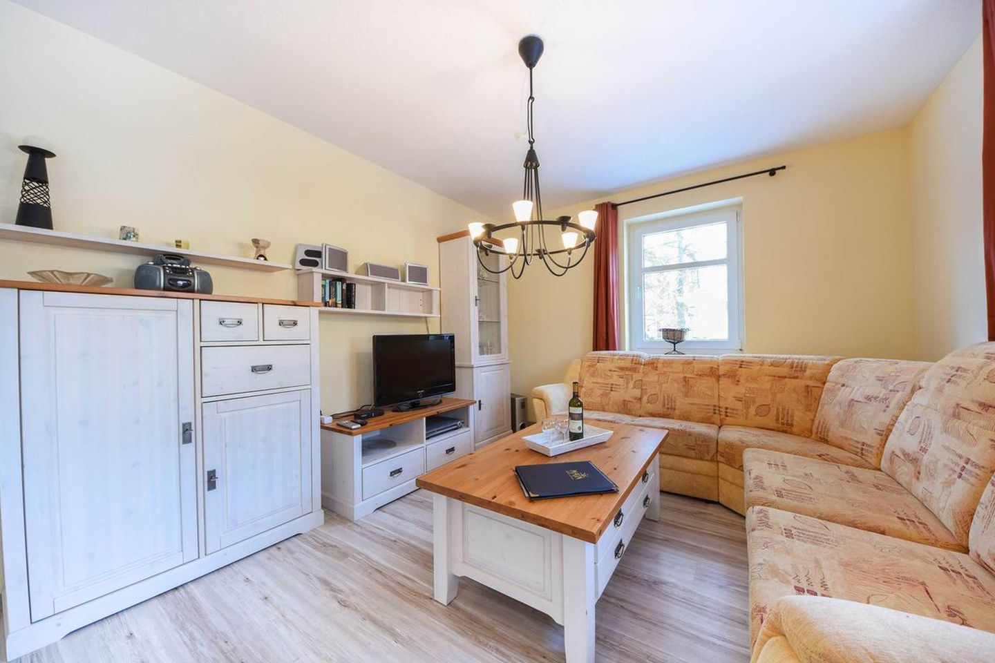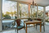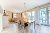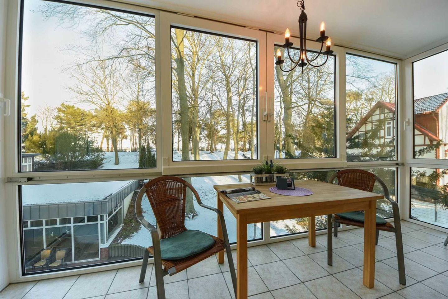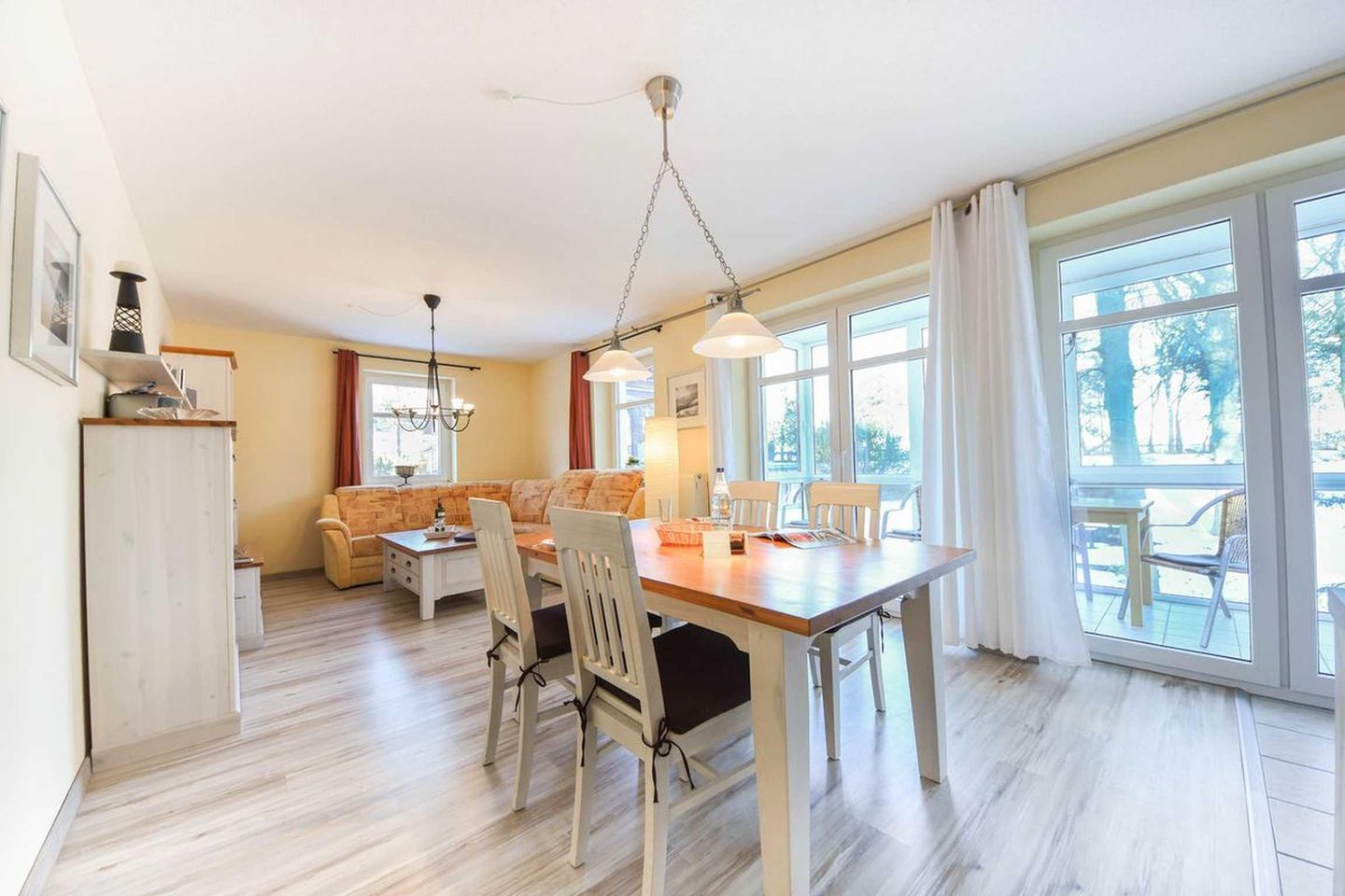 Das Wohnzimmer mit integrierter Küche ist mit TV sowie DVD-Anlage ausgestattet. Des Weiteren kann die Couch zum Schlafsofa umfunktioniert werden und bietet somit bis zu zwei weiteren Personen Platz zum Schlafen. Die Küche ist großzügig eingerichtet (inkl. Geschirrspüler). Vom Wintergarten blicken Sie direkt auf den Park sowie die Strandpromenade (durch die Parkanlage ist Diskretion zur Strandpromenade gewährt). Weiterhin besteht die Wohnung aus einem separaten Schlafzimmer sowie Badezimmer mit Dusche.