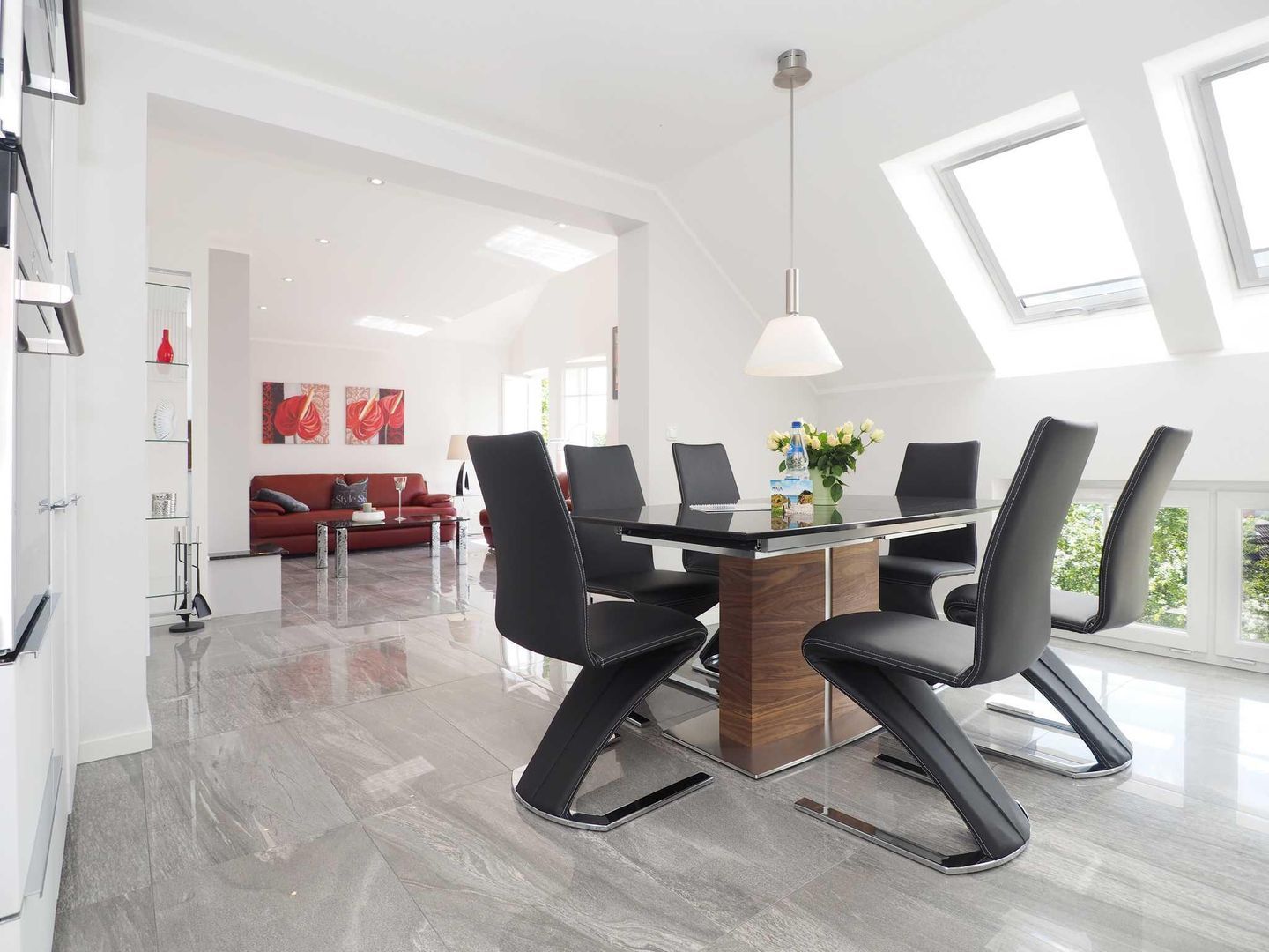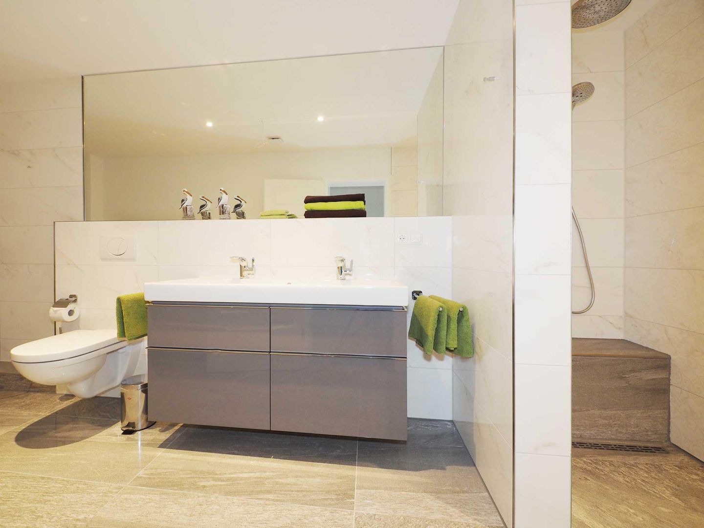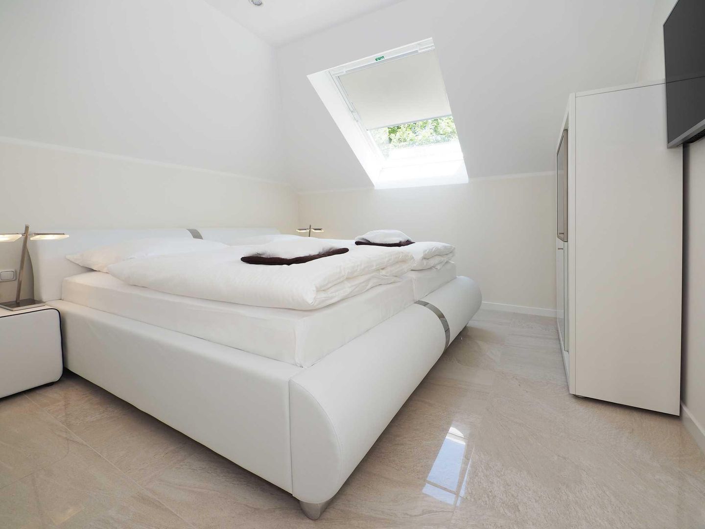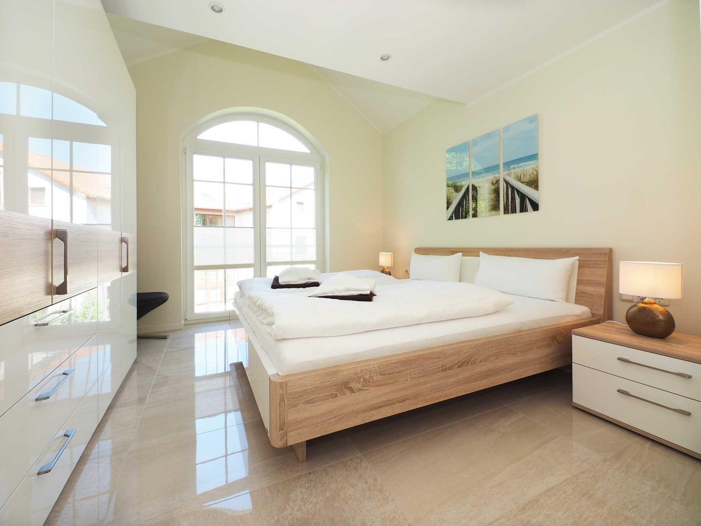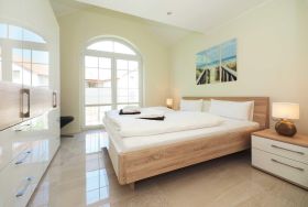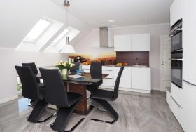 Diese in 2015 neu errichtete 4-Raum-Wohnung befindet sich im 2. Obergeschoss und erstreckt sich über eine Etage. Neben drei Schlafzimmern mit jeweils einem Doppelbett finden Sie zwei große Bäder vor, eins davon mit Dusche und Sauna (Nutzung gegen Gebühr) und ein Bad mit Badewanne und Dusche. Von einem der drei Schlafzimmer gelangen Sie auf den Balkon. Ein zweiter großer Balkon befindet sich am Wohnzimmer. Hier können Sie die Sonne genießen. Das große Wohnzimmer mit Kamin und kombinierter Küche sowie Essbereich lädt zum Verweilen ein und bietet Platz für alle Mitreisenden. Die Küche ist komplett ausgestattet mit allen technischen Dingen des Tagesbedarfs. Zur Wohnung gehören zwei PKW-Stellplätze und ein abschließbarer Fahrradabstellraum.