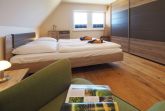 Über eine weitere Treppe erreichen Sie das Dachgeschoss, in dem sich zwei weitere Schlafzimmer mit jeweils zwei Einzelbetten befinden. Damit stehen ausreichend Rückzugsorte für alle Mitreisenden zur Verfügung. Für die kleinsten Gäste sind ein Babyreisebett mit Matratze sowie ein Hochstuhl vorhanden.