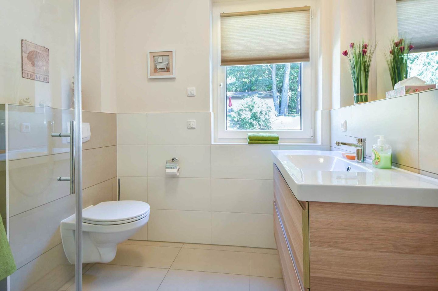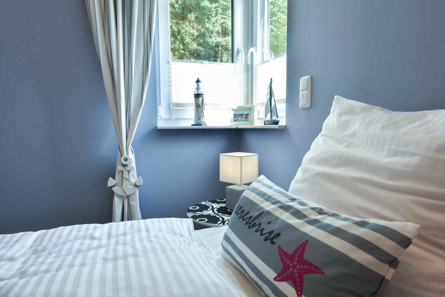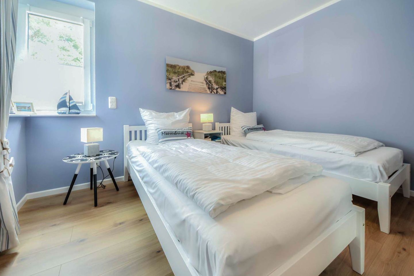 Die Ferienwohnung verfügt über zwei Schlafzimmer, die Ihnen erholsame Nächte versprechen. Das Hauptschlafzimmer ist mit einem großen Doppelbett, verstellbaren Lattenrosten und Verdunklungsmöglichkeiten ausgestattet, um Ihnen optimalen Schlafkomfort zu bieten. Ein zweiter Fernseher im Schlafzimmer sorgt für zusätzliche Unterhaltung. Das zweite Schlafzimmer ist mit zwei Einzelbetten eingerichtet und bietet ebenfalls Verdunklungsmöglichkeiten. Das helle Badezimmer mit bodentiefer Dusche rundet das Angebot ab und sorgt für einen angenehmen Start in den Tag.