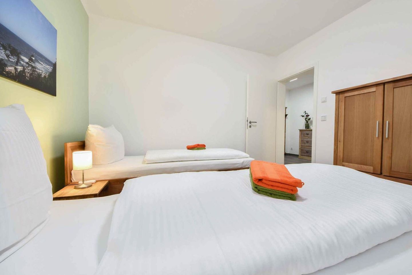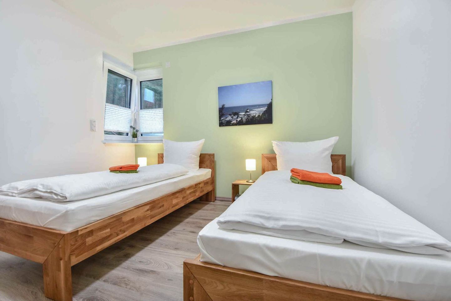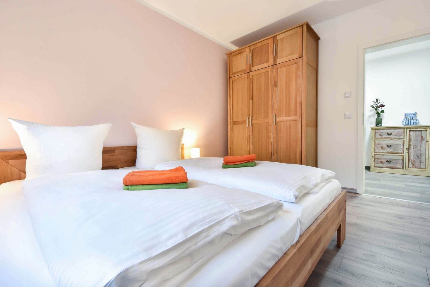 Das moderne Badezimmer ist hell und freundlich gestaltet und verfügt über eine bodentiefe Dusche, die den Komfort dieser stilvollen Ferienwohnung perfekt ergänzt. Frisch bezogene Betten und ausreichend Handtücher stehen bereits bei Ankunft bereit, sodass der Urlaub sofort beginnen kann. Zudem gibt es eine Grundausstattung an allen wichtigen Dingen für einen sorgenfreien Start in die schönsten Tage des Jahres.