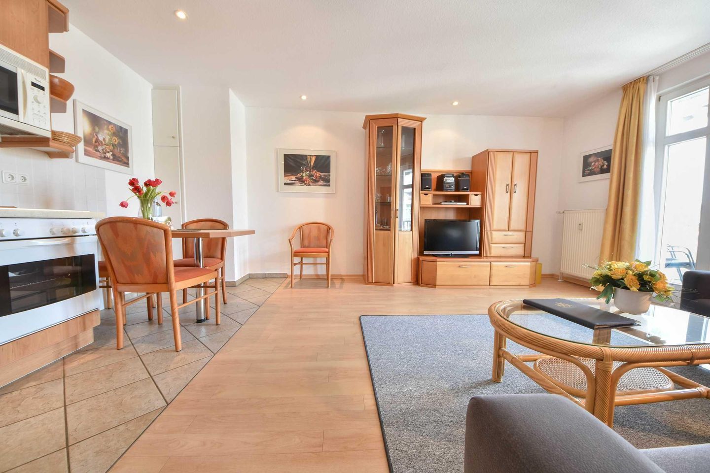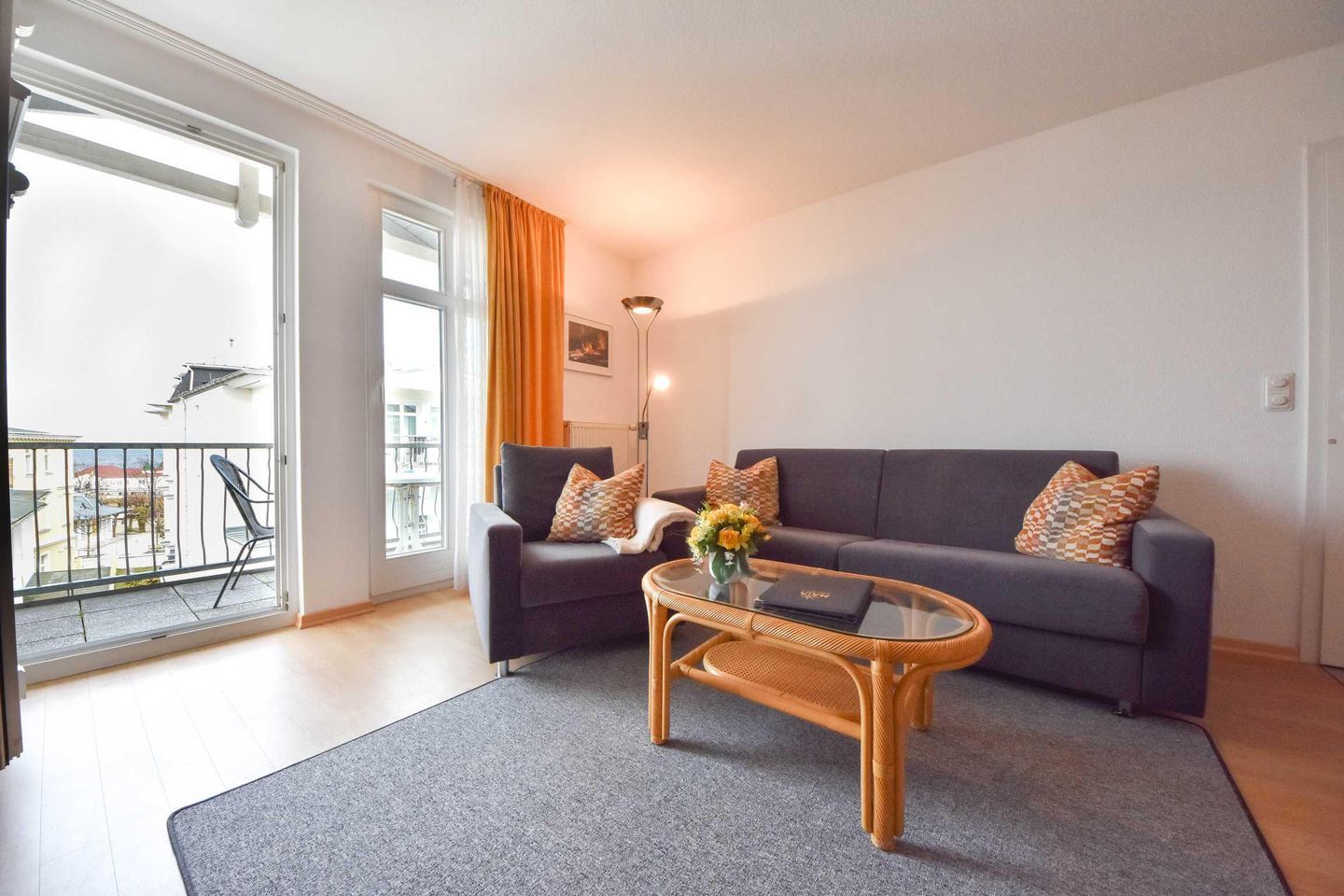 Die strandnahe Ferienwohnung Haus Miramar 25 im beliebten Seebad Ahlbeck verbindet modernen Komfort mit einer unschlagbaren Lage – nur wenige Schritte von der historischen Seebrücke entfernt. Auf 46 m² Wohnfläche, gelegen im dritten Obergeschoss eines gepflegten Hauses mit Aufzug, erwartet die Gäste eine geschmackvoll eingerichtete Unterkunft für erholsame Tage an der Ostsee. Der lichtdurchflutete Wohnbereich mit integrierter Küche lädt zum Verweilen ein und bietet durch den direkten Zugang zum möblierten Balkon ein besonderes Highlight: ein Blick zur Ahlbecker Seebrücke und partieller Ostseeblick sorgen für ein unverwechselbares Urlaubsgefühl.