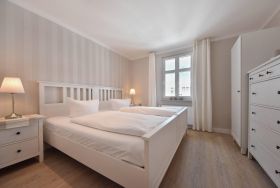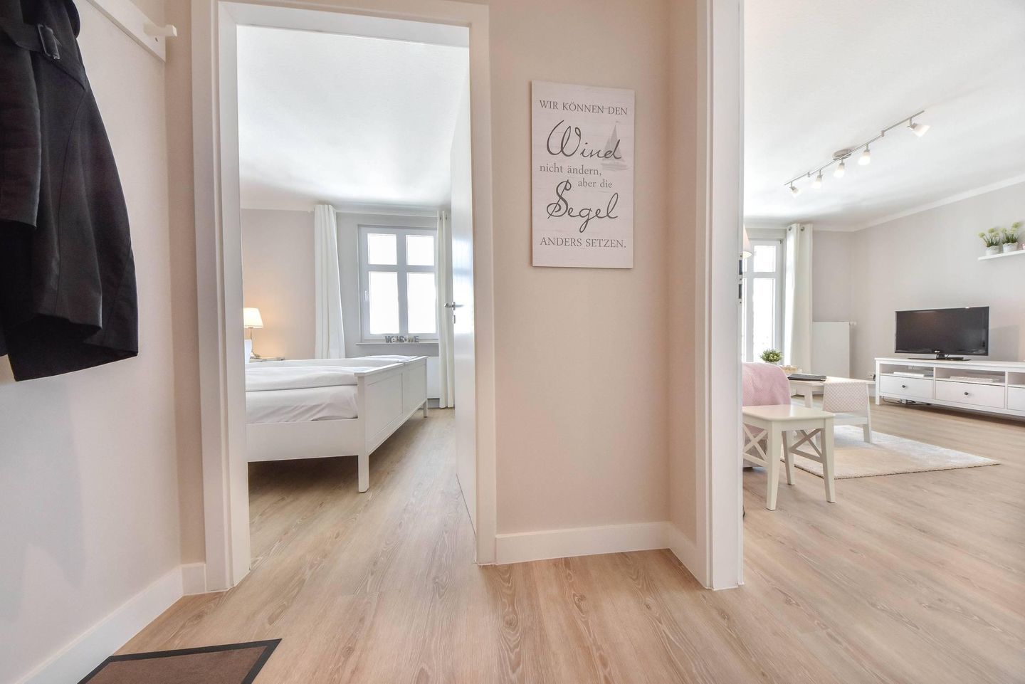 Ein Highlight der Wohnung ist der möblierte Balkon, auf dem Sie die frische Ostseeluft genießen können. Das Schlafzimmer bietet mit einem Doppelbett (200 cm x 180 cm) und einem verstellbaren Lattenrost höchsten Komfort. Ein Kleiderschrank und eine Kommode bieten ausreichend Stauraum, auch für längere Aufenthalte.