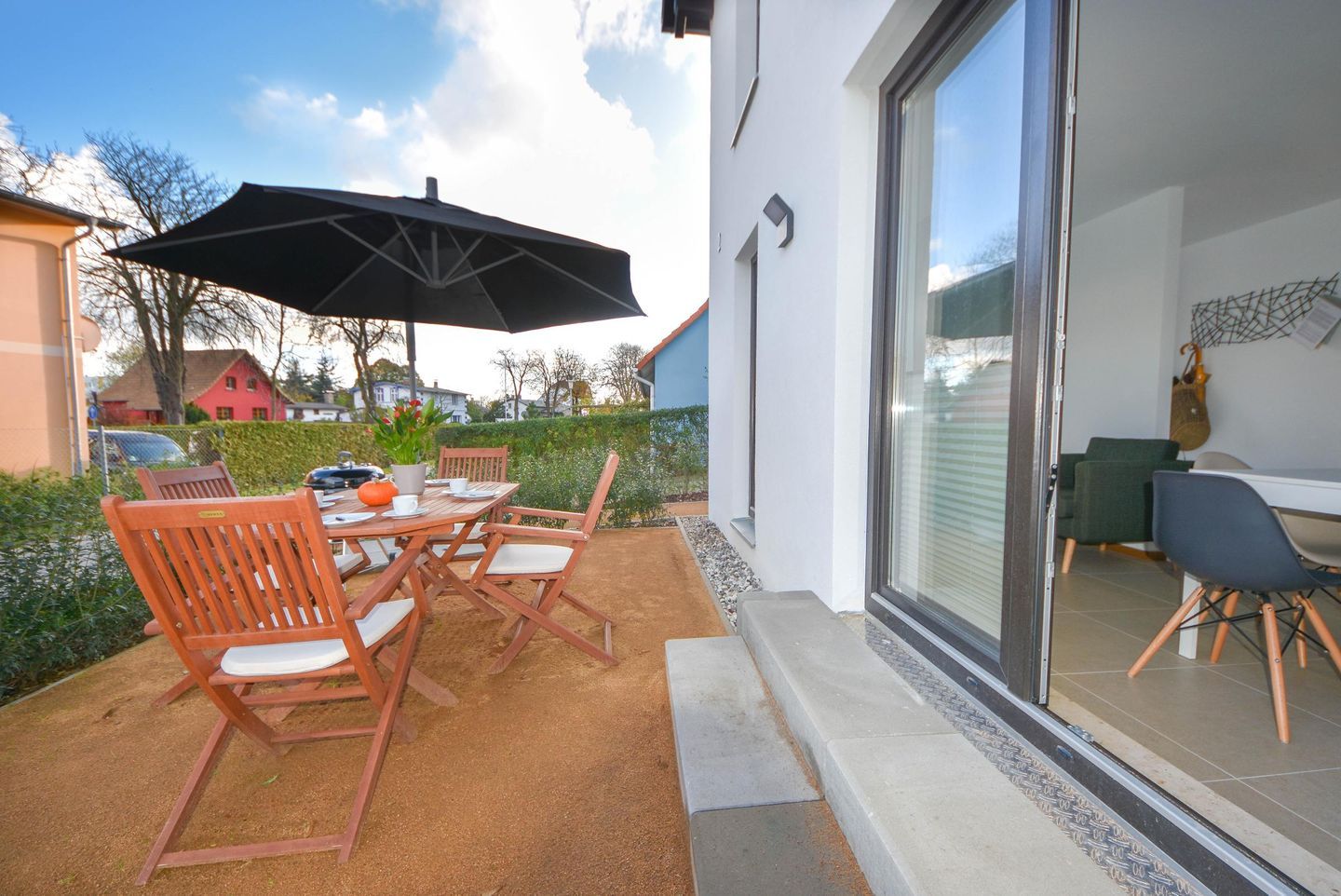 Wohnung Süd befindet sich im Erdgeschoss des Hauses Sonnenlauf, in südlicher Ausrichtung.