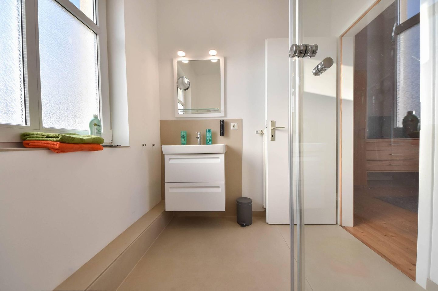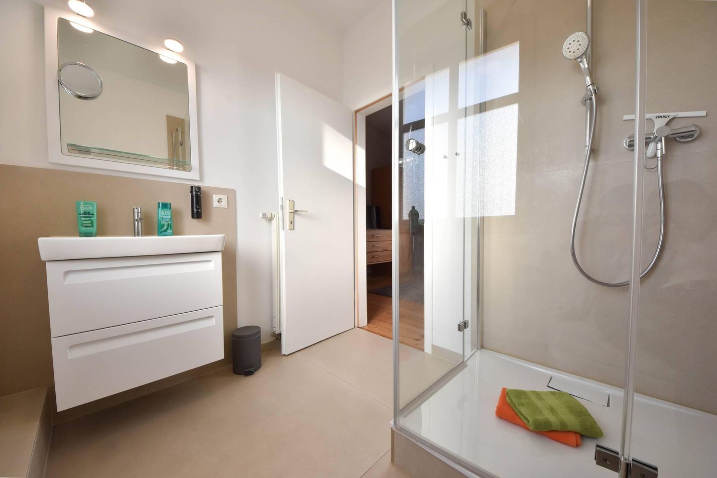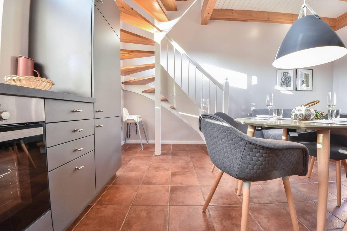 Die gesamte Wohnung ist hell und lichtdurchflutet, die Fenster im Schlafraum können jedoch verdunkelt werden. Für unsere kleinen Gäste steht ein Kinderhochstuhl sowie ein Baby-Reisebett mit Matratze (ohne Wäsche) zur Verfügung.