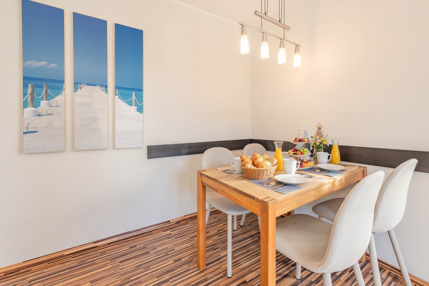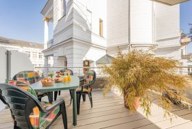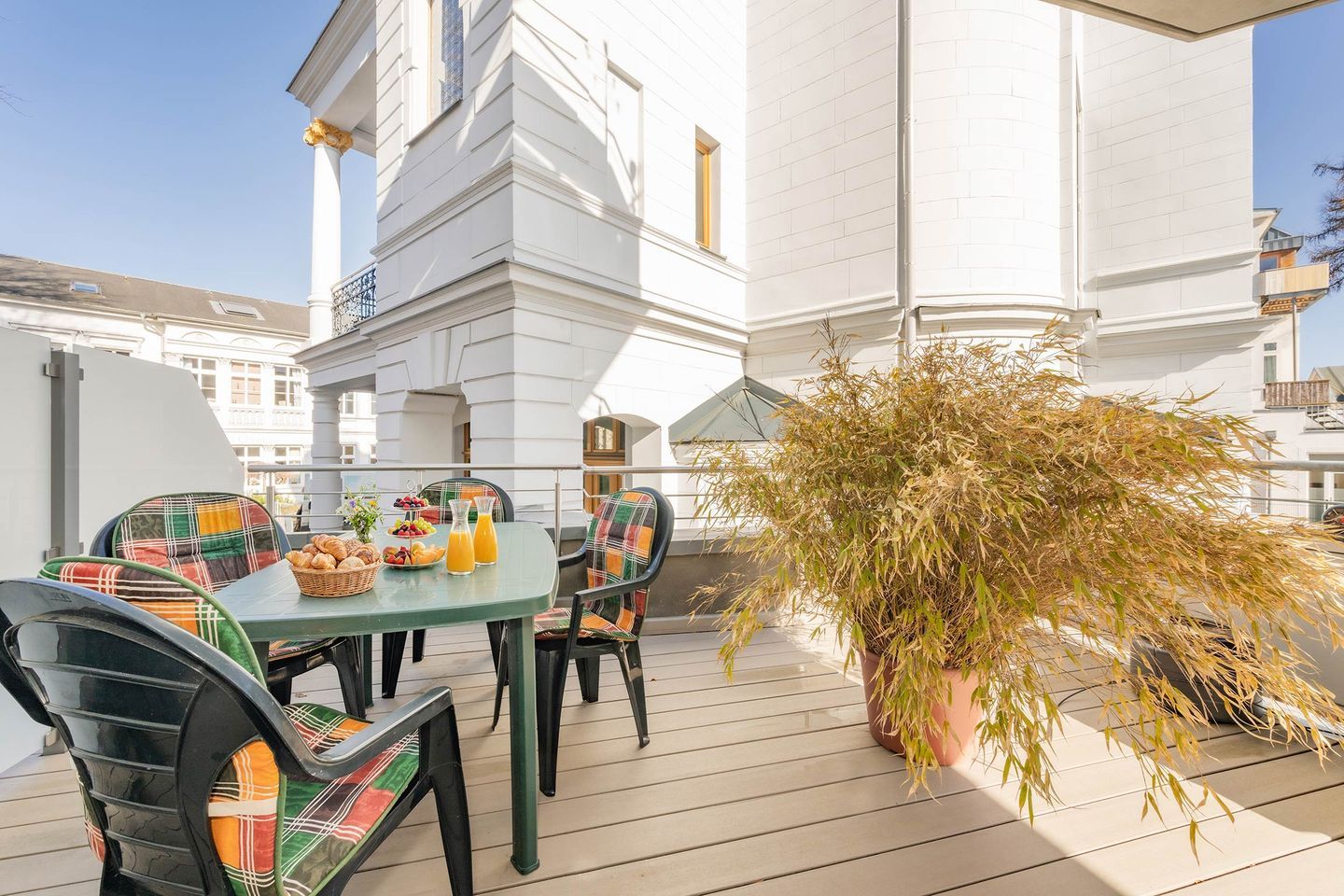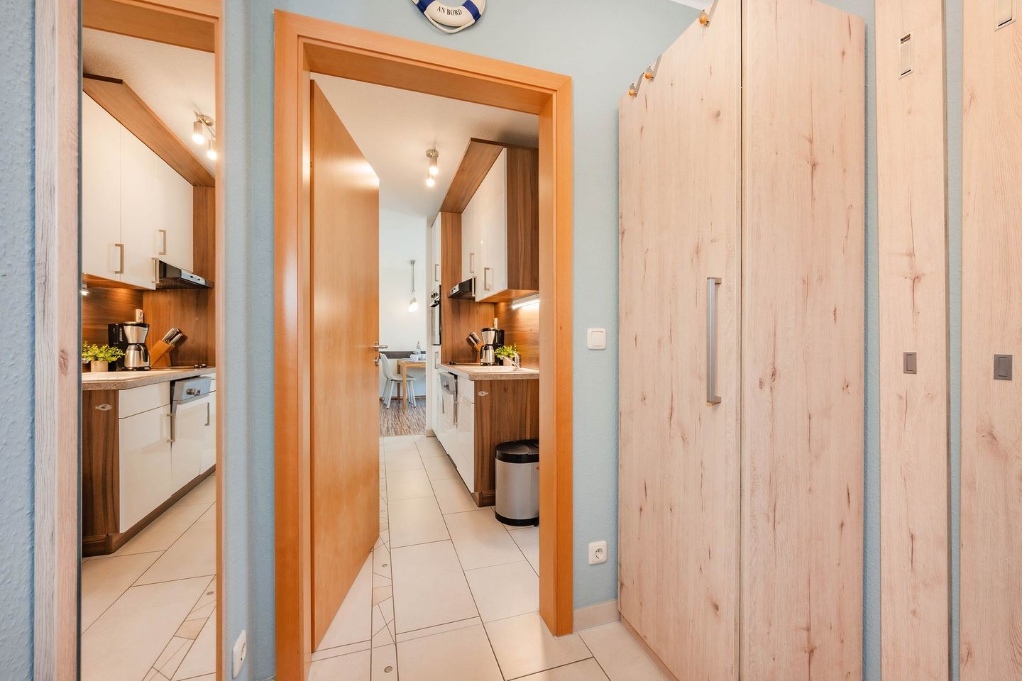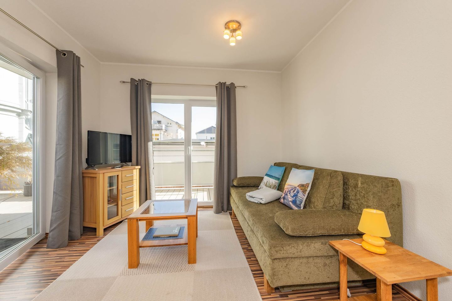 Ihre Ferienwohnung - Große Freiheit 05 - liegt im ersten Obergeschoss und bietet auf 42m² Platz für bis zu drei Personen. Der Wohnbereich, ausgestattet mit gemütlicher Couch und Sitzecke und verfügt über zwei Zugänge auf den großzügigen, über Eck umlaufenden Balkon. Er ist das Highlight dieser liebevoll eingerichteten Ferienwohnung. Dank der geschützten Lage finden Sie hier auch an heißen Sommertagen ein schattiges Plätzchen oder lassen den Urlaubstag mit einem Glas Wein Revue passieren.
