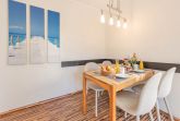 Weiterhin hervorzuheben ist die Küchenzeile, die auf wenig Platz alles bietet was man von einer voll ausgestatteten Küche erwarten kann. Backofen in Arbeitshöhe, Cerankochfeld (2-Platten), Geschirrspüler, Kaffeemaschine, Toaster, Wasserkocher sowie Kühlschrank mit Gefrierfach.