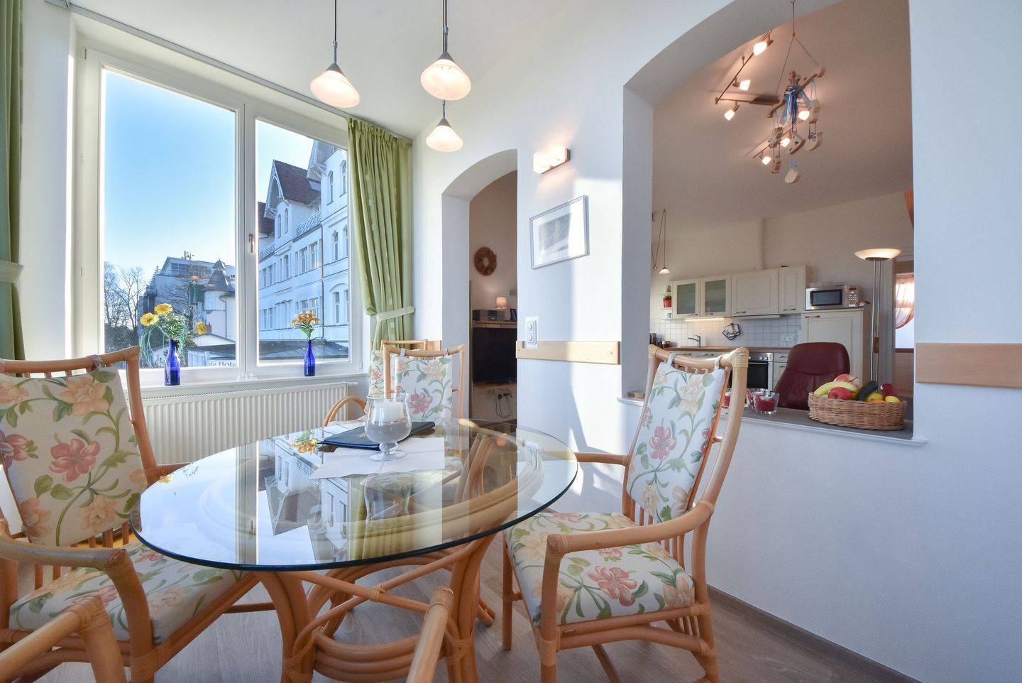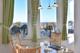 Ein besonderes Juwel direkt an der Promenade des Seebades Ahlbeck erwartet Sie! Diese Ferienwohnung bietet allen Komfort, den Sie sich im Urlaub wünschen und verfügt als besonderes Highlight über unverbauten, direkten Meerblick. Lassen Sie die Seele baumeln und genießen Sie auf den bequemen Korbstühlen in der Loggia sowohl das Rauschen der Wellen, als auch ganzjährig die einmalige Aussicht: über die Düne blicken Sie bis zur historischen Seebrücke des Kaiserbades.