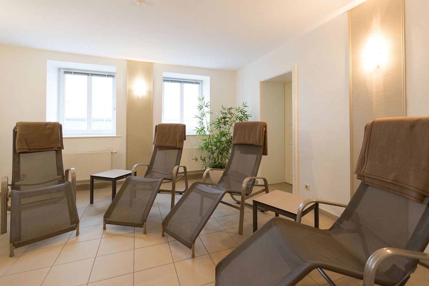 Im Untergeschoss des Altbaus befindet sich ein für Sie kostenfrei zu nutzender Wellnessbereich mit Sauna, Dampfbad, sowie einem kleinen Fitnessraum. Über die hauseigene Rezeption erhalten Sie Waschmarken zur Nutzung der Waschmaschinen und Trockner in der Villa. Sie können Ihre Fahrräder sicher im abschließbaren Fahrradraum unterbringen. Ihren Pkw parken Sie auf einem der überdachten Stellplätze am Haus (Einfahrtshöhe 2 Meter).