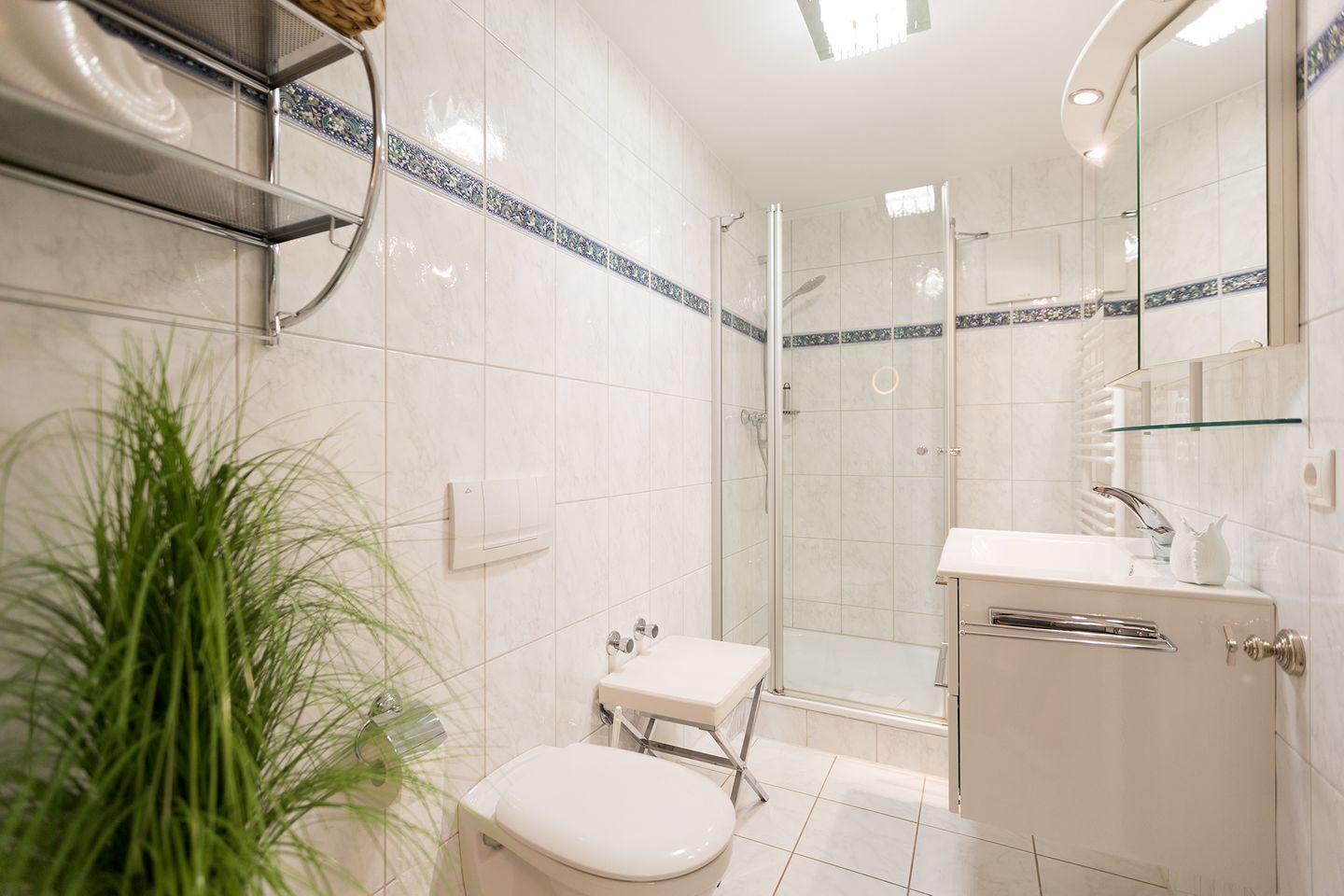 Ein nahezu einzigartiges Highlight sind die Sternenhimmel, die von einem österreichischen Künstler auf die Zimmerdecken beider Schlafzimmer gemalt wurden. Bei Tageslicht ist davon nichts zu sehen, aber nachts, wenn Sie im Bett liegen und sich Ihre Augen an die Dunkelheit gewöhnt haben, entfaltet das Kunstwerk seinen ganz besonderen Charme. Zudem ermöglicht Ihnen das zweite Schlafzimmer Zutritt zur gemeinschaftlich genutzten Terrasse, welche mit Sonnenliegen bestuhlt ist. Wenn Sie es lieber etwas privater mögen, können Sie sowohl vom ersten Schlafzimmer als auch vom Wohnzimmer die zweite, wohnungseigene und zudem überdachte Terrasse nutzen. Sie erreichen über diese Terrasse zusätzlich die hauseigene Gemeinschaftsaußenanlage mit Strandkörben. Das Bad mit Dusche, Waschschrank, WC und kleinen Extras bietet vielerlei Komfort.