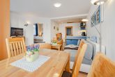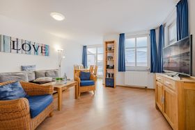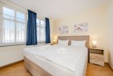 Diese 53 Quadratmeter große 2-Raum-Wohnung bietet als zentrumsnahes Urlaubsdomizil bis zu vier Personen Platz. Das Appartement befindet sich in der ersten Etage im Anbau der historischen Villa Alt Ahlbeck. Das Wohnzimmer ist mit einer gemütlichen Schlafcouch sowie zwei Sesseln und einen großen Flat-TV ausgestattet. Der Raum ist offen und hell in maritimer Farbgebung gestaltet. Hier dinieren Sie mit der Familie am Esstisch oder beobachten die Geschehnisse auf der Nebenstraße am Haus. Die Küche grenzt offen an den Wohnraum an und ist vollwertig eingerichtet. Unter anderem stehen ein 4-Platten-Herd, Kühlschrank, Mikrowelle sowie eine Spülmaschine zur Verfügung. Das Schlafzimmer ist liebevoll mit komfortablen Boxspringbett und einem Kleiderschrank für Ihre Garderobe hergerichtet. Im Badezimmer erwarten Sie mit einem WC, Waschbecken, Dusche und Handtuchheizung alle Annehmlichkeiten, die Sie von Zuhause gewohnt sind.