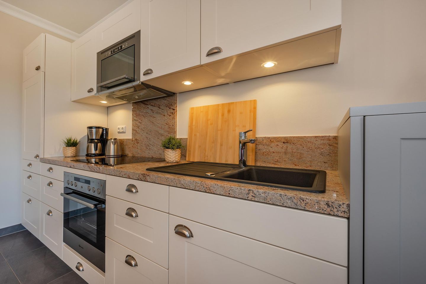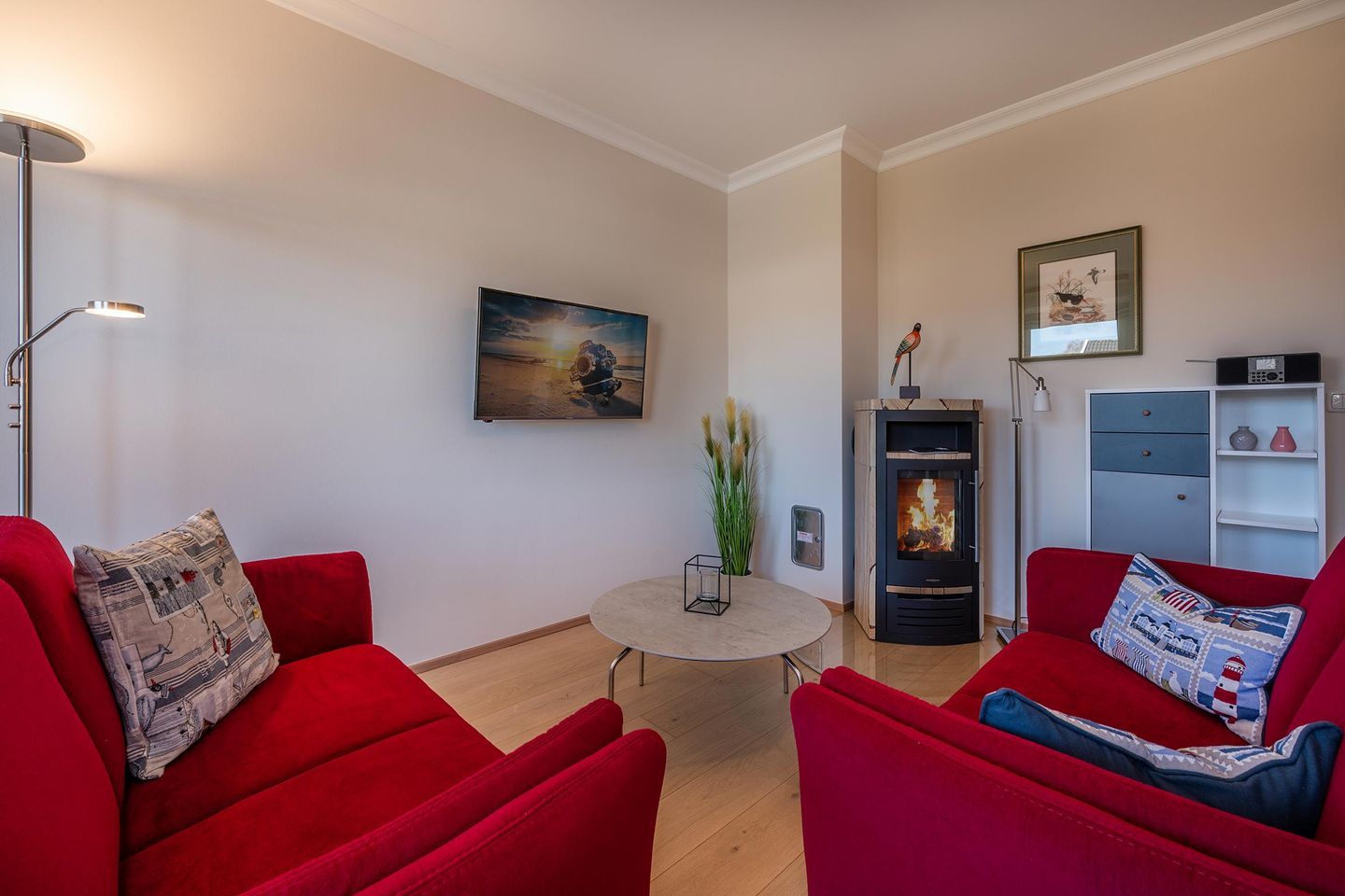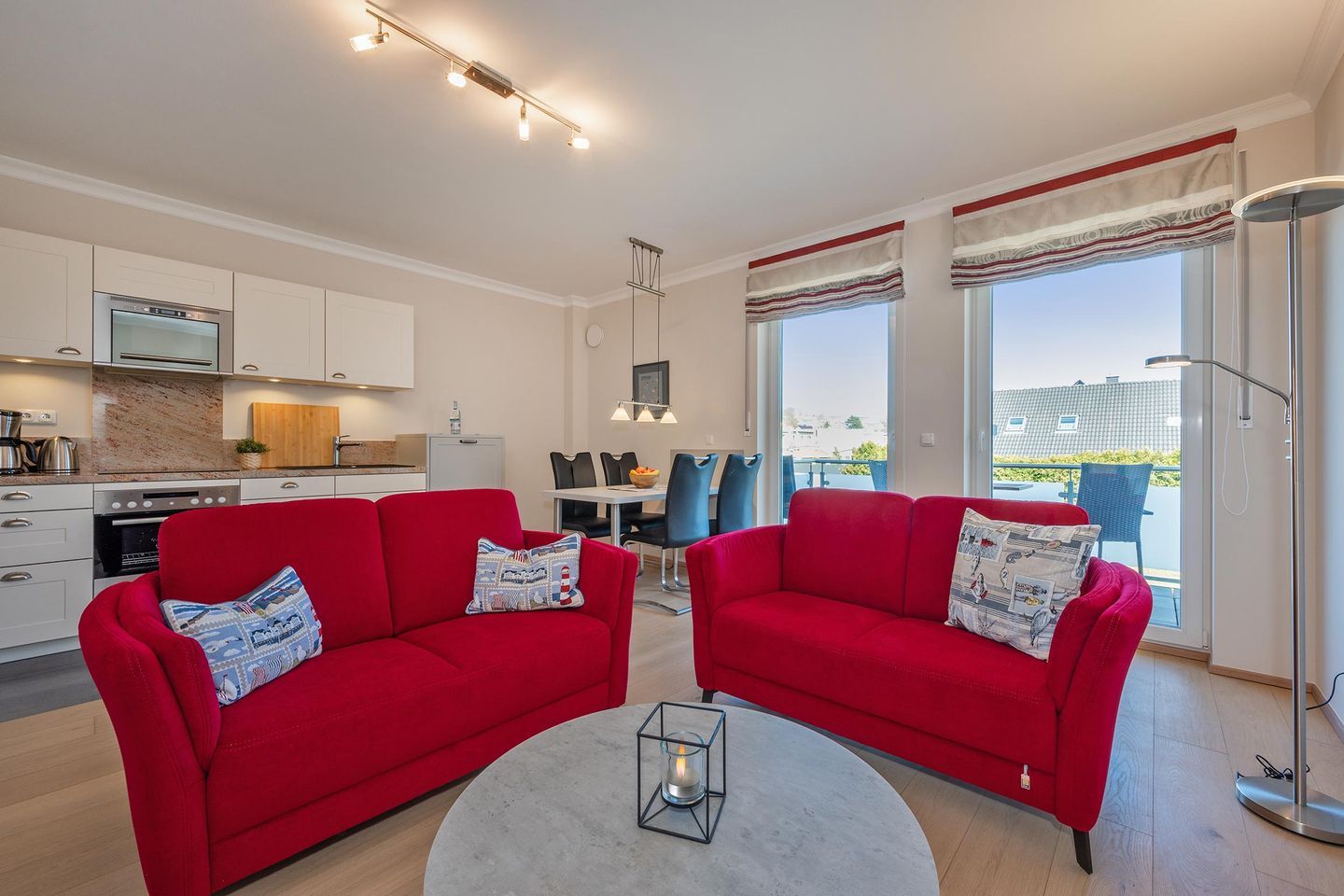 Geschmackvoll in natürlichen Farben hergerichtet, finden Sie die Wohnküche, beide Schlafzimmer und das Badezimmer vor. Machen Sie es sich auf den beiden Sofas im Wohnzimmer bei einem schönen Film am Abend und wohltuenden Kaminfeuer in der kalten Jahreszeit bequem oder erleben Sie die Sonnenstrahlen auf dem anliegenden Balkon mit einem frischen Getränk. Egal wie Sie sich entscheiden, Sie werden Ihre Freude daran haben. Die Küche ist offen zum Wohnzimmer und mit allen wichtigen Küchenhelfern ausgestattet. Im gleichen Raum werden Sie auch den Esstisch mit ausreichend Sitzplätzen vorfinden.
