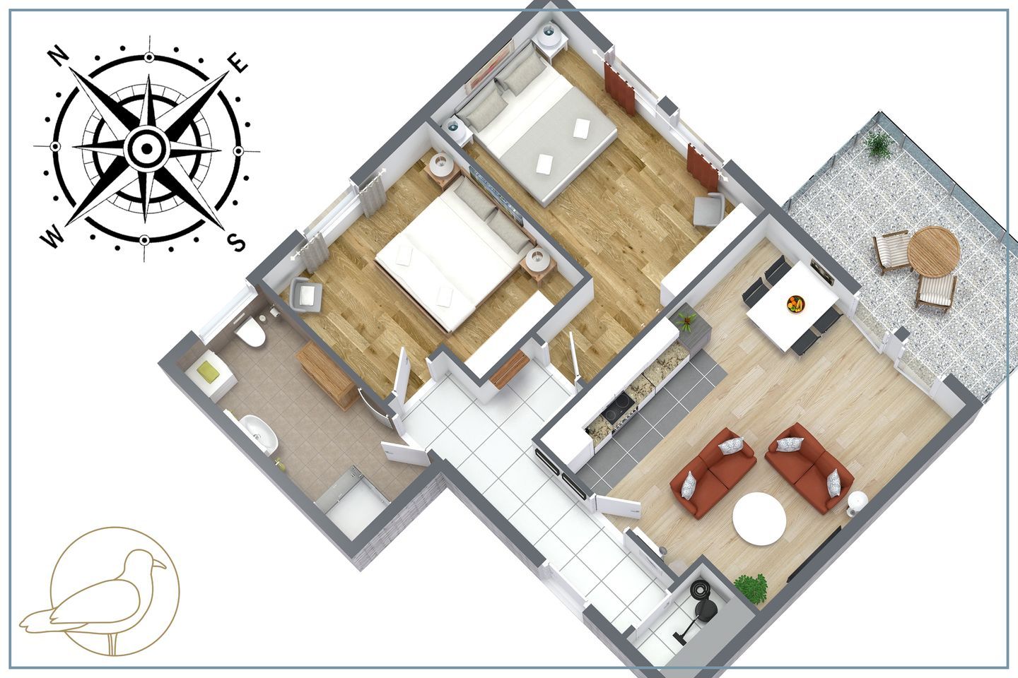 Das „Quartier Görmitz“ hat eine wunderbare Ausgangslage für zahlreiche Aktivitäten im Ostseebad Zinnowitz und auf der ganzen Insel Usedom. Die 66 Quadratmeter große Drei-Raum-Wohnung liegt in der ersten Etage des Hauses und bietet für vier Personen ausreichenden Komfort.