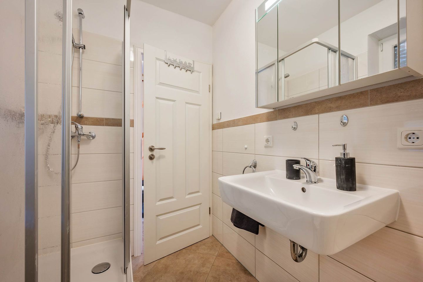 Das Haus gewährt Ihnen besondere Annehmlichkeiten aufgrund der beiden Badezimmer. Eines ist im Erdgeschoss, das Zweite in der ersten Etage gelegen. Die Tageslicht-Bäder sind jeweils mit einem WC, Waschtisch und einer Dusche ausgestattet.