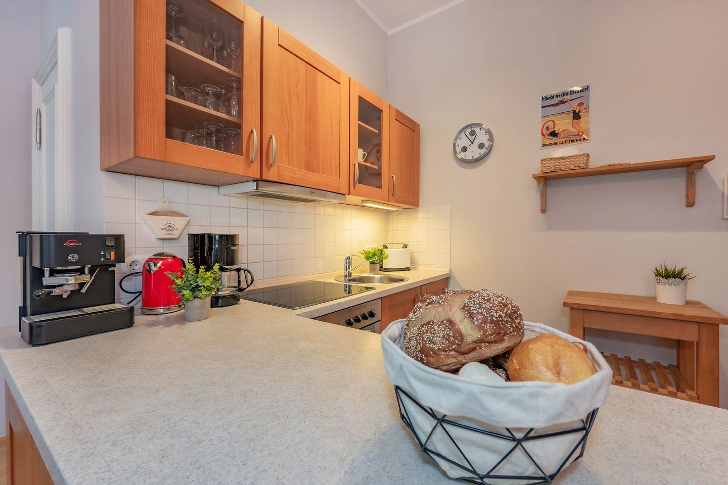 Die Ferienwohnung ist perfekt vorbereitet, sodass Sie sich ab dem ersten Moment wie zu Hause fühlen können. Bezogene Betten und ausreichend Handtücher stehen für Sie bereit. Darüber hinaus sorgt eine Grundausstattung an allen wichtigen Dingen für einen stressfreien Start in den Urlaub. Besonders familienfreundlich sind der bereits in der Wohnung vorhandene Hochstuhl, sowie das Baby-Reisebett inklusive Matratze aber ohne Wäsche. Beides können Sie während Ihres Aufenthaltes gebührenfrei nutzen.