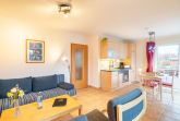 Die Ferienwohnung bietet ein behagliches Schlafzimmer mit einem komfortablen Doppelbett für erholsame Nächte. Zusätzlich steht im offenen Wohnbereich ein bequemes Schlafsofa zur Verfügung, das weiteren Platz für bis zu zwei Personen bietet. Der großzügige Wohn- und Essbereich ist der perfekte Ort für gemeinsame Stunden. Hier befindet sich auch die offene Küche, die keine Wünsche übrig lässt: Mit hilfreichen Geräten wie Backofen, Ceranfeld, Spülmaschine und Mikrowelle können Sie Ihre Lieblingsgerichte wie zu Hause zubereiten. Für die ganz kleinen Besucher steht Ihnen ein Kinderhochstuhl zur Verfügung.