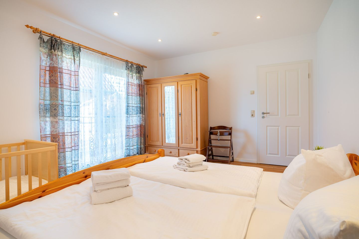 Das Ferienhaus erstreckt sich über zwei Etagen und verfügt über drei Schlafzimmer, die Ihnen erholsame Nächte garantieren. Zwei Schlafzimmer sind mit gemütlichen Doppelbetten ausgestattet, während das dritte Zimmer mit einem Einzelbett eine perfekte Rückzugsmöglichkeit bietet. Hochwertige Matratzen und liebevoll gestaltete Räume sorgen für eine angenehme Wohlfühlatmosphäre. Alle Betten sind bei Ihrer Ankunft bereits frisch bezogen.